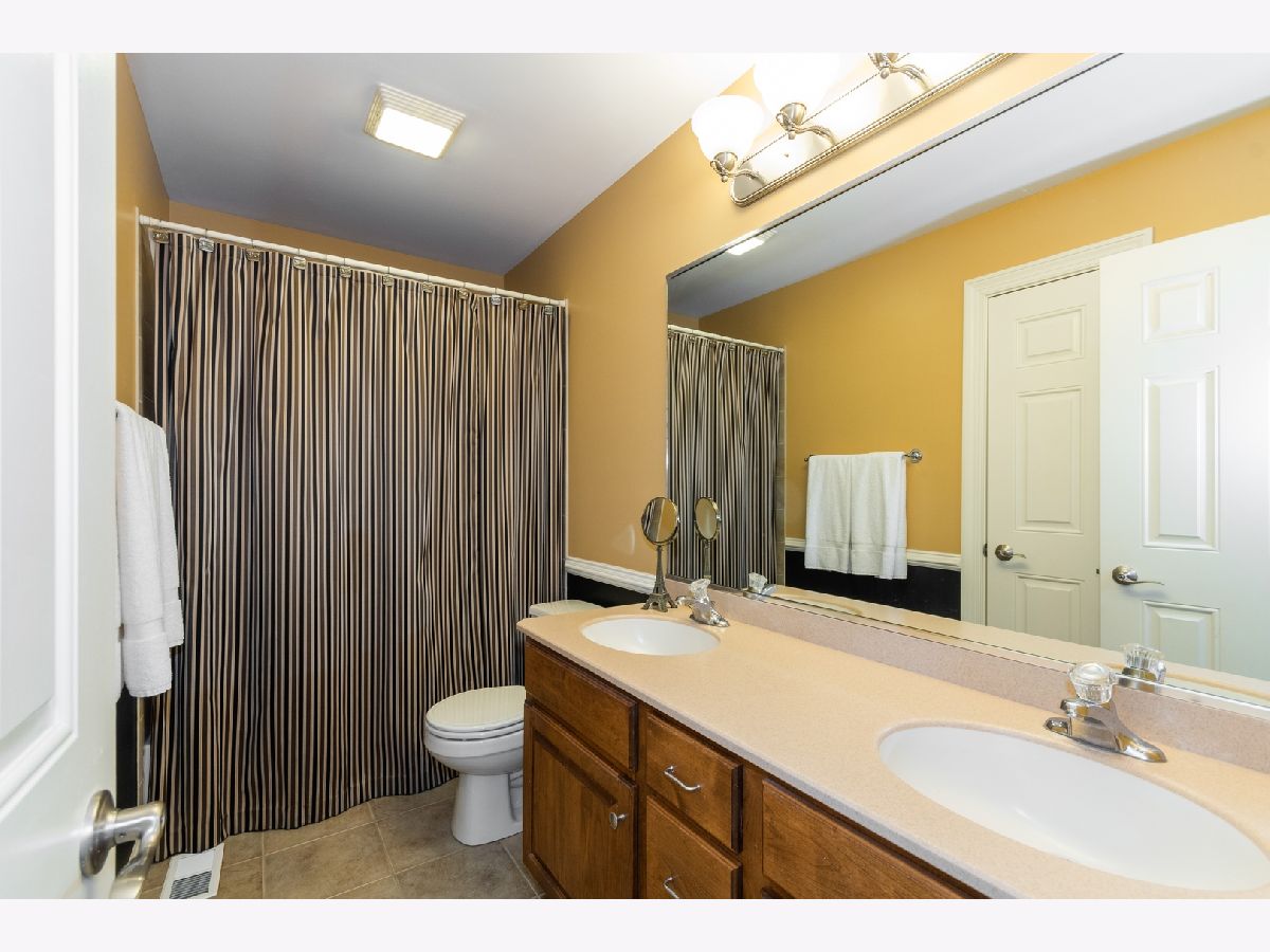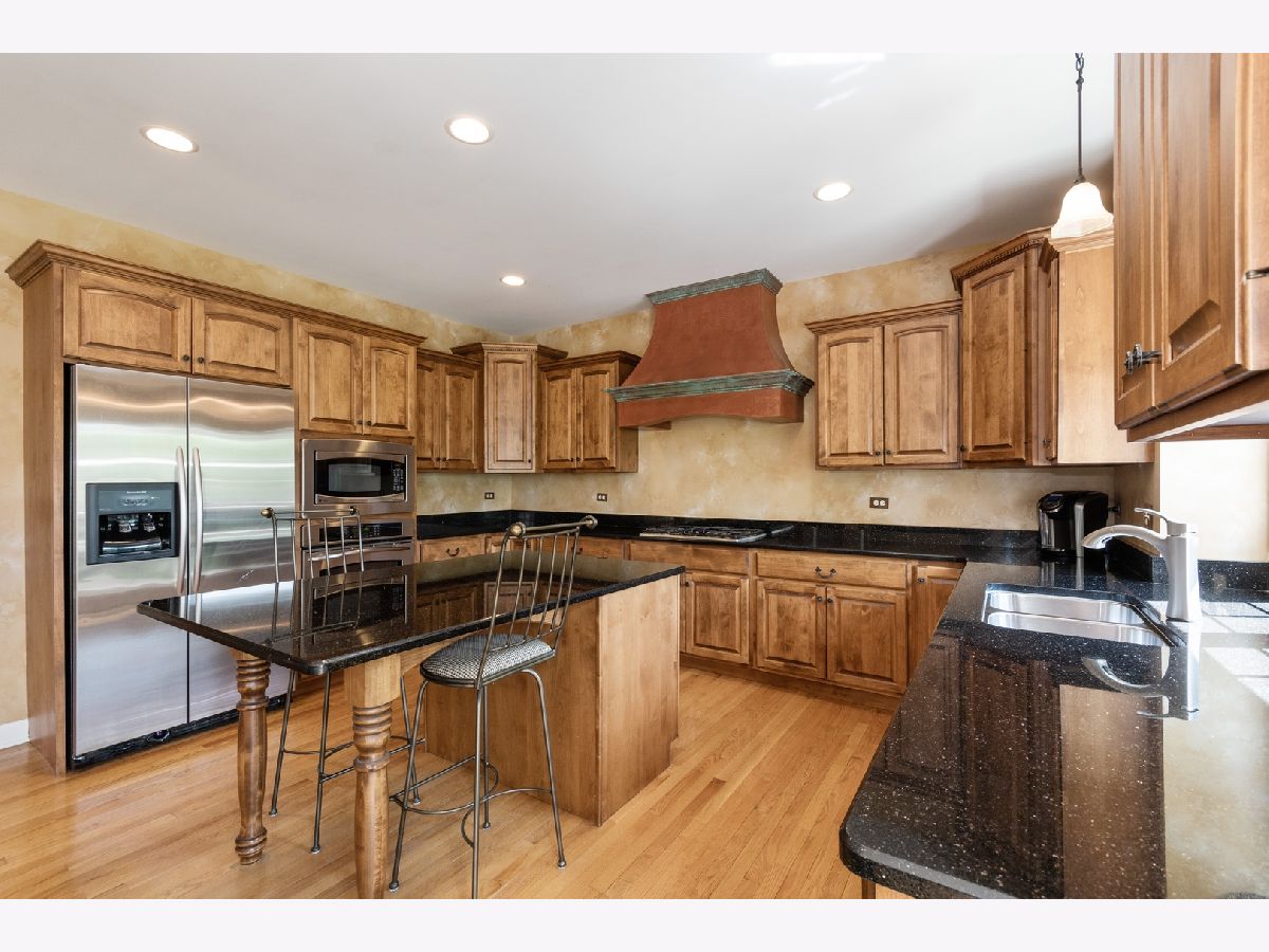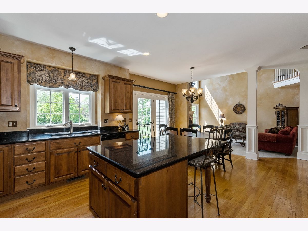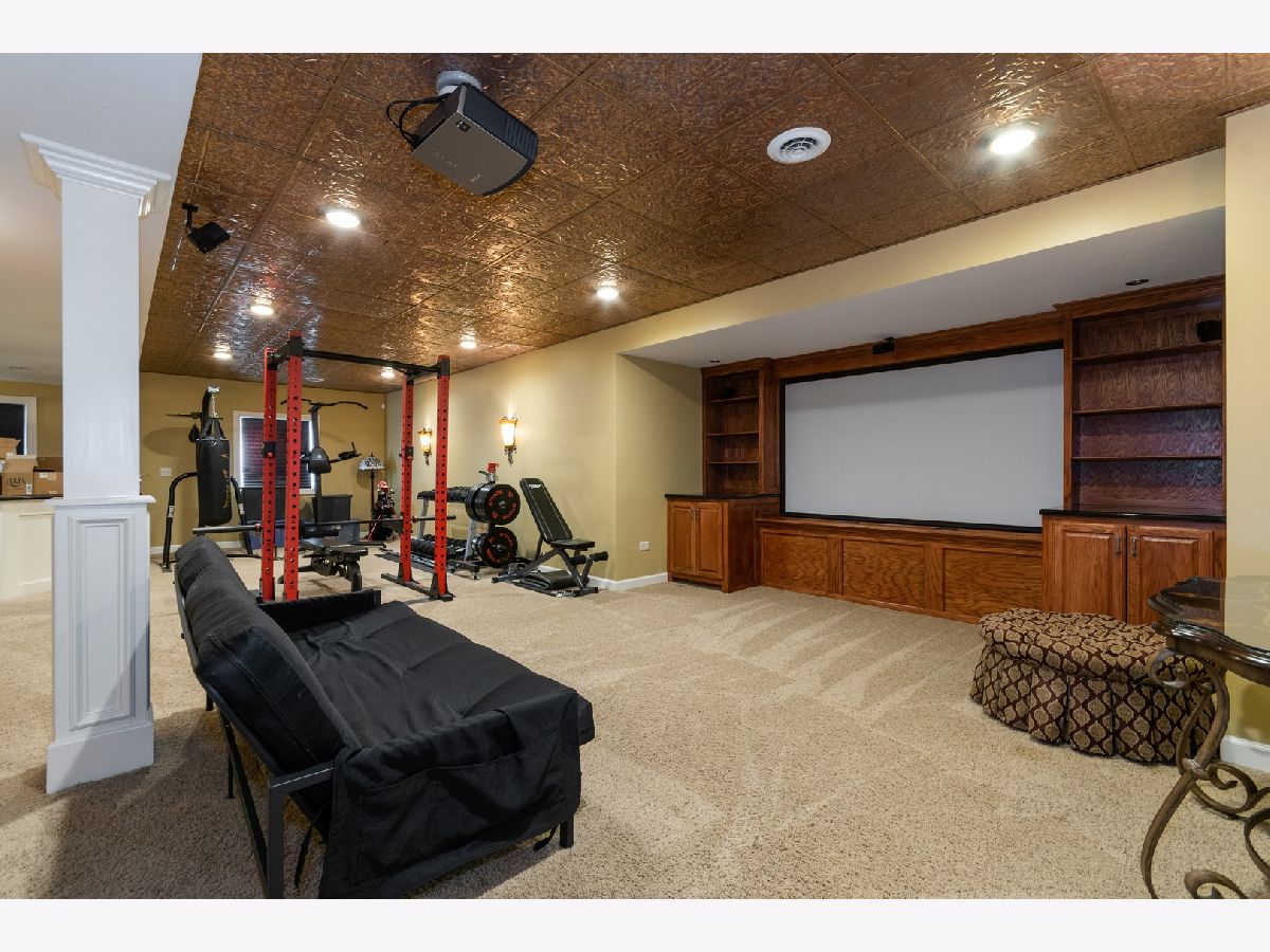 Meticulously maintained home boasting a beautiful front porch in the highly sought after Fox Creek subdivision of St. Charles! Walk into an elegant foyer that opens to the formal living room and dining room featuring hardwood floors and beautiful trim design! The DR boasts a detailed ceiling, chandelier and wainscotting. First-floor office with plantation shutters and views of the backyard! The first-floor office is conveniently located next to the first floor full bath. The impressive kitchen has much to offer including stylish lighting, hardwood floors, granite countertops, highly detailed custom cabinetry, double stainless steel sink, a center island with seating, stainless steel appliances, and an eating area with a French door to the large, brick paver patio. The kitchen opens to the spacious two-story family room with floor to ceiling brick fireplace flanked by windows allowing for an abundance of natural light. The second-floor foyer features hardwood floors. The gorgeous master suite will not disappoint, boasting a large tray ceiling, crown molding, a beautiful chandelier, and a spacious walk-in closet. The spa-like master bath includes double sinks, custom cabinetry, a whirlpool tub, and a separate shower with detailed tile design. Additional spacious bedrooms complete the second floor. The finished basement is spectacular and offers a custom bar area with granite countertops, a detailed full bath with beautiful cabinetry and granite countertops, a large media room, and a bonus room along with plenty of room for storage. The media room is perfect for entertaining or watching a movie as it offers a large screen with surrounding custom built-ins with granite countertops, a detailed copper ceiling with recessed lights, and the theater equipment! Laundry room with washer and dryer included along with custom cabinetry! Brick paver patio with privacy amongst the professional landscaped peaceful backyard! Three car garage. Fabulous location offering an easy walk to the highly sought after Wasco Elementary School!