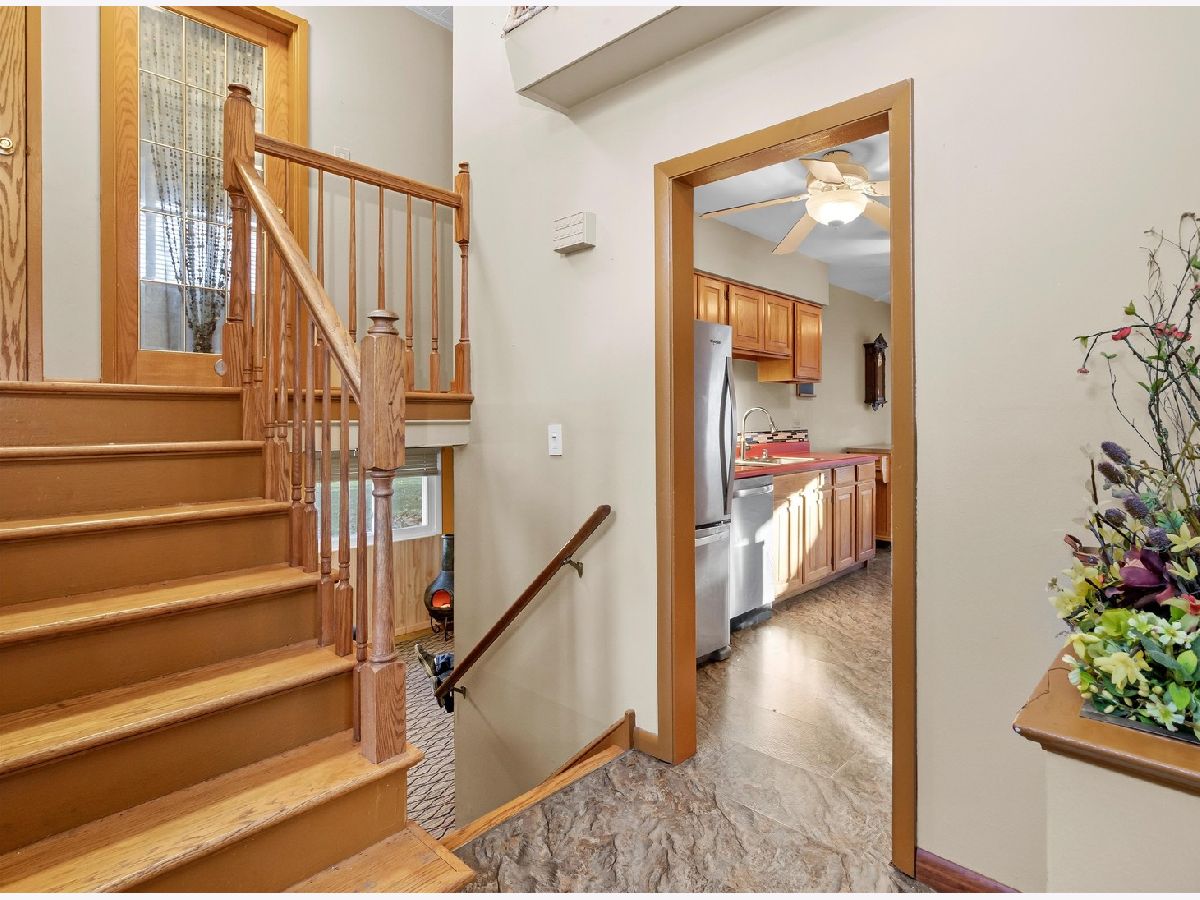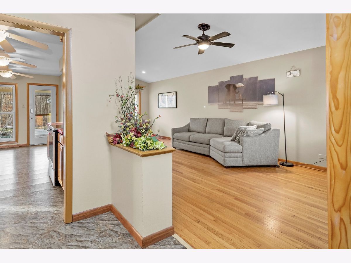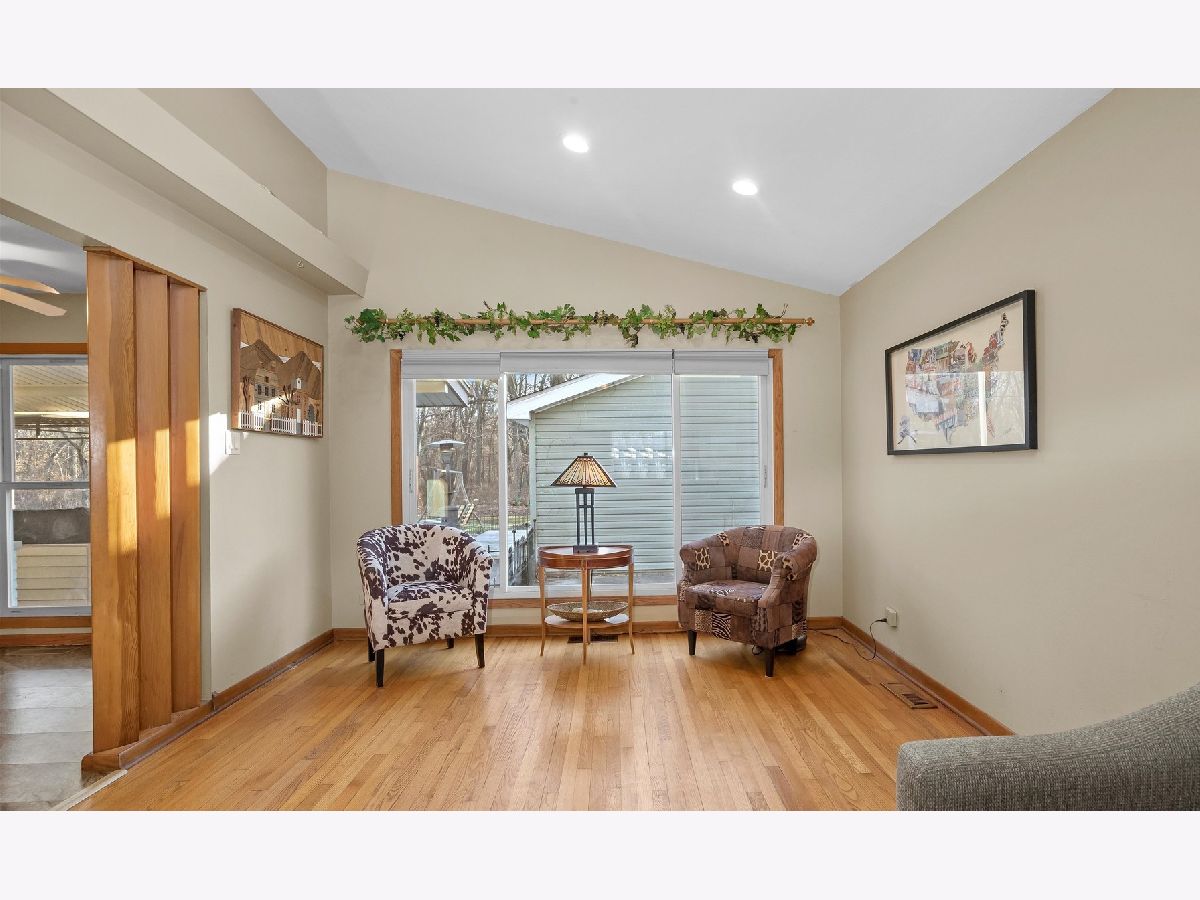 ON THE FOREST PRESERVE! Enjoy the best view in town from your own backyard! Nestled on a well established quiet cul-de-sac, this unique 4 BR 2.5 bath split-level offers an unparalleled experience with NO neighbors behind, seamlessly backing up to the Forest Preserve. Observe birds, deer & turkeys as you soak in the HOT TUB, surrounded by privacy. Over 1900 finished sq ft offer separate living spaces, w/ vaulted ceilings in the living room, a lower level family room & 4th bedroom, plus HARDWOOD FLOORS in a majority of the rooms. Generous room sizes, including double closets in the primary suite, as well as a private bathroom w/ custom tile shower. Another bedroom features sliding doors to a 3-level deck with easy access to the hot tub & firepit! Spacious eat-in galley kitchen w/ newer appliances included! Updates include a brand NEW electrical panel, and NEW ROOF (1 yr old). Water heater (2021) & higher efficiency vinyl clad windows throughout! Siding replaced in 2015; and interior repainted just 1 yr ago. Furnace & AC just cleaned & serviced Nov 9th. Oversized detached garage, PLUS separate storage shed. A stunning move-in ready home; nothing like it on the market. Home in great shape, seller will handle village occupancy items. Show with confidence!