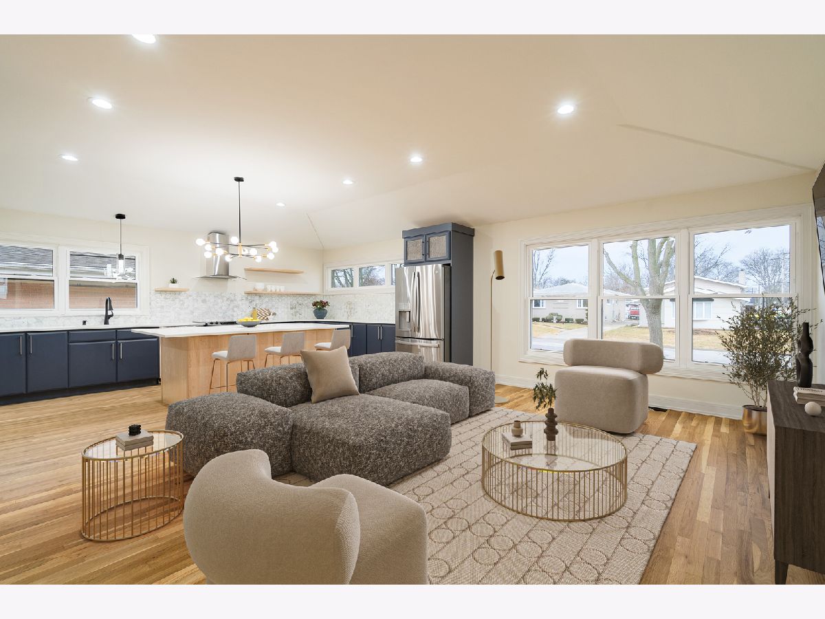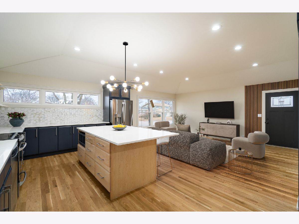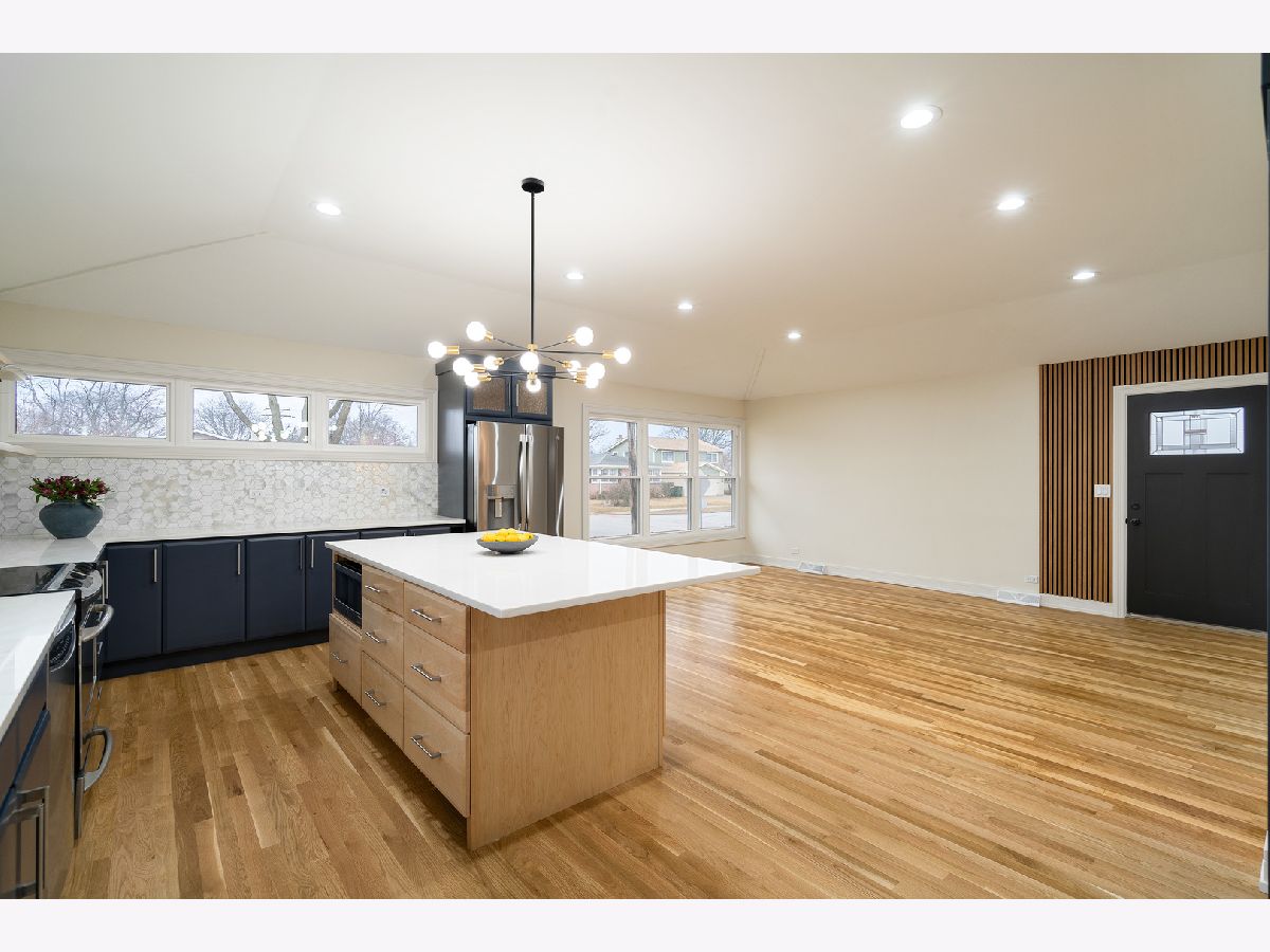 Stunningly rehabbed brick ranch located less than 2 miles away from downtown of Arlington Hts-one of the most exciting suburbs! With total of 5 bedrooms and 2.5 bathrooms on both levels it offers great space for comfortable living and entertaining. The open floor plan welcomes you to a gorgeous new kitchen and living room with over 9-foot cathedral ceiling. Beautifully designed open staricase leads to full finished basement complete with a family room (plenty of space for pool table, bar and TV section), 2 additional bedrooms and full bath. Everything in this special home has been done! Long list of improvements includes all new electric service, plumbing, roof, windows, walls, doors, trims, A/C unit, hot water heater, refinished hardwood floors, all new bathrooms and spectacular kitchen with solid wood cabinets, huge eating island (storage on both sides of the island), stainless steel appliances, quartz countertops and eye-catching backsplash. Excellent location near parks, schools, Metra station, dining & entertainment, and short distance to I-90 completes this special find. Please note: seller has permit for brand new driveways (gargage and front of the house) and they will be done as soon as the weather permits.