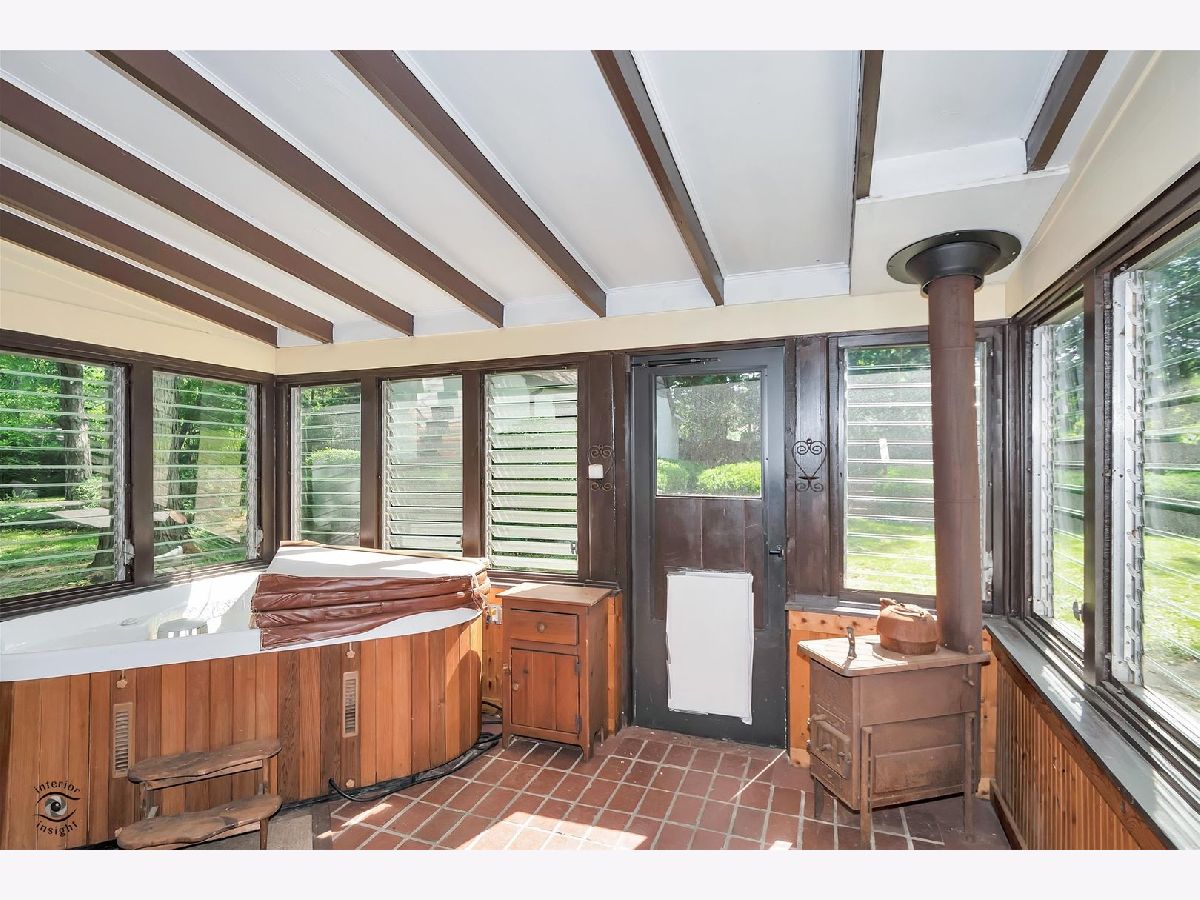 Private wooded lot. Lots of trees and hedges. Tudor style custom home with possible living quarters for extended family (kitchen, bath, liv rm, bedroom (5th)) Hardwood marble and vinyl flooring. Custom marble frpl Walnut trim Granite Kitchen countertop Hunter ceiling fans Enclosed sunroom with hot tub and wood burning stove. Bsmt has finished family room laundry room and room for another bedroom. CA unit 2020 90% furnace HW Heater water softener Back yard has well and septic large deck firepit Bocce Ball Court and 2.5 car detached 2 story garage