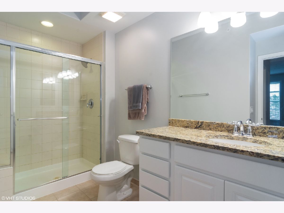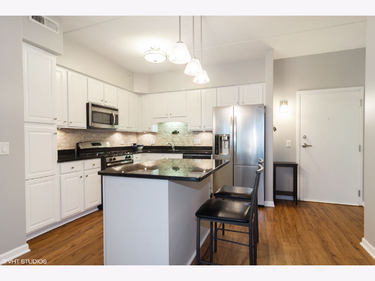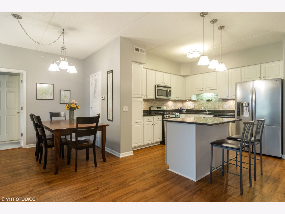 Completely redone! Youngest downtown Palatine condo building offers this beautiful condo that's so nice you have nothing to do except move in and enjoy! Features include 9' ceilings, new flooring, island kitchen with new kitchen backsplash, 36" white cabinetry, stainless steel appliances, granite countertops and beautiful tile baths with white cabinetry. Freshly painted in today's light gray color completes this fabulous 2 bedroom split floor plan. Radiant heat flooring, huge storage room and heated garage space #43. Enjoy beautiful sunsets from the large balcony. Two elevator building for convenience. Low assessments include all but electricity, financially solid reserve account and very well maintained. Lots of guest parking, short walking distance to the Metra and downtown restaurants makes this location so highly desired. Award winning Fremd high school! Homeowner has just received a certificate of error and the new real estate tax amount is $5469.64 including the homeowner exemption and senior exemption.