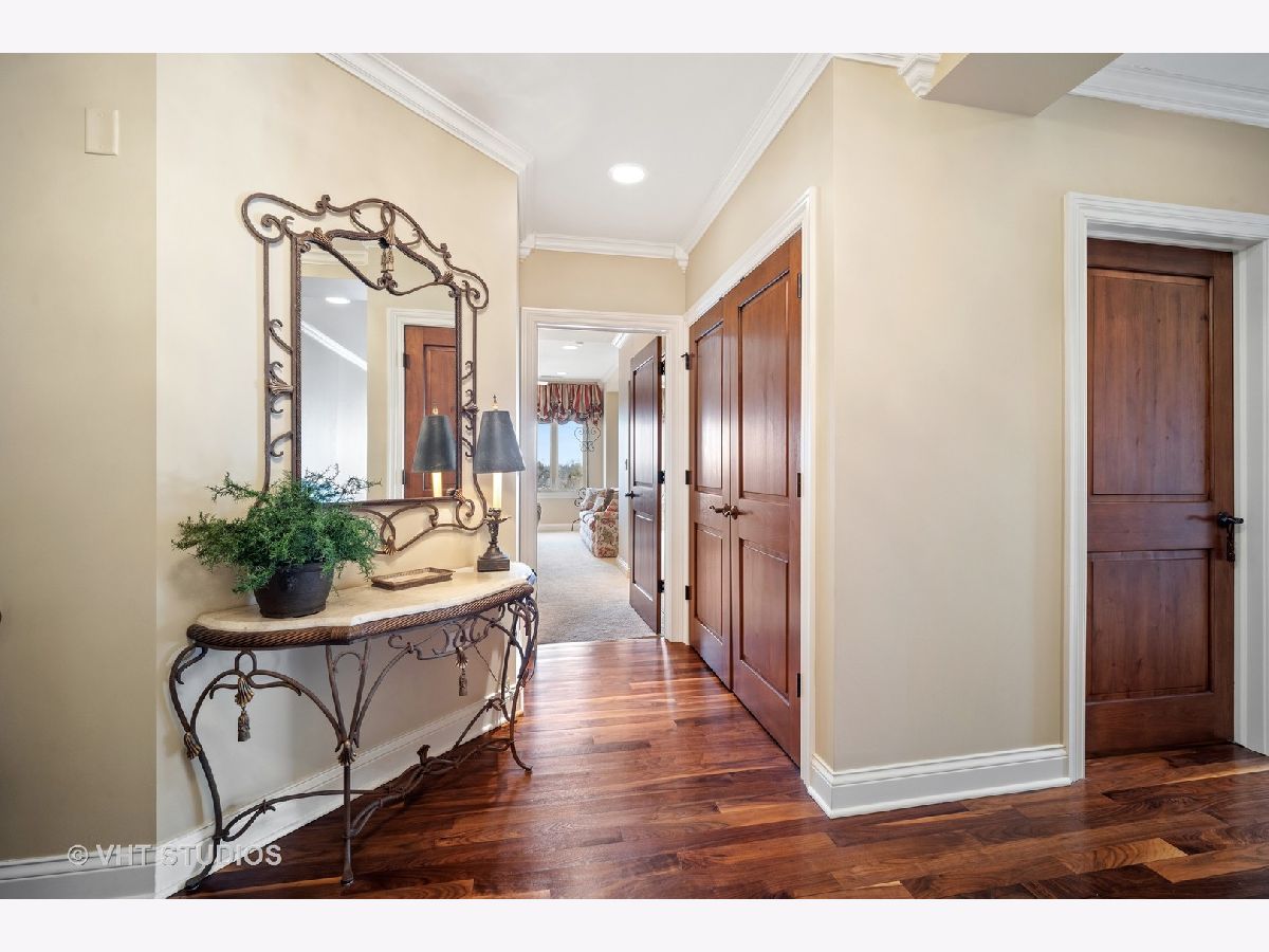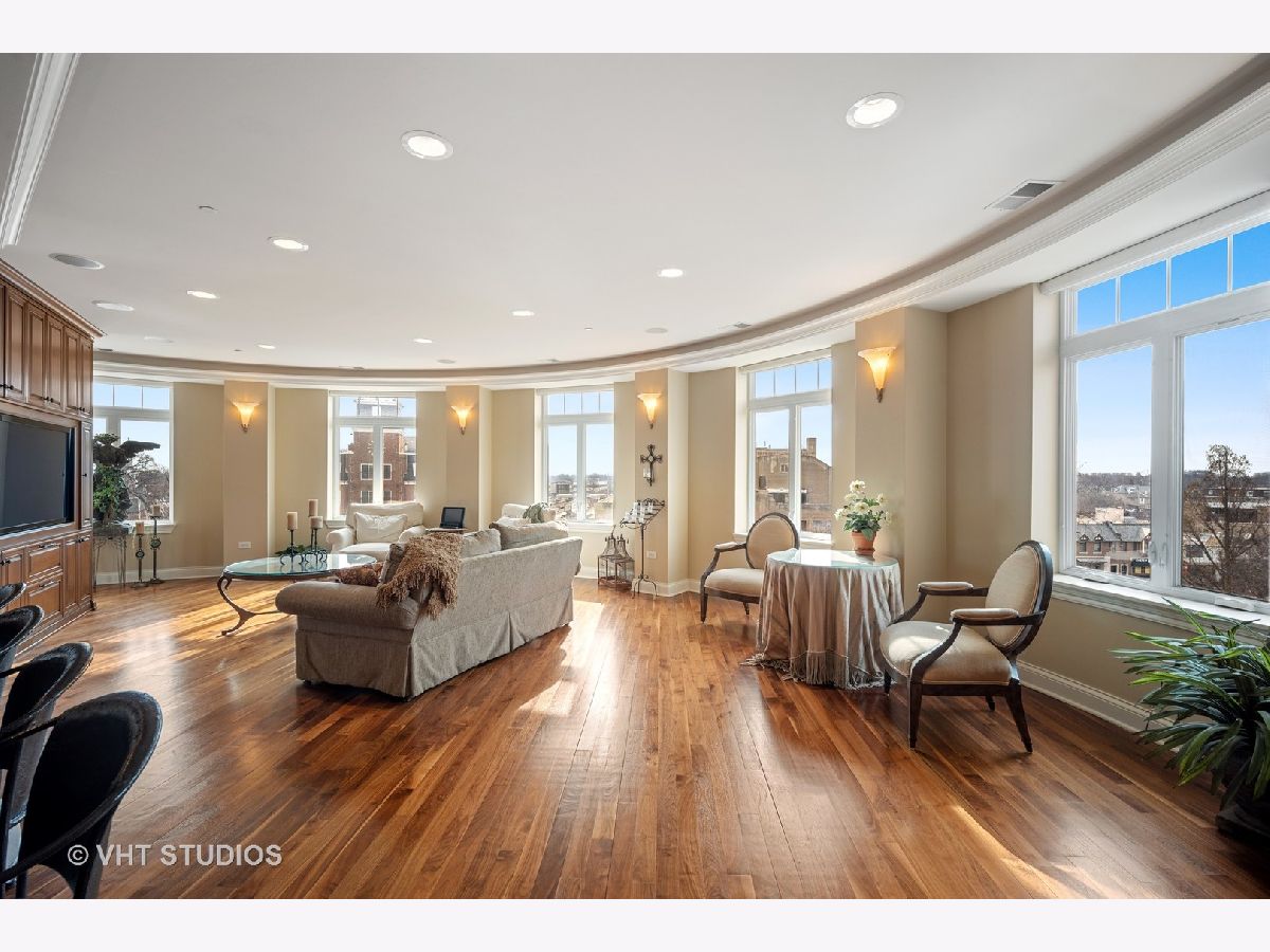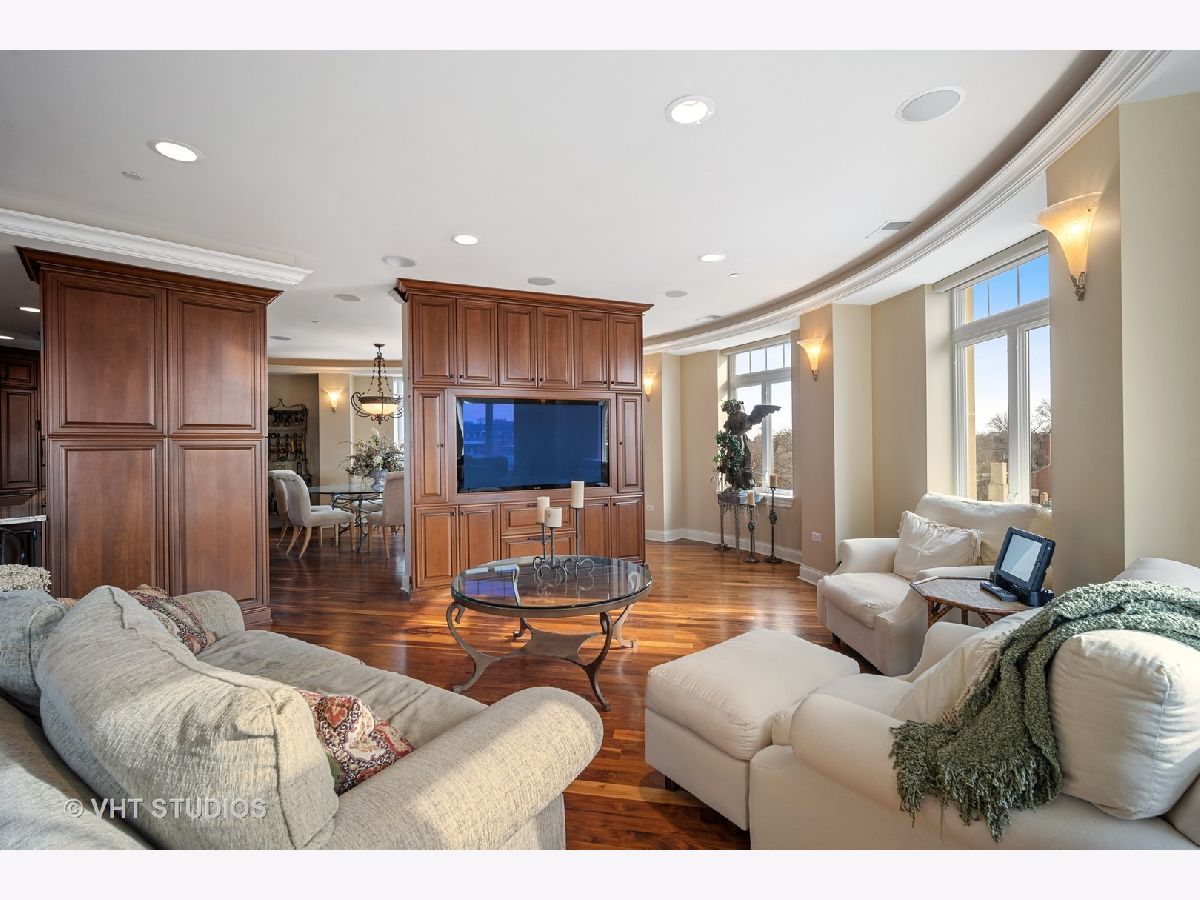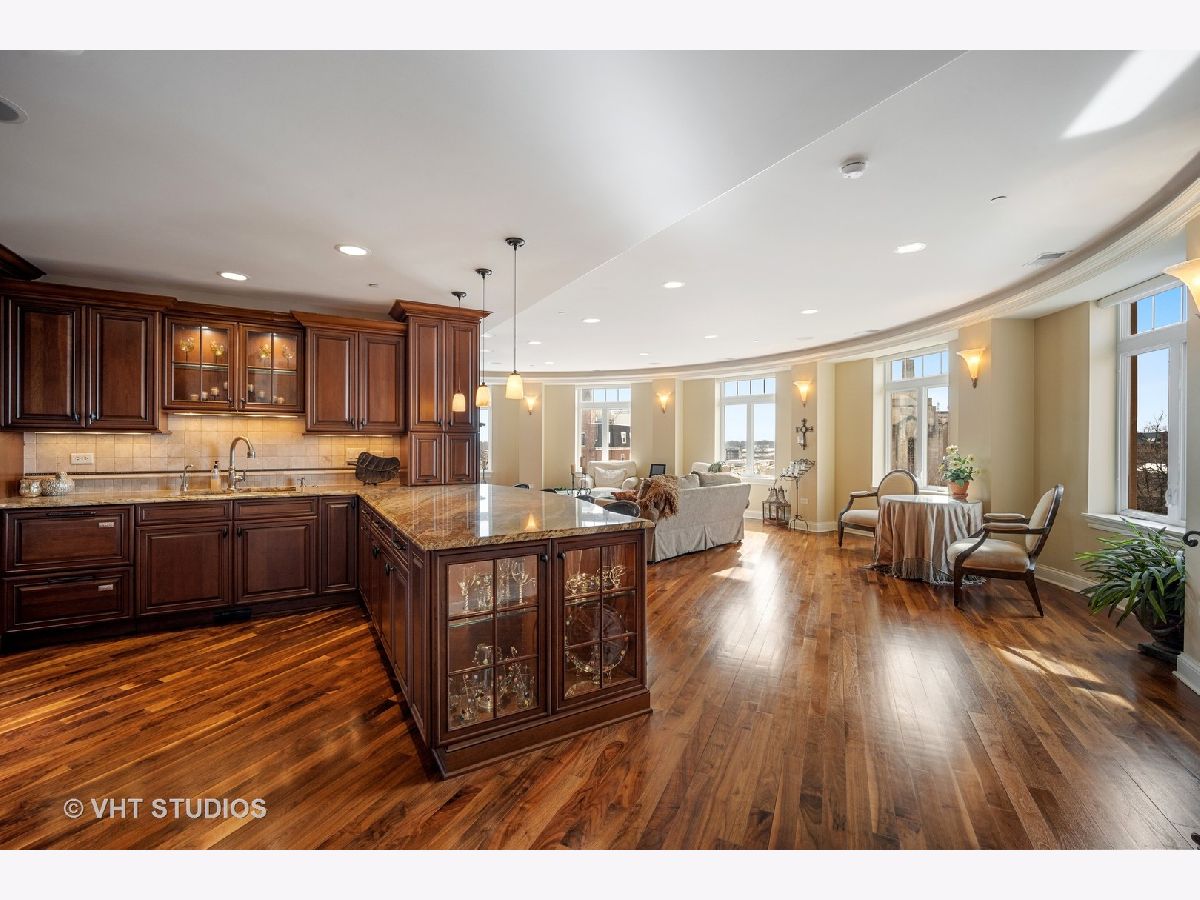 Luxury 4th floor penthouse at the Uptown Residences of Park Ridge. Amazing views of Uptown Park Ridge and the Chicago skyline. Custom kitchen with granite counters, Wolf & Subzero appliances, overlooking the expansive living room perfect for entertaining. Wrap around windows fill the space with natural light. Separate dining room with wet bar. A beautiful wood paneled study featuring a fireplace, built-ins and coffered ceiling. Master suite with 2 walk-in closets and a spa like master bath. The second bedroom also features an en-suite bath. Large laundry room with additional storage. Private balcony, custom electronic window treatments, built-in speakers throughout the condo, central vac, and 2 heated indoor garage parking spaces.