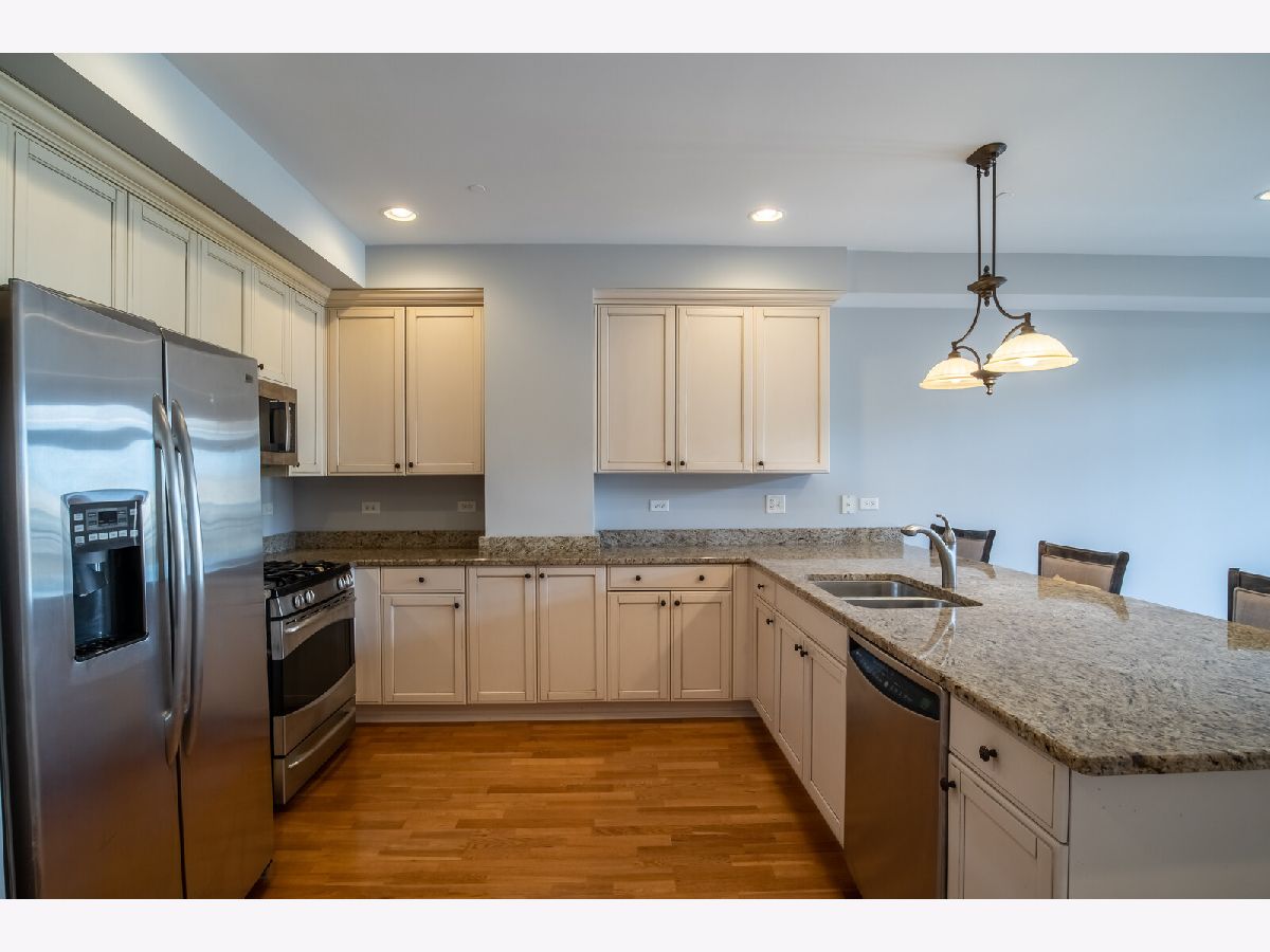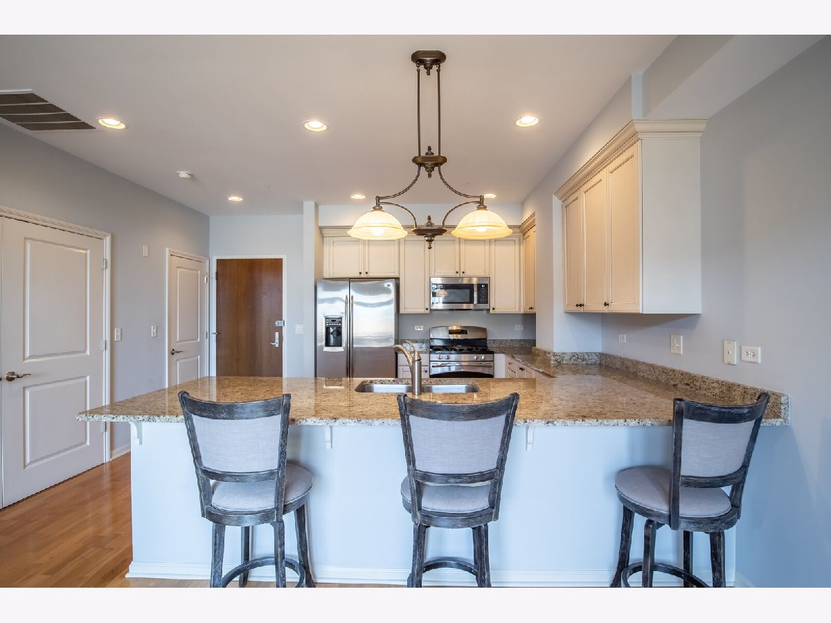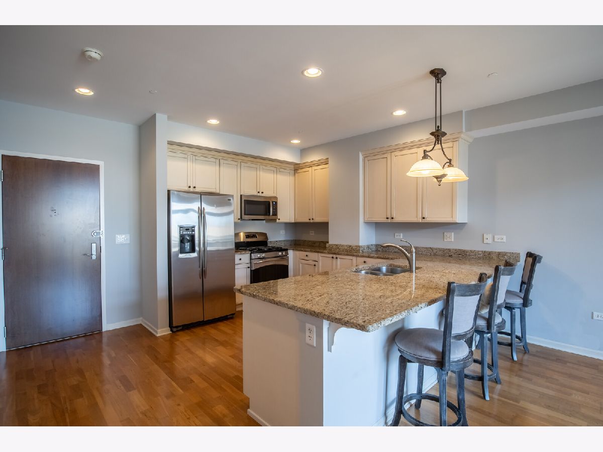 Welcome to the heart of downtown Park Ridge, Uptown Park Ridge! This rarely available, unique two bedroom, two bathroom floorplan features a larger kitchen with granite counters, GE Profile SS appliances, beautiful designer 42" cabinetry, and walk-in pantry. The open concept living space with 9 foot ceilings and dimmable recessed lighting is ideal for entertaining. Transom windows allow for plenty of natural daylight throughout the home. The spacious master suite includes an expansive walk-in closet (over 15 feet long) and en suite with soaking tub. The serene sounds of the water fountain create a relaxing environment on your private southwestern exposure balcony. Heated, secured underground parking garage space with storage area included, and plenty of guest parking available. Walk out the front door across the street to the Metra station for easy commuting, the library, the Pickwick Theatre and Trader Joe's. Enjoy all of the wonderful restaurants, activities and shops of downtown Park Ridge!