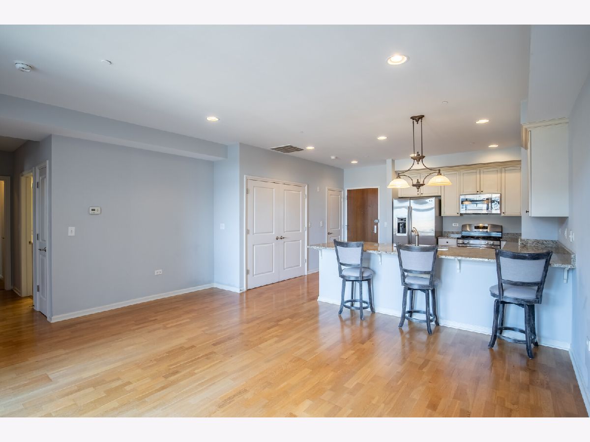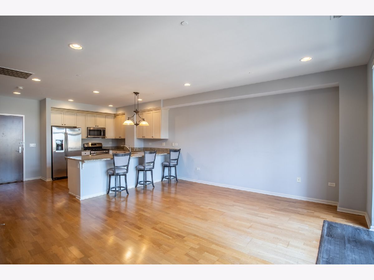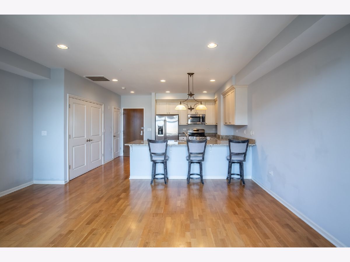 Welcome to the heart of downtown Park Ridge, Uptown Park Ridge! This rarely available, unique two bedroom, two bathroom floorplan features a larger kitchen with granite counters, GE Profile SS appliances, beautiful designer 42" cabinetry, and walk-in pantry. The open concept living space with 9 foot ceilings and dimmable recessed lighting is ideal for entertaining. Transom windows allow for plenty of natural daylight throughout the home. The spacious master suite includes an expansive walk-in closet (over 15 feet long) and en suite with soaking tub. The serene sounds of the water fountain create a relaxing environment on your private southwestern exposure balcony. Heated, secured underground parking garage space with storage area included, and plenty of guest parking available. Walk out the front door across the street to the Metra station for easy commuting, the library, the Pickwick Theatre and Trader Joe's. Enjoy all of the wonderful restaurants, activities and shops of downtown Park Ridge!