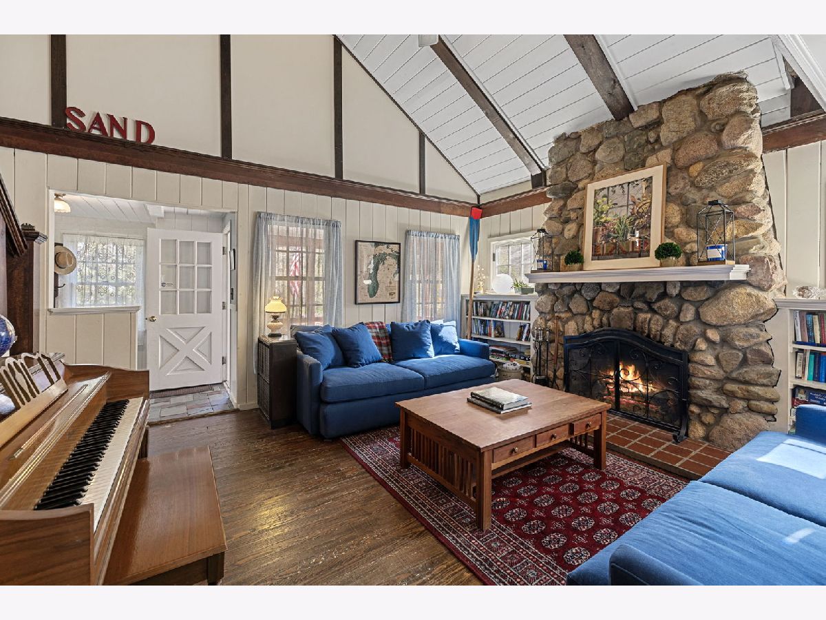 Charming Log Cabin Retreat Near Lake Michigan Beach. Experience the perfect blend of rustic charm and modern convenience in this beautifully restored 1935 log cabin at 50 Pokagon Trail, Michiana, MI. Situated on a lush third-acre lot, this 4-bed, 3-bath home is just a block from Michigan's finest beach, #Stop39. Enjoy vaulted ceilings, an original stone fireplace, and dual screened porches offering views of mature landscaping. The spacious, fenced backyard and lawn is ideal for pets, privacy, and family fun. Just over an hour from Chicago, this cabin is perfect for those seeking a serene getaway with nearby water sports, community amenities like pickleball courts, and kayak storage. Your dream retreat awaits! Selling fully furnished. Short Term Rentals allowed.