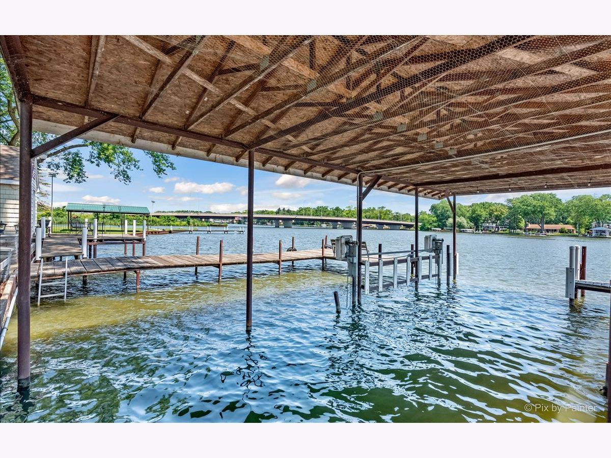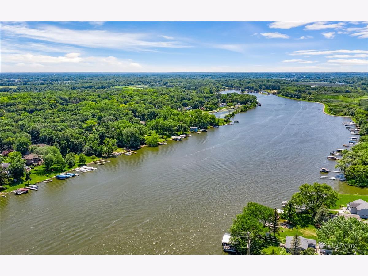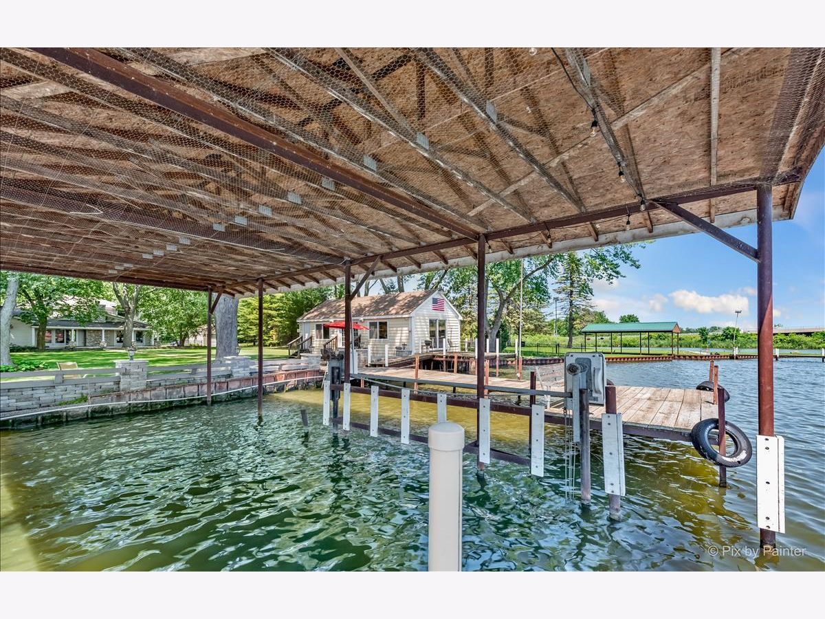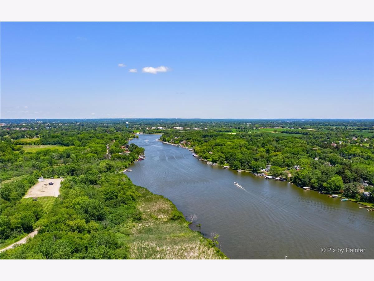 UNBELIEVABLE waterfront home on the Fox River with easy Chain O' Lakes Access! This home rests along a RARE 125 feet of water frontage, with a private pier on each side of a covered, permanent, 20,000lb boat lift. Step inside the foyer and instantly notice the breathtaking views from the stunning great room! This room also highlights a gorgeous cobble stone wood burning fireplace, wood beam and double sliders! The custom gourmet kitchen has plenty of custom cabinetry, stone countertops a center island and over looks the eating area and great room! The oversized master bedroom includes vaulted ceiling, picturesque views or the river and a walk in closet. The large en-suite is equipped with a double sink and separate shower. The media/family room and office (or 4th bedroom), completes the main level. Head upstairs to find two more generous sized bedrooms, each with their own private full bathrooms. A loft completes the 2nd level. Step out the sliding glass doors from the family room onto a large covered porch and enjoy breathtaking sunrises! Just in time for outdoor entertainment! The spacious boat house has been converted into finished space; Perfect for all your entertaining need with gorgeous water view! Featuring a bar, as well as a sitting area! Enjoy evening gathered around the fire pit with friends and family after a day or boating! All of this sits on almost a half an acre of level well manicured grounds. 3 separate buildings/garages offer a TON of storage for your car, boat and toys! home is truly one of a kind! Minutes from downtown McHenry with wonderful dining options and shopping. Just in time for summer fun!