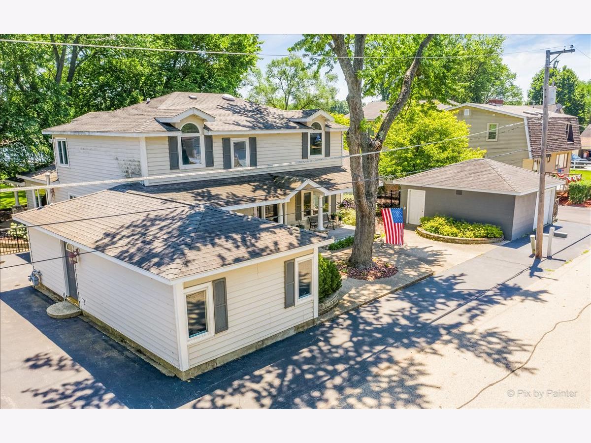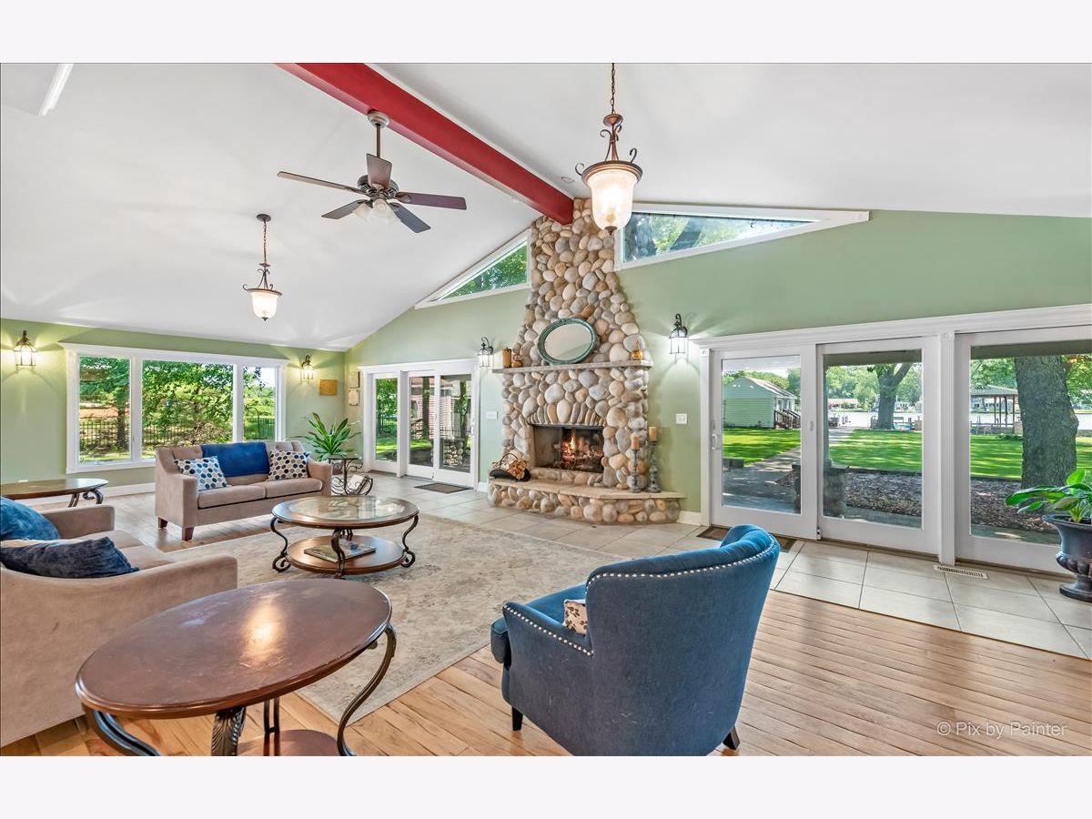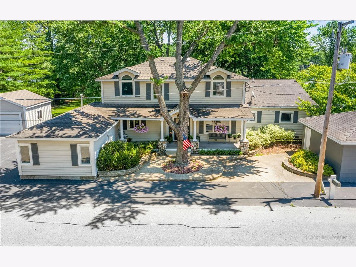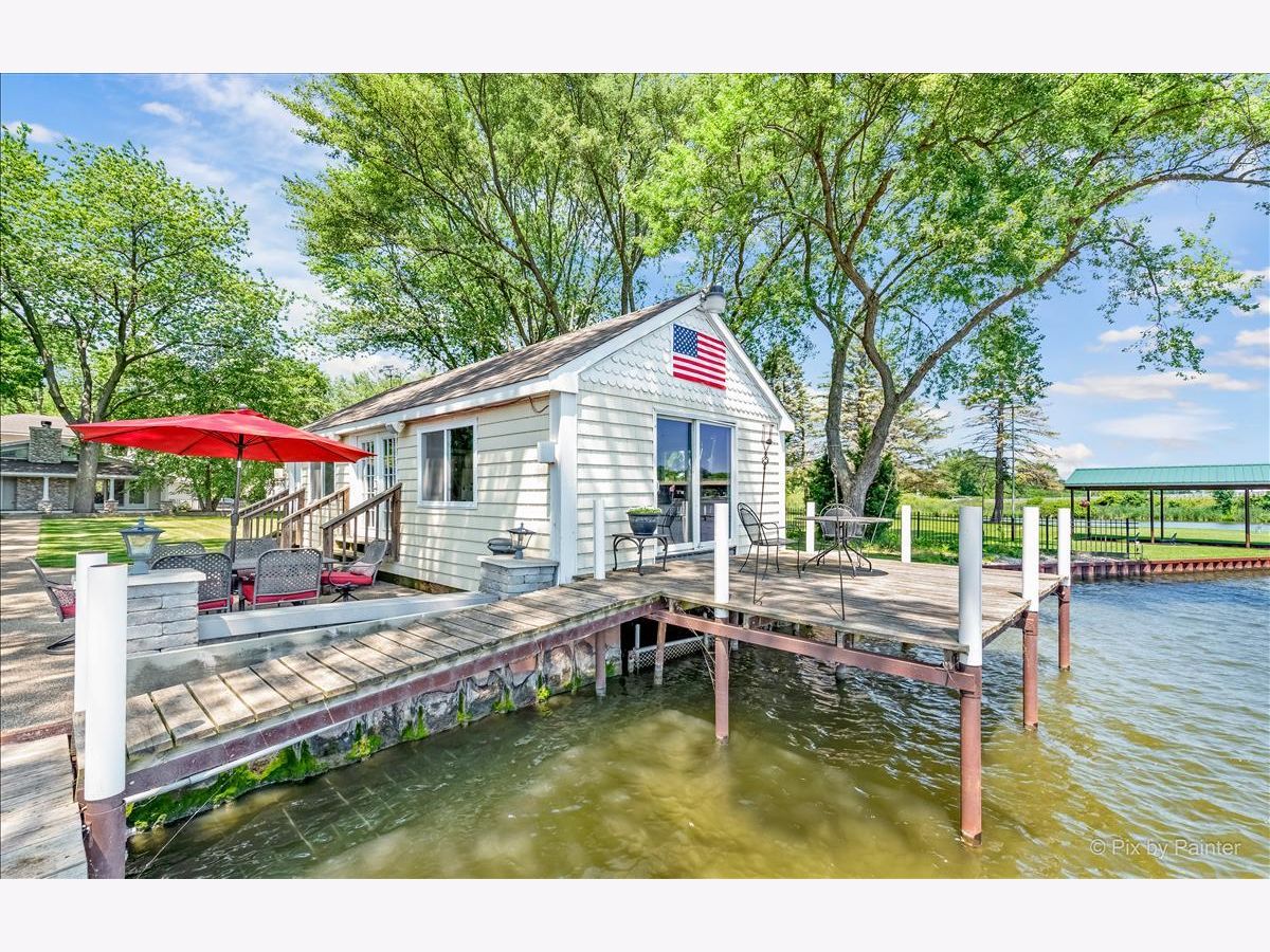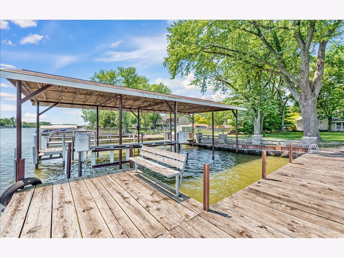 UNBELIEVABLE waterfront home on the Fox River with easy Chain O' Lakes Access! This home rests along a RARE 125 feet of water frontage, with a private pier on each side of a covered, permanent, 20,000lb boat lift. Step inside the foyer and instantly notice the breathtaking views from the stunning great room! This room also highlights a gorgeous cobble stone wood burning fireplace, wood beam and double sliders! The custom gourmet kitchen has plenty of custom cabinetry, stone countertops a center island and over looks the eating area and great room! The oversized master bedroom includes vaulted ceiling, picturesque views or the river and a walk in closet. The large en-suite is equipped with a double sink and separate shower. The media/family room and office (or 4th bedroom), completes the main level. Head upstairs to find two more generous sized bedrooms, each with their own private full bathrooms. A loft completes the 2nd level. Step out the sliding glass doors from the family room onto a large covered porch and enjoy breathtaking sunrises! Just in time for outdoor entertainment! The spacious boat house has been converted into finished space; Perfect for all your entertaining need with gorgeous water view! Featuring a bar, as well as a sitting area! Enjoy evening gathered around the fire pit with friends and family after a day or boating! All of this sits on almost a half an acre of level well manicured grounds. 3 separate buildings/garages offer a TON of storage for your car, boat and toys! home is truly one of a kind! Minutes from downtown McHenry with wonderful dining options and shopping. Just in time for summer fun!