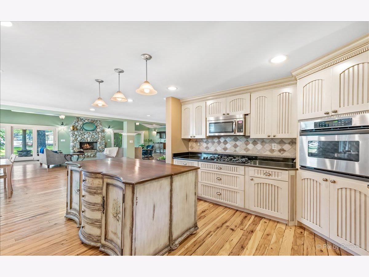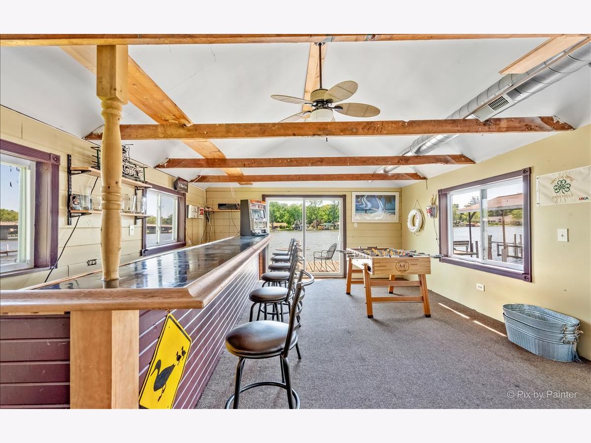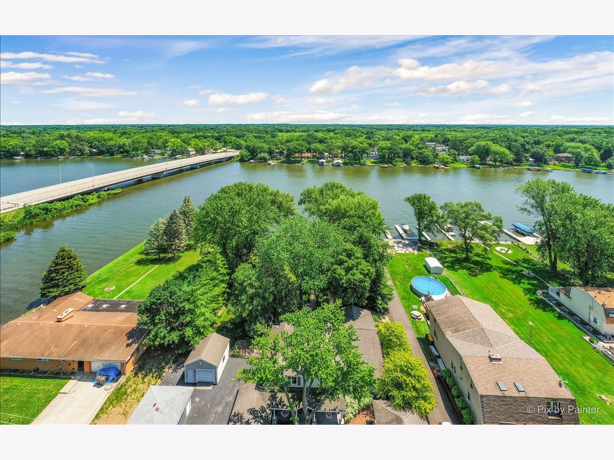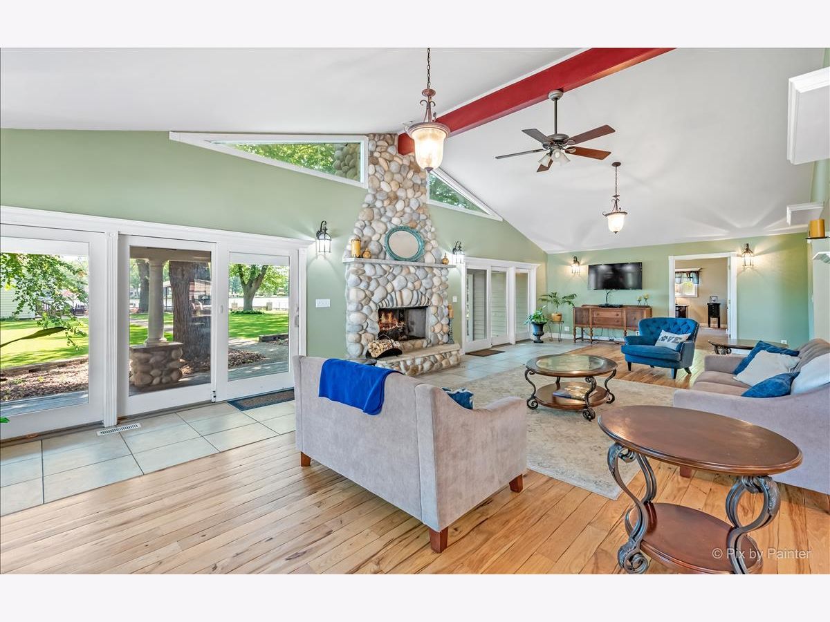 UNBELIEVABLE waterfront home on the Fox River with easy Chain O' Lakes Access! This home rests along a RARE 125 feet of water frontage, with a private pier on each side of a covered, permanent, 20,000lb boat lift. Step inside the foyer and instantly notice the breathtaking views from the stunning great room! This room also highlights a gorgeous cobble stone wood burning fireplace, wood beam and double sliders! The custom gourmet kitchen has plenty of custom cabinetry, stone countertops a center island and over looks the eating area and great room! The oversized master bedroom includes vaulted ceiling, picturesque views or the river and a walk in closet. The large en-suite is equipped with a double sink and separate shower. The media/family room and office (or 4th bedroom), completes the main level. Head upstairs to find two more generous sized bedrooms, each with their own private full bathrooms. A loft completes the 2nd level. Step out the sliding glass doors from the family room onto a large covered porch and enjoy breathtaking sunrises! Just in time for outdoor entertainment! The spacious boat house has been converted into finished space; Perfect for all your entertaining need with gorgeous water view! Featuring a bar, as well as a sitting area! Enjoy evening gathered around the fire pit with friends and family after a day or boating! All of this sits on almost a half an acre of level well manicured grounds. 3 separate buildings/garages offer a TON of storage for your car, boat and toys! home is truly one of a kind! Minutes from downtown McHenry with wonderful dining options and shopping. Just in time for summer fun!