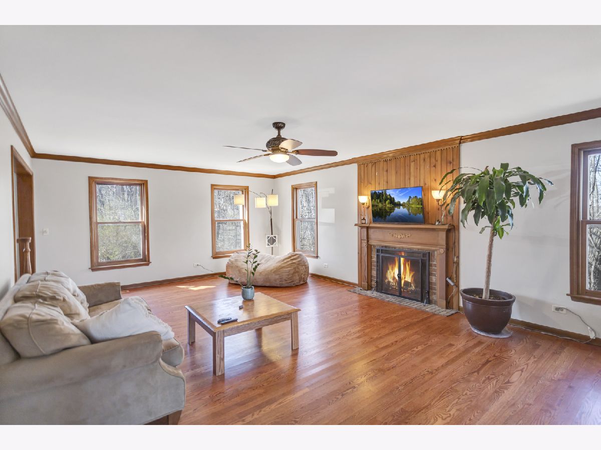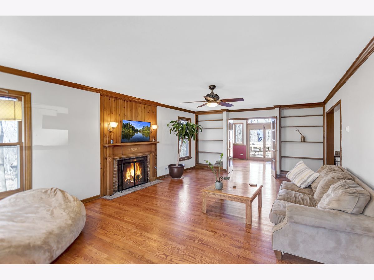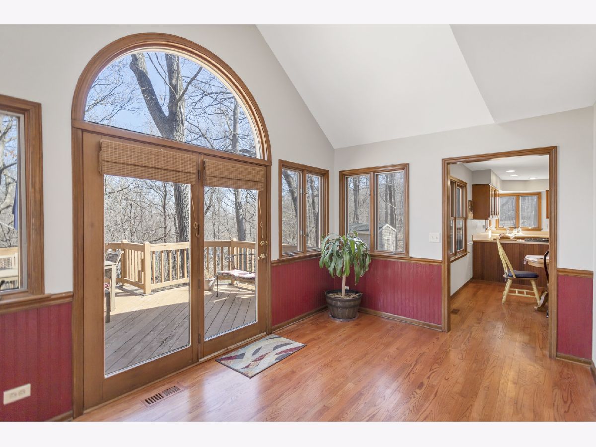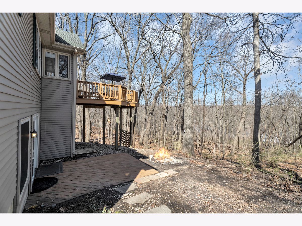 This stunning custom-built 5-bedroom home is a true gem, nestled on nearly a full acre of beautifully wooded land overlooking the tranquil Fox River, offering an exceptional blend of privacy, nature, and luxury living. Step inside to the inviting entryway that opens to a stylish home office with brand new French doors-ideal for working from home in peace and comfort. The main level is adorned with gorgeous, newly installed gleaming hardwood floors that flow seamlessly throughout, creating a warm and sophisticated ambiance. The spacious living room features an abundance of natural light, cozy gas fireplace, and French doors that lead into the sunroom, where you can soak in panoramic views of the picturesque outdoor surroundings year-round. The heart of the home, the kitchen, is both functional and stylish with stainless steel appliances, an abundance of cabinetry, Corian countertops, and an eating area. Convenience abounds with laundry areas both on the main level and in the finished walk-out basement. Upstairs, the generously sized primary suite is a serene retreat, complete with a walk-in closet and a luxuriously updated en-suite bath featuring a whirlpool tub, separate rainfall shower with streak free glass encasing, and double sinks. Two additional spacious bedrooms and a full hall bath with double sinks complete the upper level. NEW carpet and premium blinds on the second level. The newly remodeled finished walk-out basement offers even more room to relax and entertain, showcasing a large family room, a second eating area with a wet bar, 2 bedrooms, updated full bath with new vanity and tiles, and an additional utility/laundry space. Step outside and you'll find your own private sanctuary with spectacular views from either the upper or lower deck, complete with a cozy firepit-perfect for enjoying quiet evenings or lively gatherings with friends and family. Located just minutes from shopping, dining, and major highways, this extraordinary property offers the peaceful charm of a rural setting with all the conveniences of in-town living-an absolute must-see!