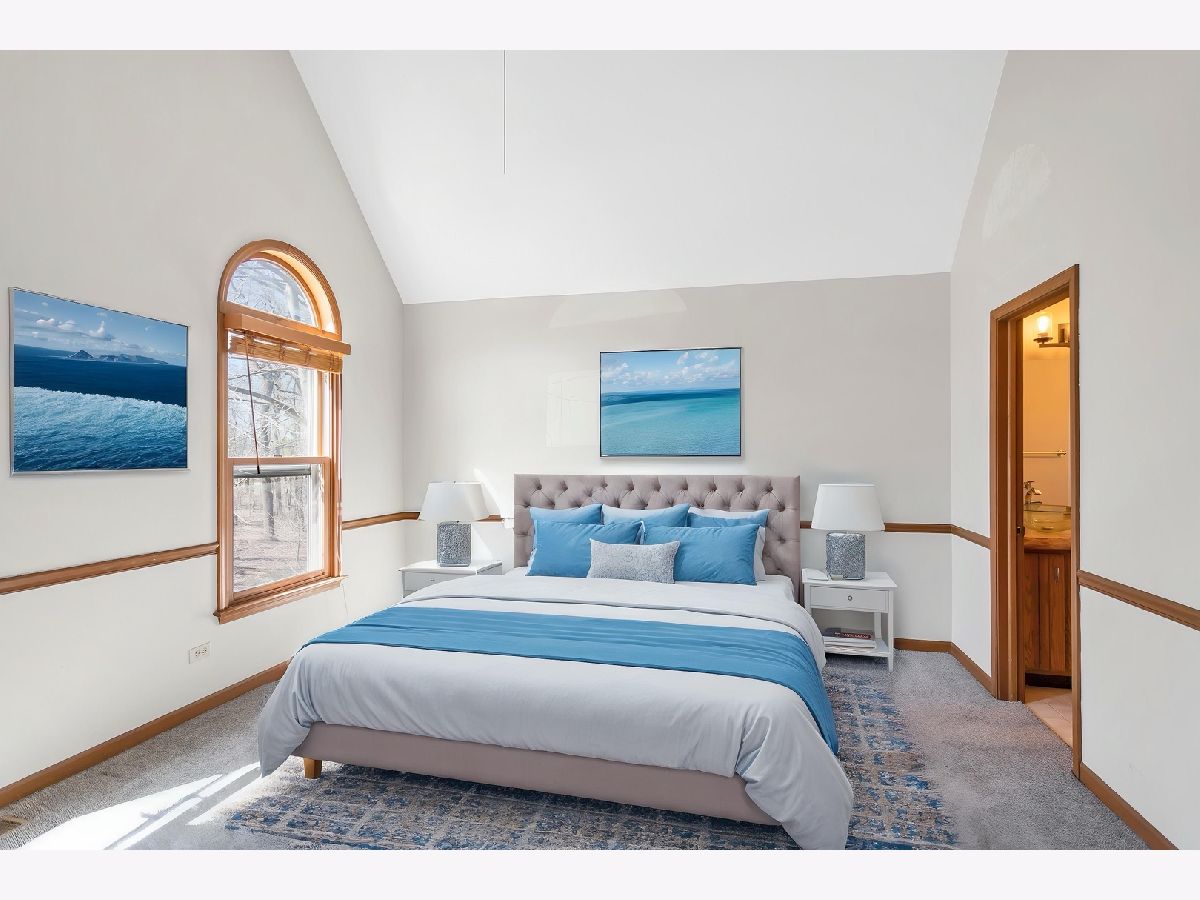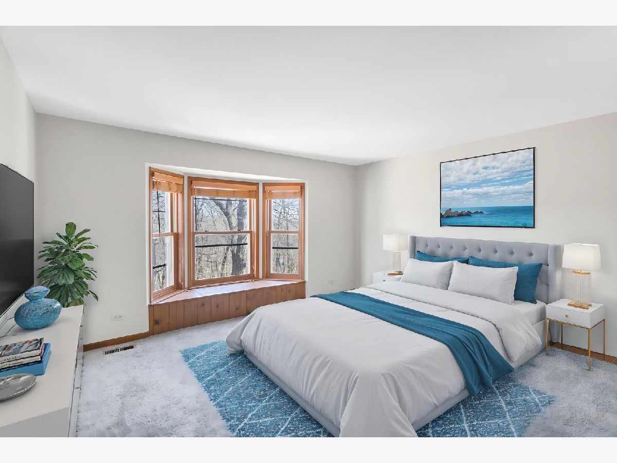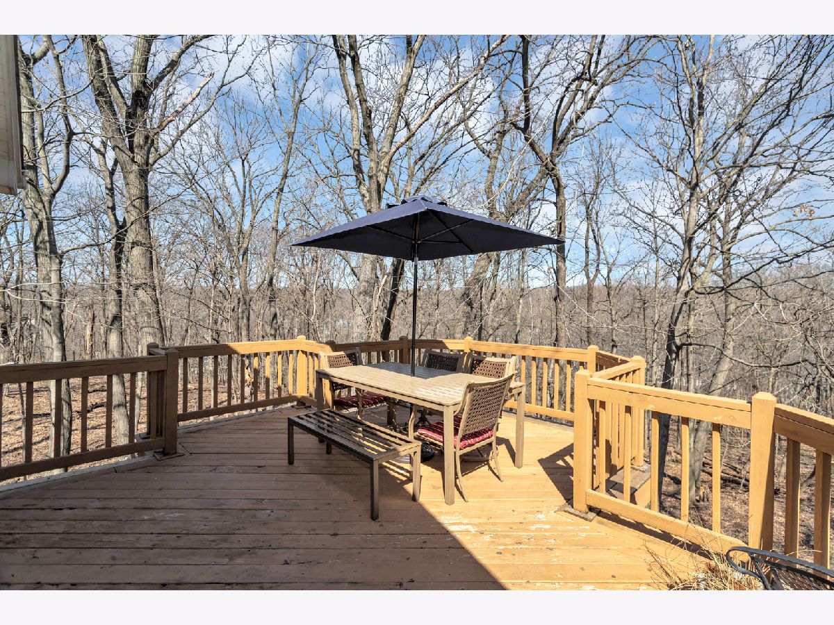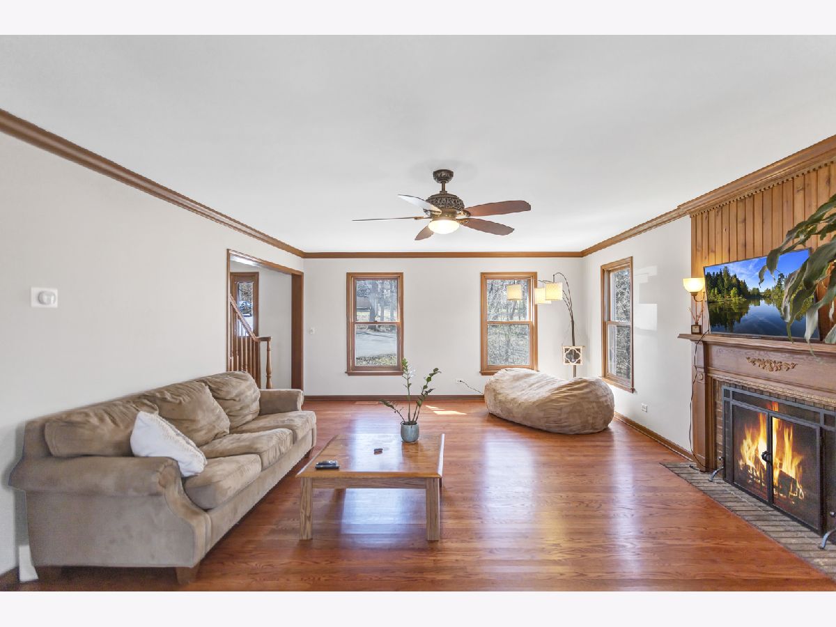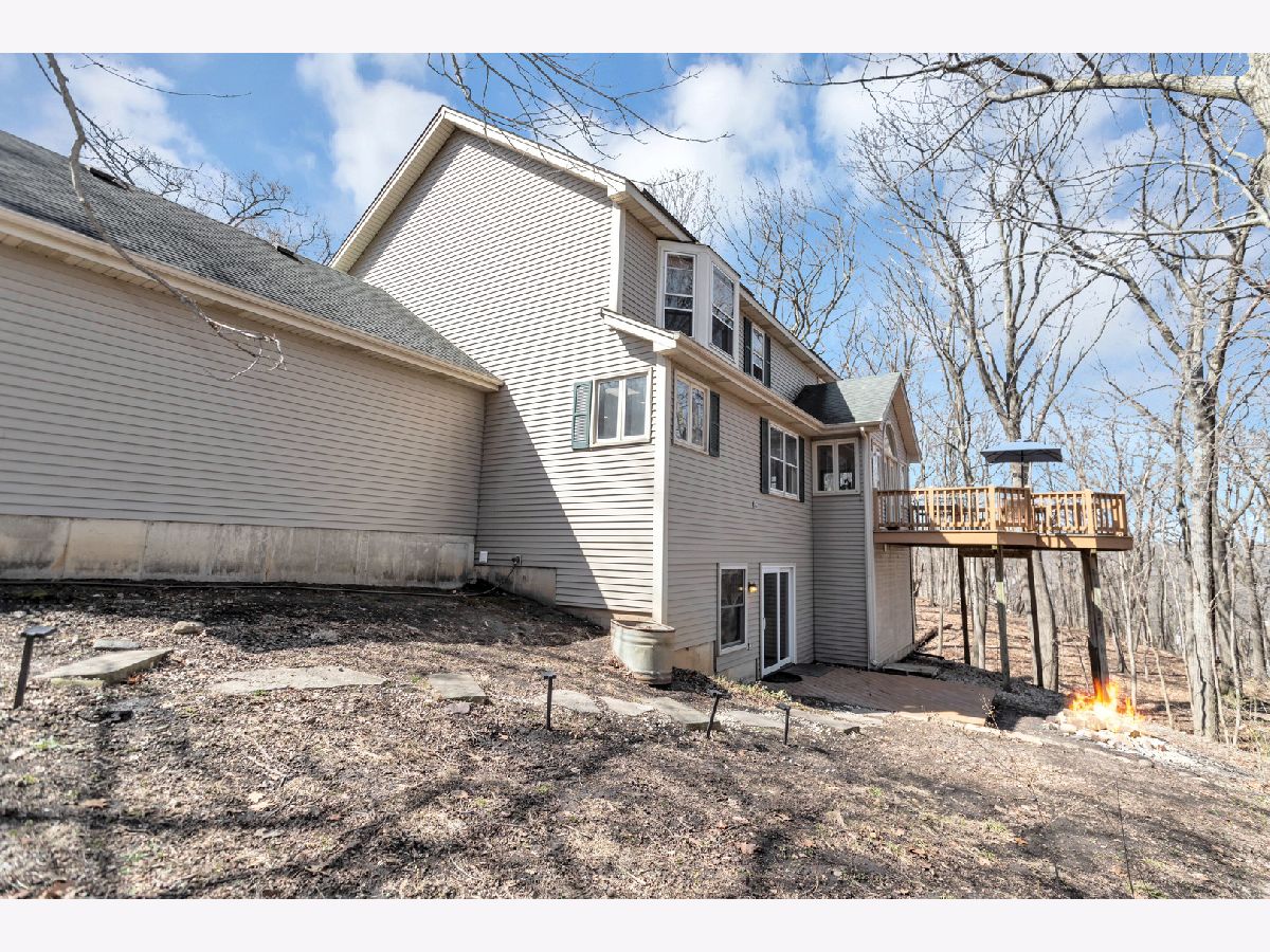 This stunning custom-built 5-bedroom home is a true gem, nestled on nearly a full acre of beautifully wooded land overlooking the tranquil Fox River, offering an exceptional blend of privacy, nature, and luxury living. Step inside to the inviting entryway that opens to a stylish home office with brand new French doors-ideal for working from home in peace and comfort. The main level is adorned with gorgeous, newly installed gleaming hardwood floors that flow seamlessly throughout, creating a warm and sophisticated ambiance. The spacious living room features an abundance of natural light, cozy gas fireplace, and French doors that lead into the sunroom, where you can soak in panoramic views of the picturesque outdoor surroundings year-round. The heart of the home, the kitchen, is both functional and stylish with stainless steel appliances, an abundance of cabinetry, Corian countertops, and an eating area. Convenience abounds with laundry areas both on the main level and in the finished walk-out basement. Upstairs, the generously sized primary suite is a serene retreat, complete with a walk-in closet and a luxuriously updated en-suite bath featuring a whirlpool tub, separate rainfall shower with streak free glass encasing, and double sinks. Two additional spacious bedrooms and a full hall bath with double sinks complete the upper level. NEW carpet and premium blinds on the second level. The newly remodeled finished walk-out basement offers even more room to relax and entertain, showcasing a large family room, a second eating area with a wet bar, 2 bedrooms, updated full bath with new vanity and tiles, and an additional utility/laundry space. Step outside and you'll find your own private sanctuary with spectacular views from either the upper or lower deck, complete with a cozy firepit-perfect for enjoying quiet evenings or lively gatherings with friends and family. Located just minutes from shopping, dining, and major highways, this extraordinary property offers the peaceful charm of a rural setting with all the conveniences of in-town living-an absolute must-see!