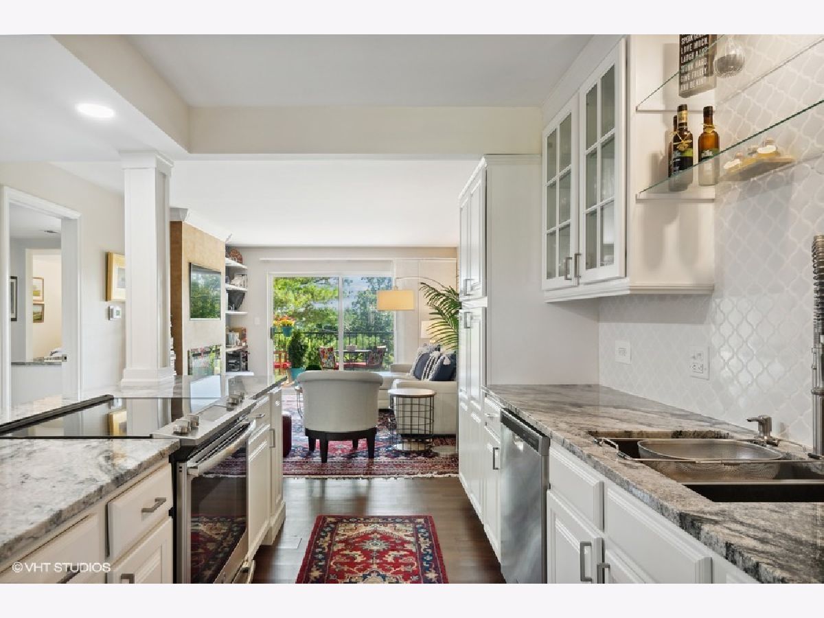 Beautifully renovated corner unit condo with an elevator in the heart of Highwood! This bright end unit was completely rehabbed between 2019-2021. One of the largest floor plans with a separate dining room. Open kitchen with granite counters, SS appliances, custom cabinetry and a large farm sink. Primary suite with full bath, walk-in closet, and access to covered balcony. 2nd bedroom, 2nd full bath, in-unit full size laundry. Living room features built-in shelving, electric fireplace and wall of windows. Large covered balcony with sliding glass doors from living room and primary bedroom. Parking in heated garage and storage unit included. All mechanicals and appliances were new in 2019/2020. Close to town, train, restaurants, shopping, entertainment, bike paths, Lake Michigan and Fort Sheridan Nature Preserve. Enjoy life in this wonderful condo and ideal location in Highwood!