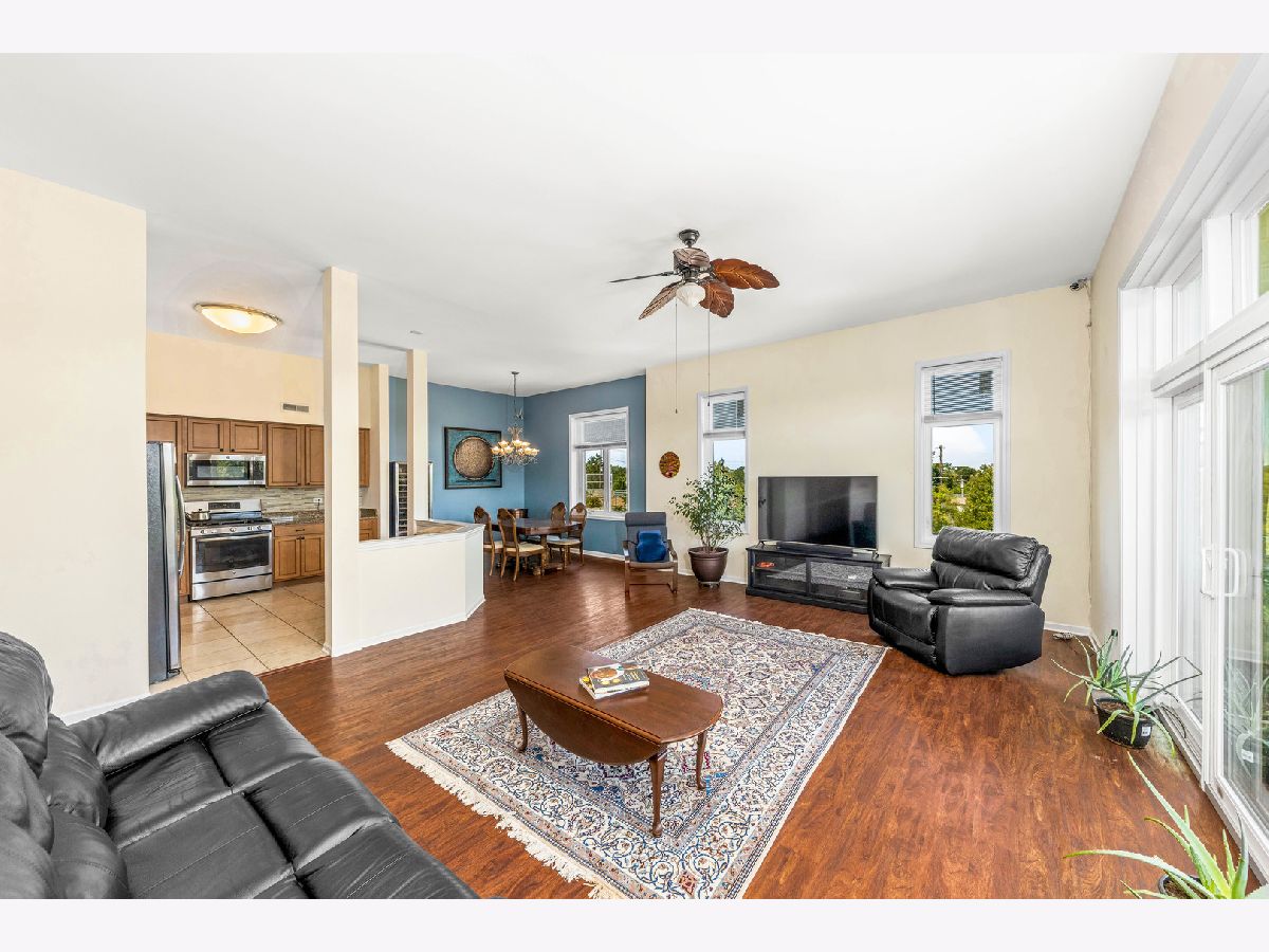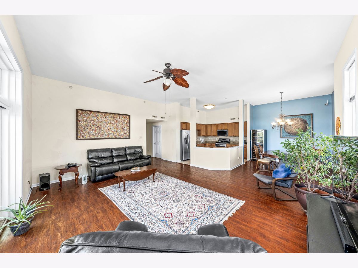 A rare opportunity to live in the heart of Lombard** 2007 built Elevator Building* 2060 Sq ft ** 3BRs and 2 FULL Baths ** END Unit Penthouse with the Panoramic views to die for ** Living Room boasts of - Floor to Ceiling windows and Sliding Glass Doors with access to the private 21 FT private balcony ** 12' Ceilings in the Living Room, Kitchen and Dining Rooms sunlit from Sunrise to the Sunset ** Large functional Open concept Kitchen with maple cabinets, Granite Countertops and SS appliances ** Luxury MBR suite offers another large private balcony, Private bath with jacuzzi, shower, double sink vanity and spacious Walk in Closet** Bedrooms are spacious and have spacious closets ** A rare walk in coat closet ** Brand NEW Roof on the building ** BRAND NEW WINDOWS and Sliding Glass Door ** HEATED FLOORS ** HOA fees covers heat, water, gas, Heated Garage parking with Large Storage room, Common insurance, Exterior maintenance, snow removal, windows and UNIT Entrance door ** Walk in Laundry Room in the unit ** Radiant Heat and gas forced heat ** Building is located across the Water Park, walking distance from the Train Station with easy access to the City, Downtown area, Great Western Trail, Lombard Commons, Water Park and Shopping ** NO Rentals Allowed **