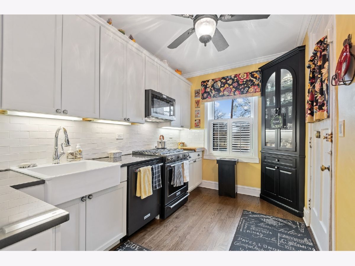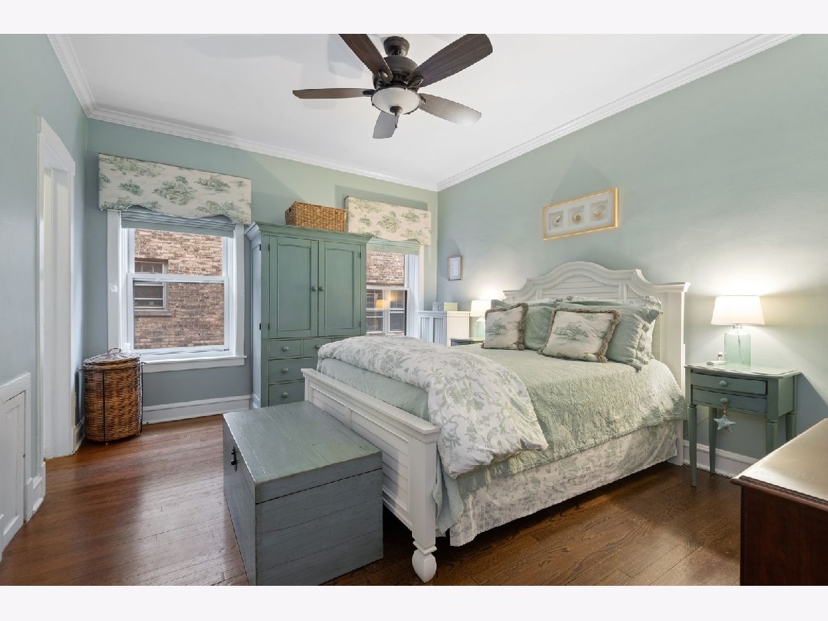 Come see this beautifully renovated condo in southeast Evanston! Step into an oversized living room with gas fireplace and direct view of Lake Michigan. Plantation shutters and custom radiator covers are just the beginning of a list of upgrades in this pristine home. Unit has two large bedrooms with en suite bathrooms plus a 3rd bedroom/office/bonus space with custom designed bookshelves. Kitchen features new, modern black stainless appliances and custom built in cabinet overlooking a shared garden space. Custom closets throughout the unit and two additional storage spaces provide ample space for all of your things. Brand new washer/dryer installed in February 2022. This intimate, 8 unit building features a common patio and garden area with gas grill, perfect for summer months. Monthly assessment includes heat and gas. Healthy reserves with no special assessments planned. Rental parking available directly outside of the building. Walking distance to the train, steps to the lake!
