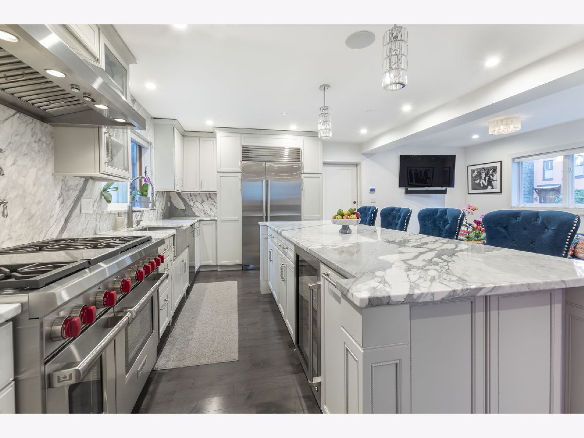 This magazine published East Lincoln Park single family home was recently gutted to the studs. Ideally located on a bright corner lot across from Bauler Playlot, this 3,350 sqft home offers sophisticated living space with new contemporary finishes, massive outdoor space, and attached garage parking. You enter the home via a secure double door entry foyer with guest closet. The 2-story living room is a showstopper with south-facing floor to ceiling windows, a fireplace, and a crystal chandelier. The all new main level has an open concept floorplan with dining room, kitchen and family room together. The stunning white kitchen has custom cabinetry, statuary marble counters, a stainless-steel farm sink, and top-quality appliances including a Sub Zero refrigerator, a Miele dishwasher and espresso machine, a dual temp wine refrigerator, a Wolf range with double oven, pot filler and outside vented exhaust hood, and a microwave/convection oven. The oversized island offers ample breakfast bar seating, and the powder room on this level is wrapped in marble. Stairs with a new glass panel rail system lead up to the bedroom level. The master suite includes custom blackout shades, a wall of closets, and a stunning new marble bath with dual vanity, ample storage, and a huge spa-like walk-in shower. The other bedrooms on this level have Elfa organized closets and share a beautiful new marble bath. The deck on the second level includes a gas line for a grill. Perfect for summer entertaining and container gardening, the top-level roof deck offers panoramic tree-top and city views. The lower level includes a rec room with new porcelain tile floor, laundry room, utilities and storage. Other recent upgrades include the addition of a fire safety sprinkler system, LED and designer lighting, Lutron dimmers and a Nest thermostat. This home has an attached garage, a pad in front for a second car, and permit street parking. It is in the prestigious Lincoln School District, and transportation, shopping, dining and parks are easily accessible.