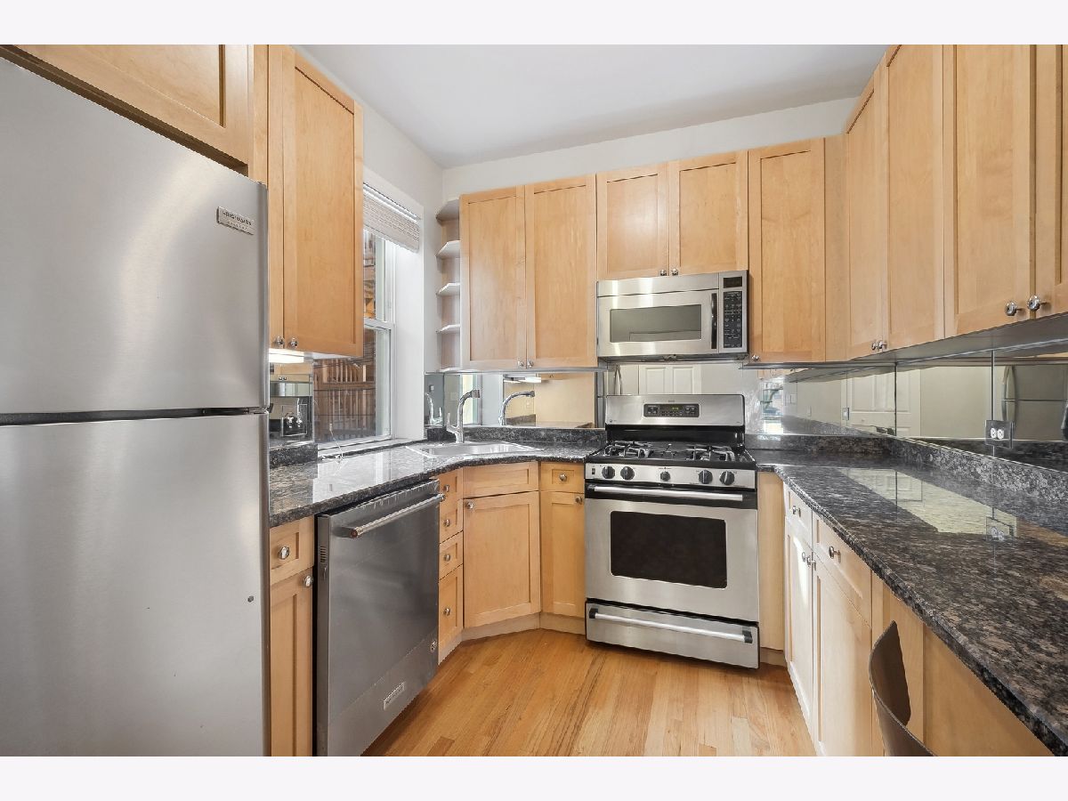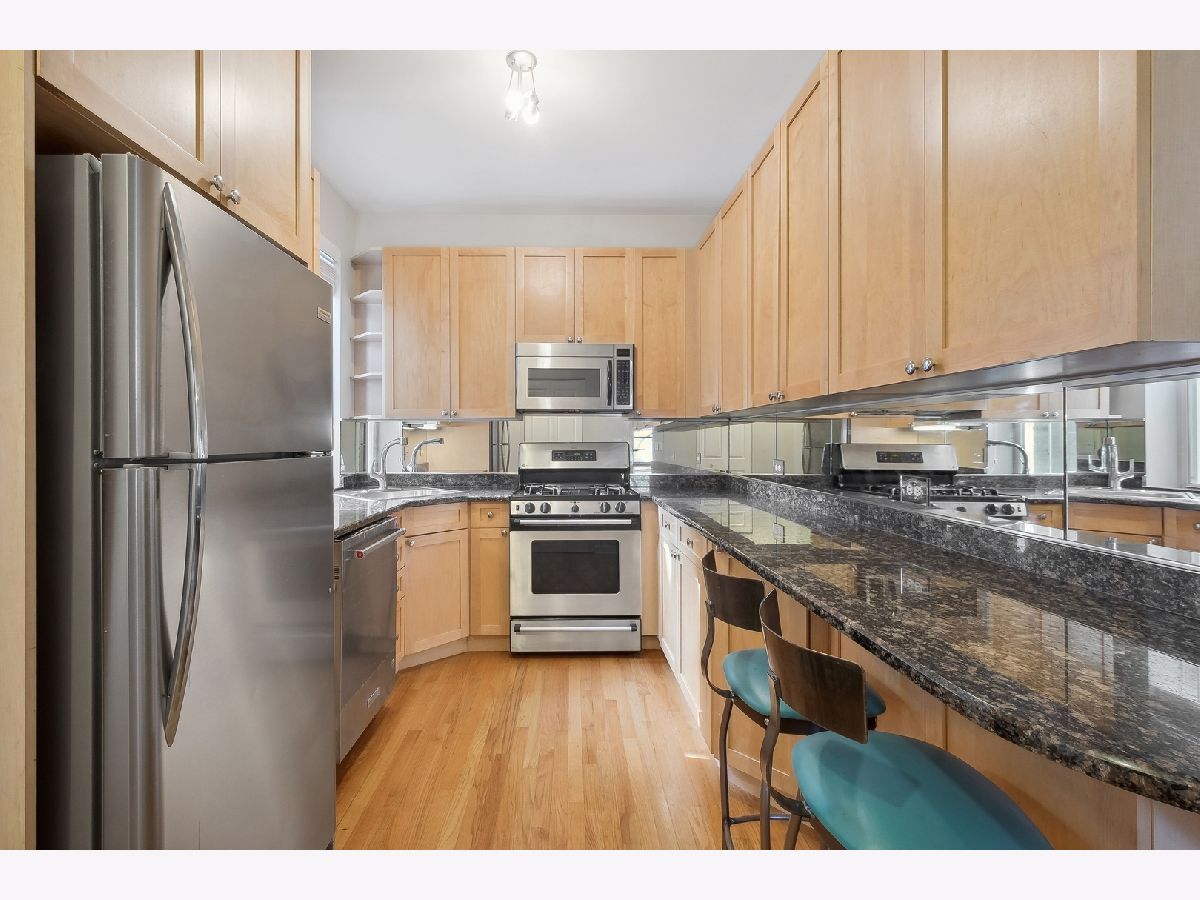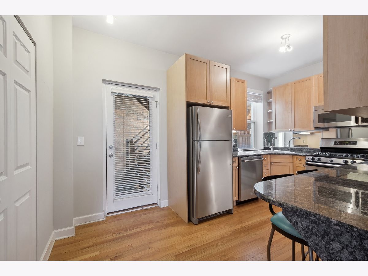 Sun-filled, high first floor corner unit! Generous bedrooms both with organized closets. Living room has tons of light that fills in during the day. Kitchen has lots of counter space and breakfast bar. Hardwood floors throughout the unit. Condo with in-unit laundry, central air, bright, updated kitchen with breakfast bar, maple cabinets, granite counter tops & stainless appliances. Three extra storage spaces. Train, restaurants, parks are walking distance to this.