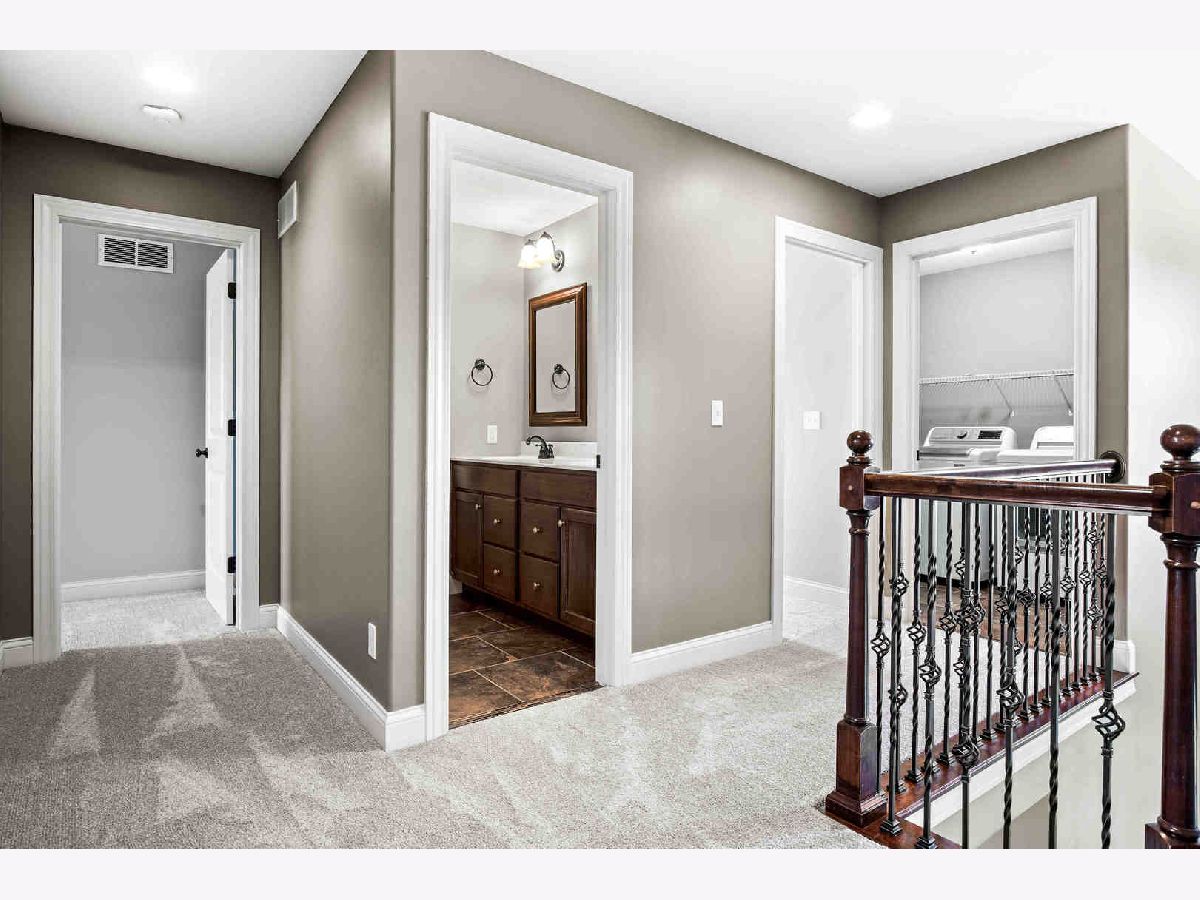 Spacious 2-story on a large lot in a quiet location in the desired Grove on Kickapoo Creek Subdivision. Step into the 2-story foyer with an open stairway and beautiful iron railings as you begin your tour. You will appreciate the open floor plan, the 9' ceilings, the main floor office/flex room, wood & tile floors throughout the main level and the 2nd floor laundry. You will enjoy time in the kitchen with an island, granite counters, and lovely tile backsplash. There is a great drop zone by the garage entrance. Outdoor relaxing or entertaining will be pleasant with the paver patio w/paver walls and a fire-pit. The current owners enclosed the yard with a privacy fence, and the landscaping includes mature, professional plantings. The owner suite has vaulted ceilings, a double bowl vanity, a private toilet area and tile in the shower and separate tub area. The owners just replaced all carpet on the second floor. Extra space in the basement includes a large family room, bedroom, bathroom and a storage area. The 3-car garage is heated and has wiring for an EV charger. Second floor bedrooms just professionally painted. This is the larger version of this popular floor plan. Elementary school in subdivision.