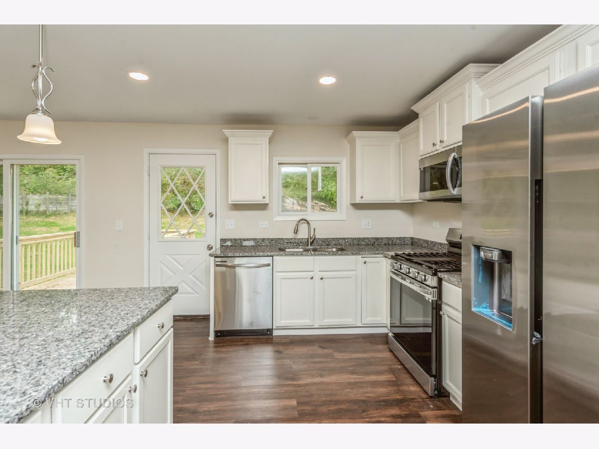This lovely Raised ranch style home is ready to move into now. Kitchen, dining and living room have an open concept. Spacious Kitchen has lots of cabinets, granite counters & new appliances. 3 bedrooms, large family room. 2 car garage. Big family room with deck. large laundry room. New floors, new paint, new light fixtures, new decks and new driveway, etc. Lake rights to private Wonder Lake. Near parks and schools. New road in the subdivision. Home is on 2 lots...need a bigger garage you can build it!