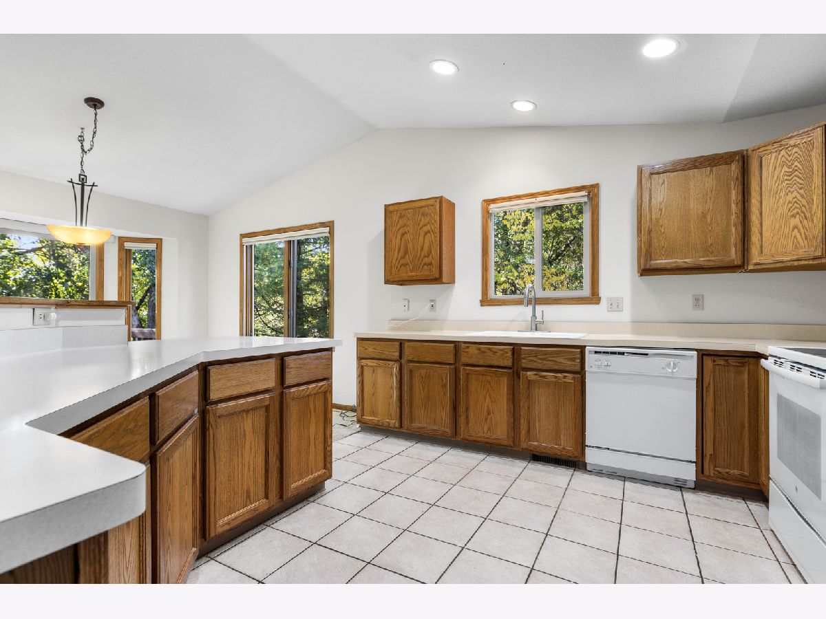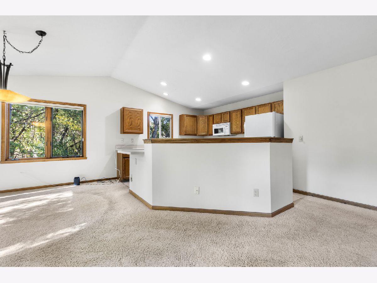 This charming ranch-style condo, situated at the end, offers privacy with beautiful trees and abundant wildlife. Featuring a vaulted ceiling and cozy fireplace, the open-concept living room flows into the kitchen and dining area, with access to a serene deck through sliding glass doors overlooking a peaceful wooded area. The main floor boasts a spacious master suite with a large walk-in closet, a second bedroom, second full bath and convenient laundry. The partially exposed basement provides natural light and includes a second master bedroom with an updated bathroom and expansive living space that could be used for a multitude of things. Brand new kitchen appliances, new washer/dryer, new roof and 2-car garage complete this must-see home. Endless possibilities await!