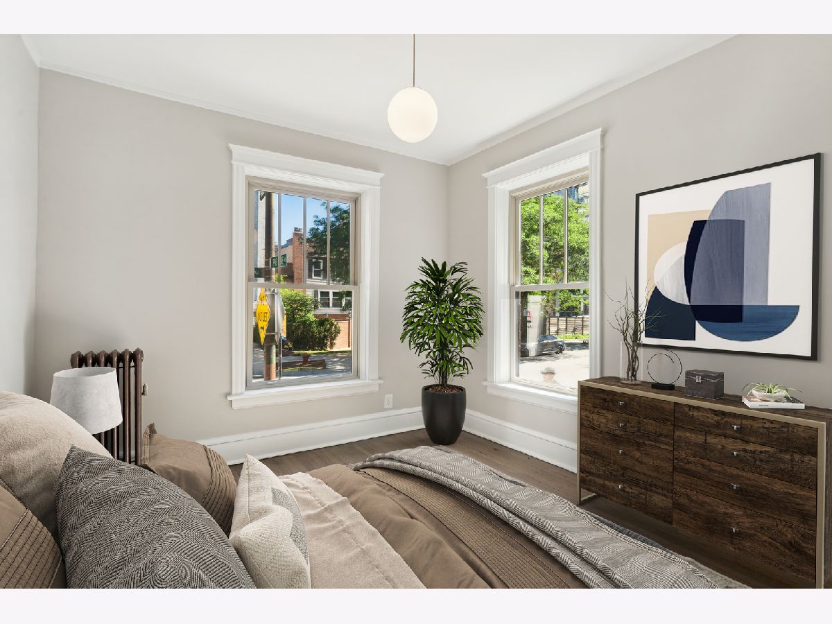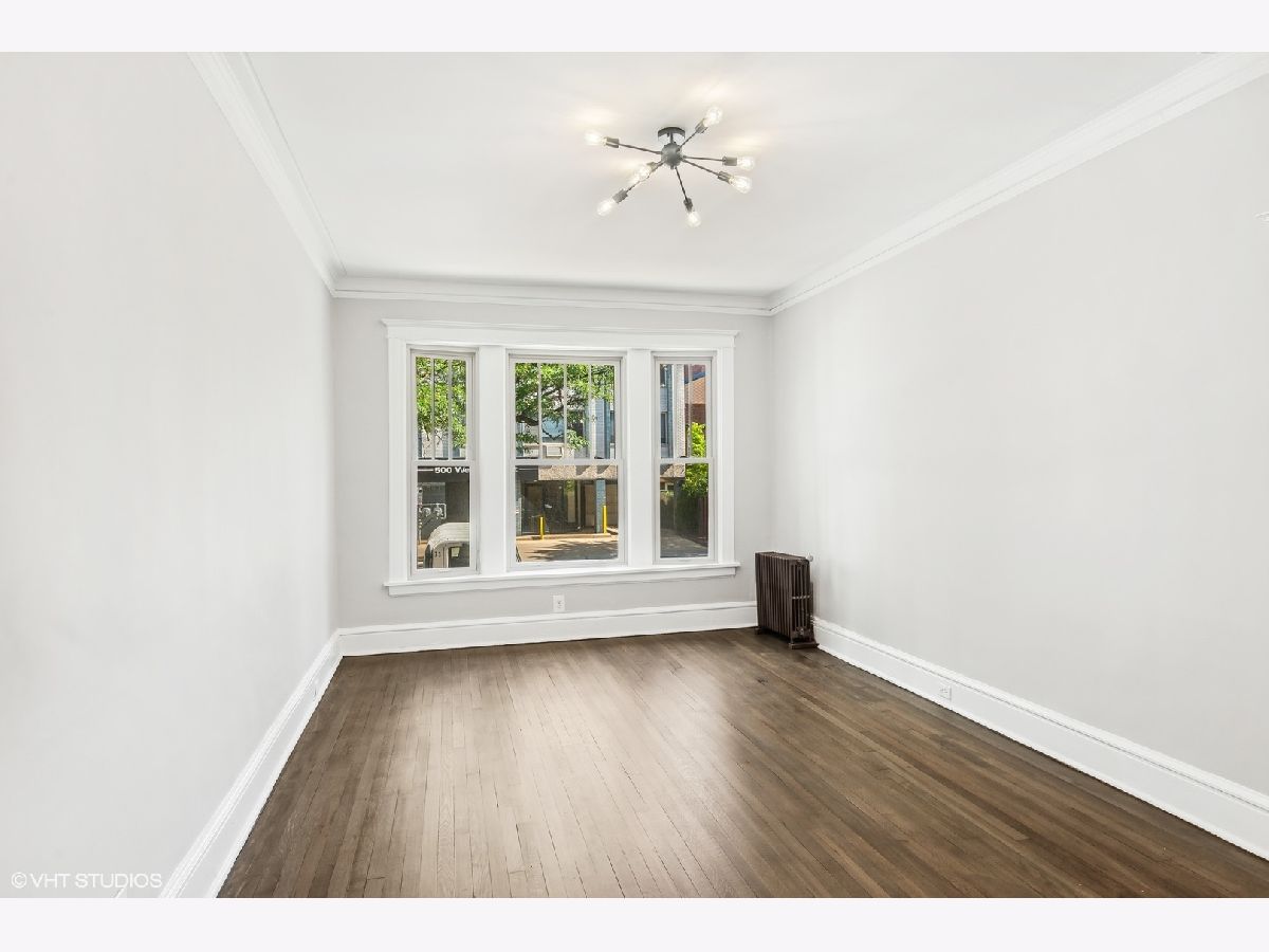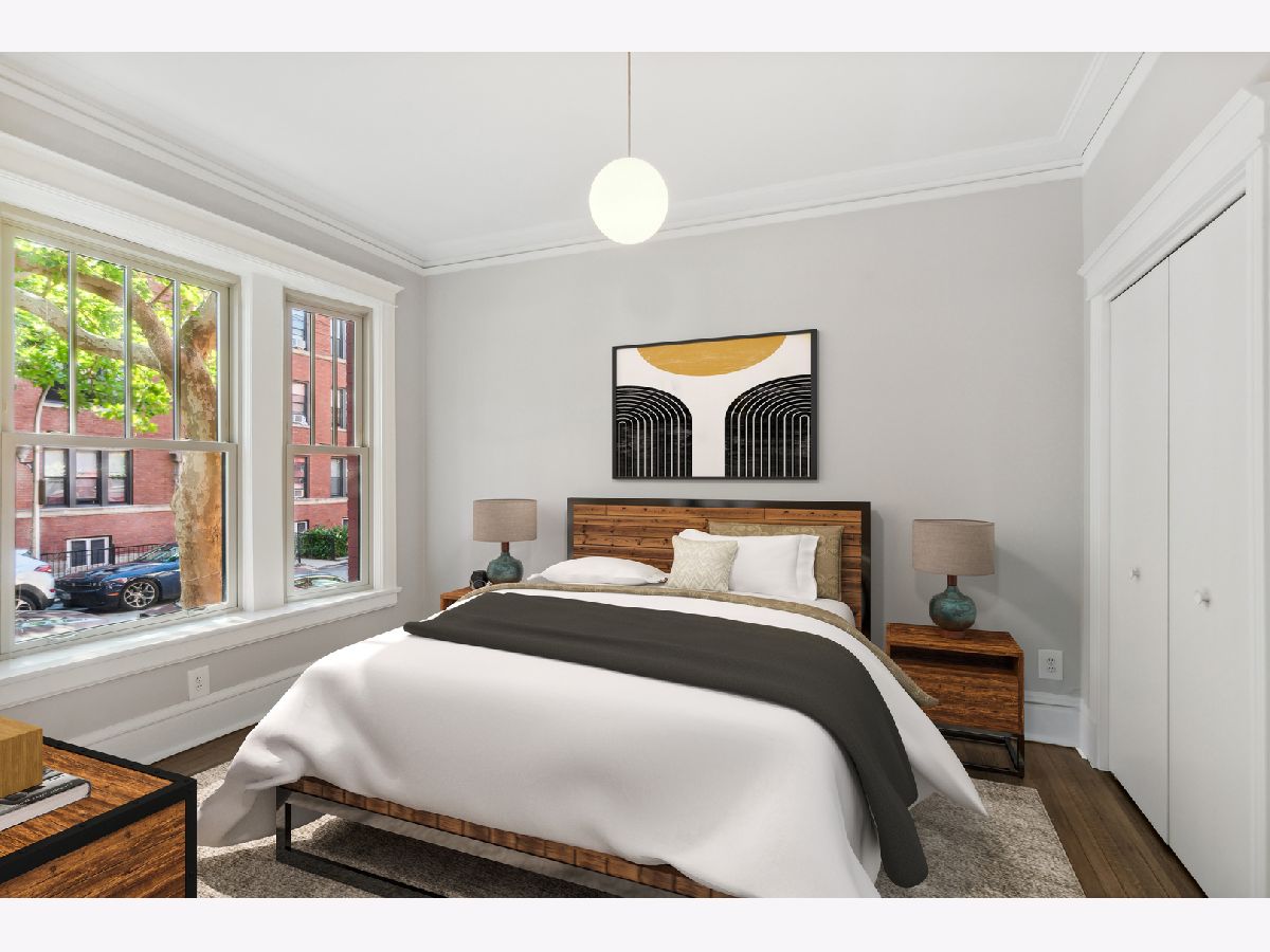 Just rehabbed! Everything is NEW - largest unit in the building. Bright corner 2 Bedroom, 1 Bath condo with private deck in East Lakeview. Vintage condo features natural light, crown molding, original hardwood floors (just refinished) and high ceilings. Updated Kitchen with all new stainless appliances and table space. Large Living room/ Dining room. Spacious Primary Bedroom with Bay window and double closet. Large Second Bedroom with walk-in closet. Charming bath with white subway tile, new vanity, toilet, mirror and lighting. Private back deck plus charming courtyard with grills, tables and heaters. Easy to add laundry and central air. Full storage (9 x 4) in the basement adjacent to laundry room and bike storage. Windows 6 years old. New Boiler. Steps away from Lakeview shops, night life, restaurants and Marianos. 2 blocks to the Lake. Nettlehorst Elementary School District. No rental cap.