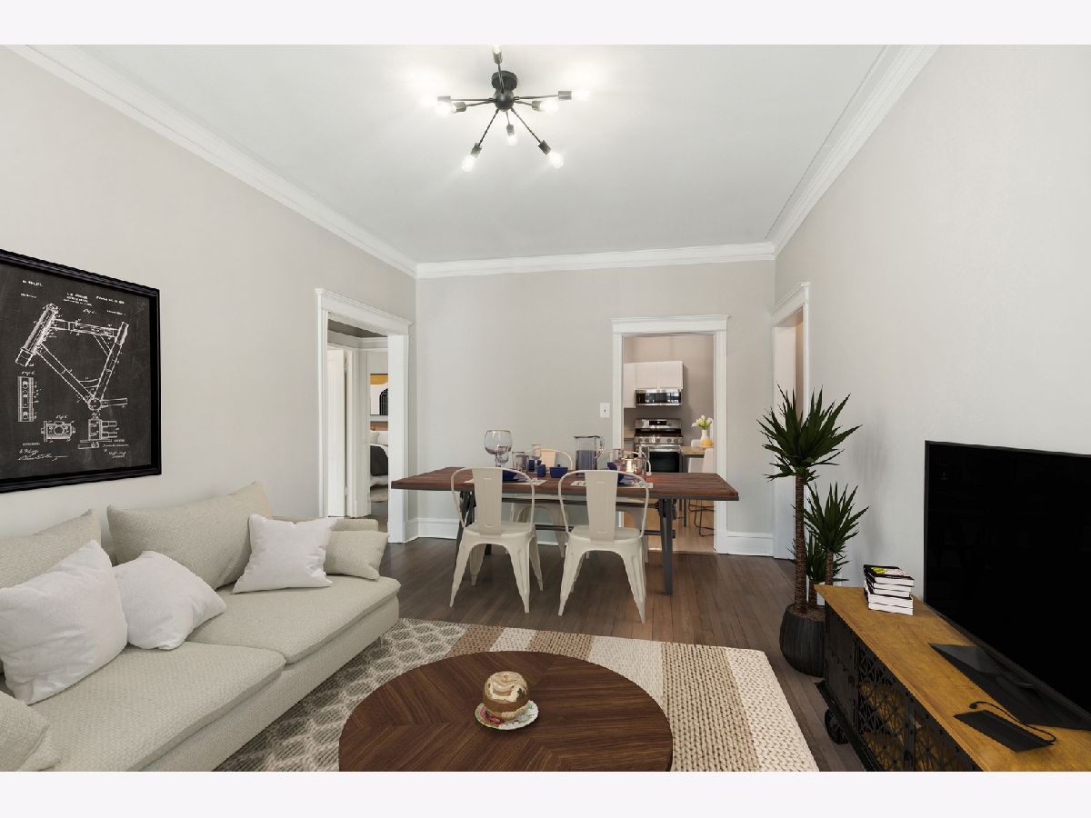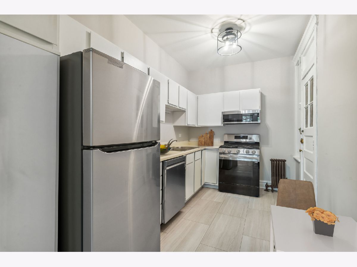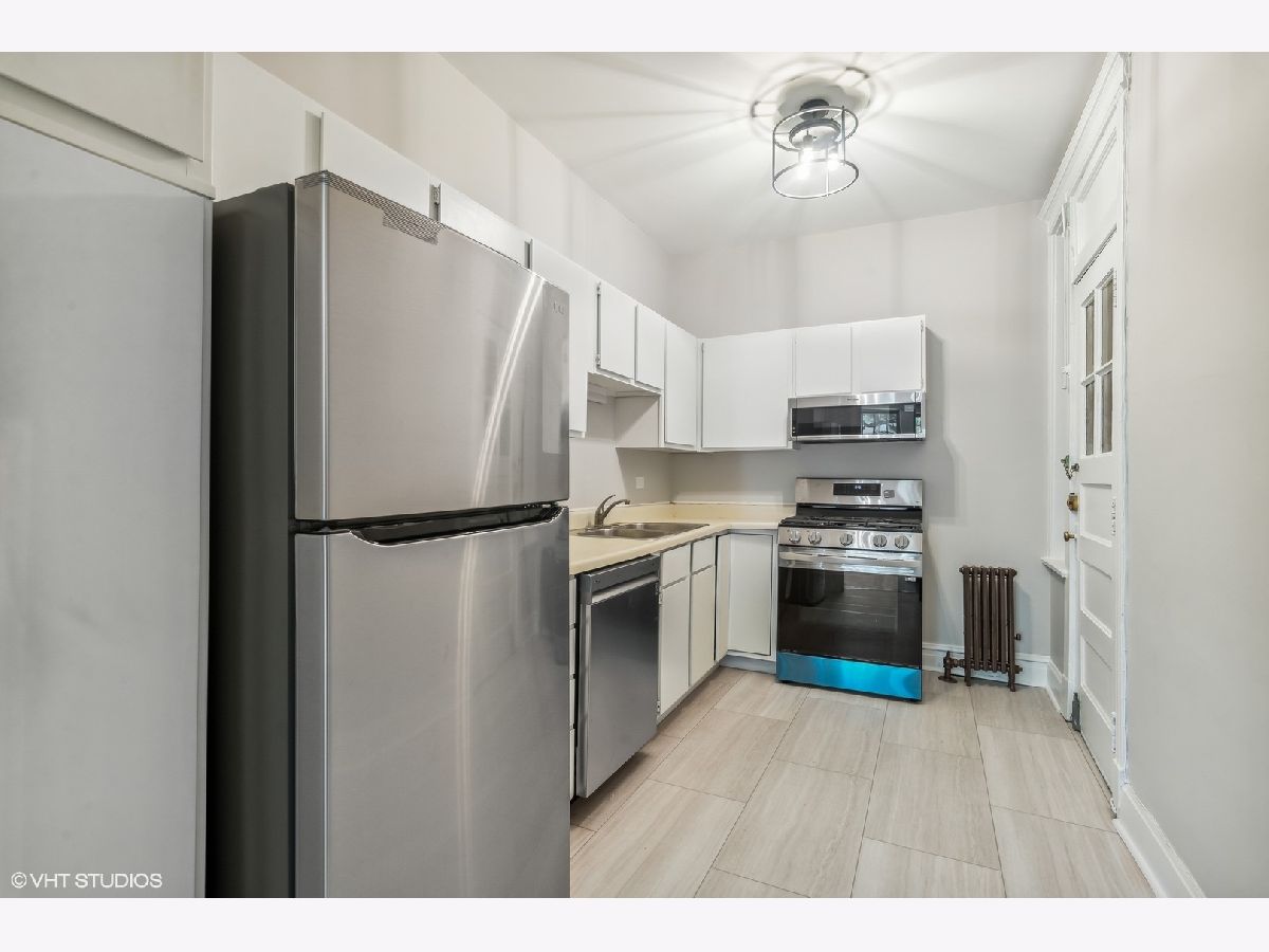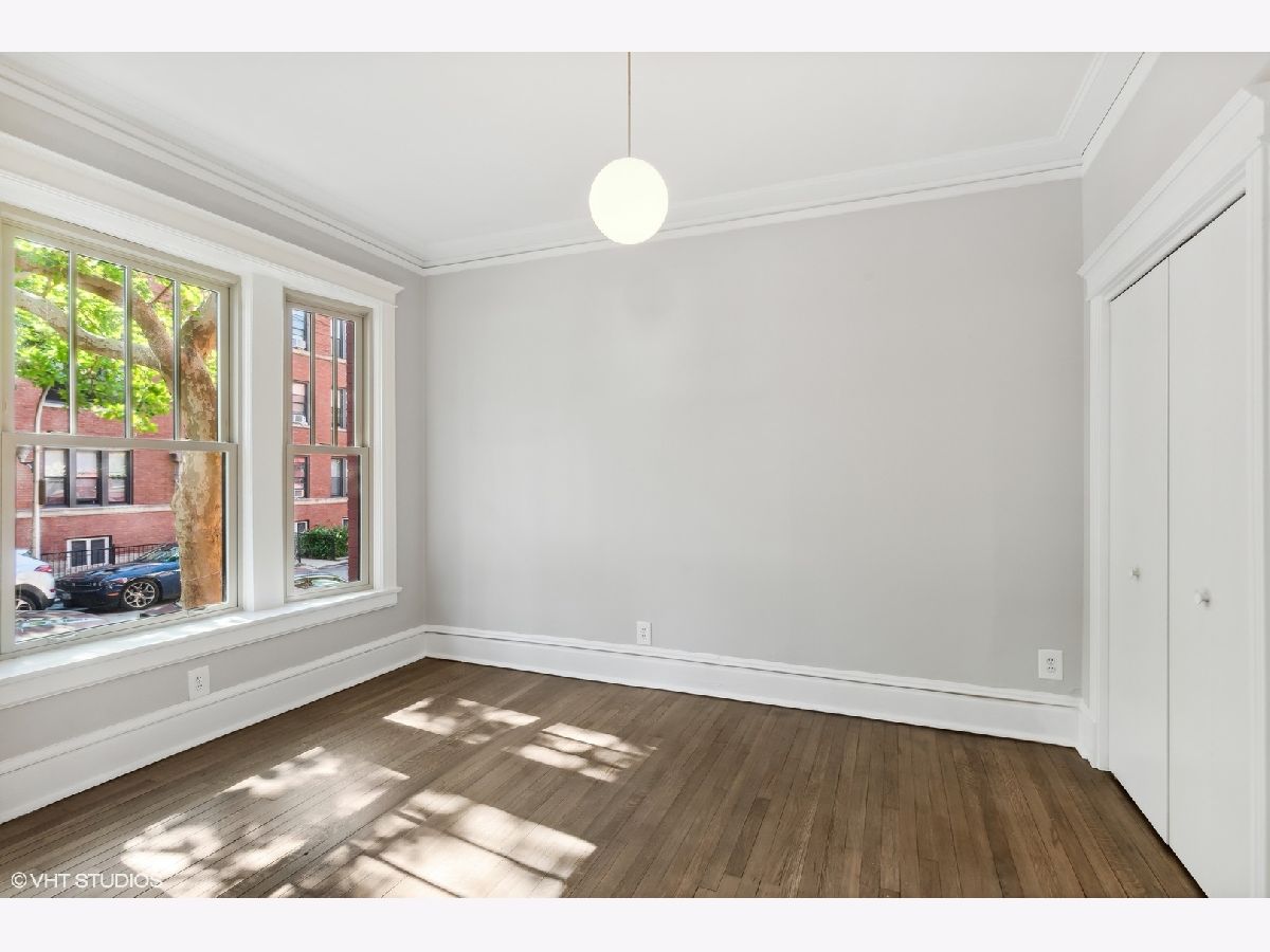 Just rehabbed! Everything is NEW - largest unit in the building. Bright corner 2 Bedroom, 1 Bath condo with private deck in East Lakeview. Vintage condo features natural light, crown molding, original hardwood floors (just refinished) and high ceilings. Updated Kitchen with all new stainless appliances and table space. Large Living room/ Dining room. Spacious Primary Bedroom with Bay window and double closet. Large Second Bedroom with walk-in closet. Charming bath with white subway tile, new vanity, toilet, mirror and lighting. Private back deck plus charming courtyard with grills, tables and heaters. Easy to add laundry and central air. Full storage (9 x 4) in the basement adjacent to laundry room and bike storage. Windows 6 years old. New Boiler. Steps away from Lakeview shops, night life, restaurants and Marianos. 2 blocks to the Lake. Nettlehorst Elementary School District. No rental cap.