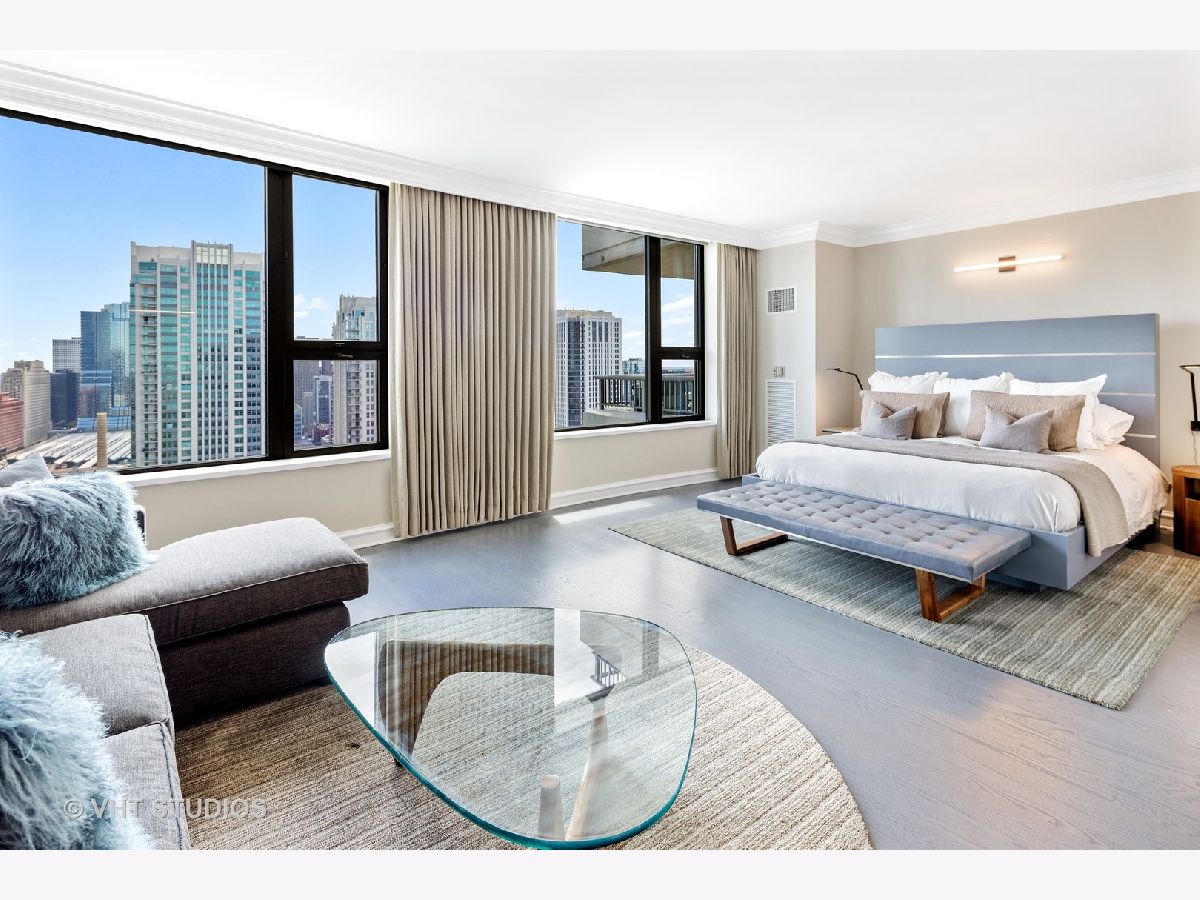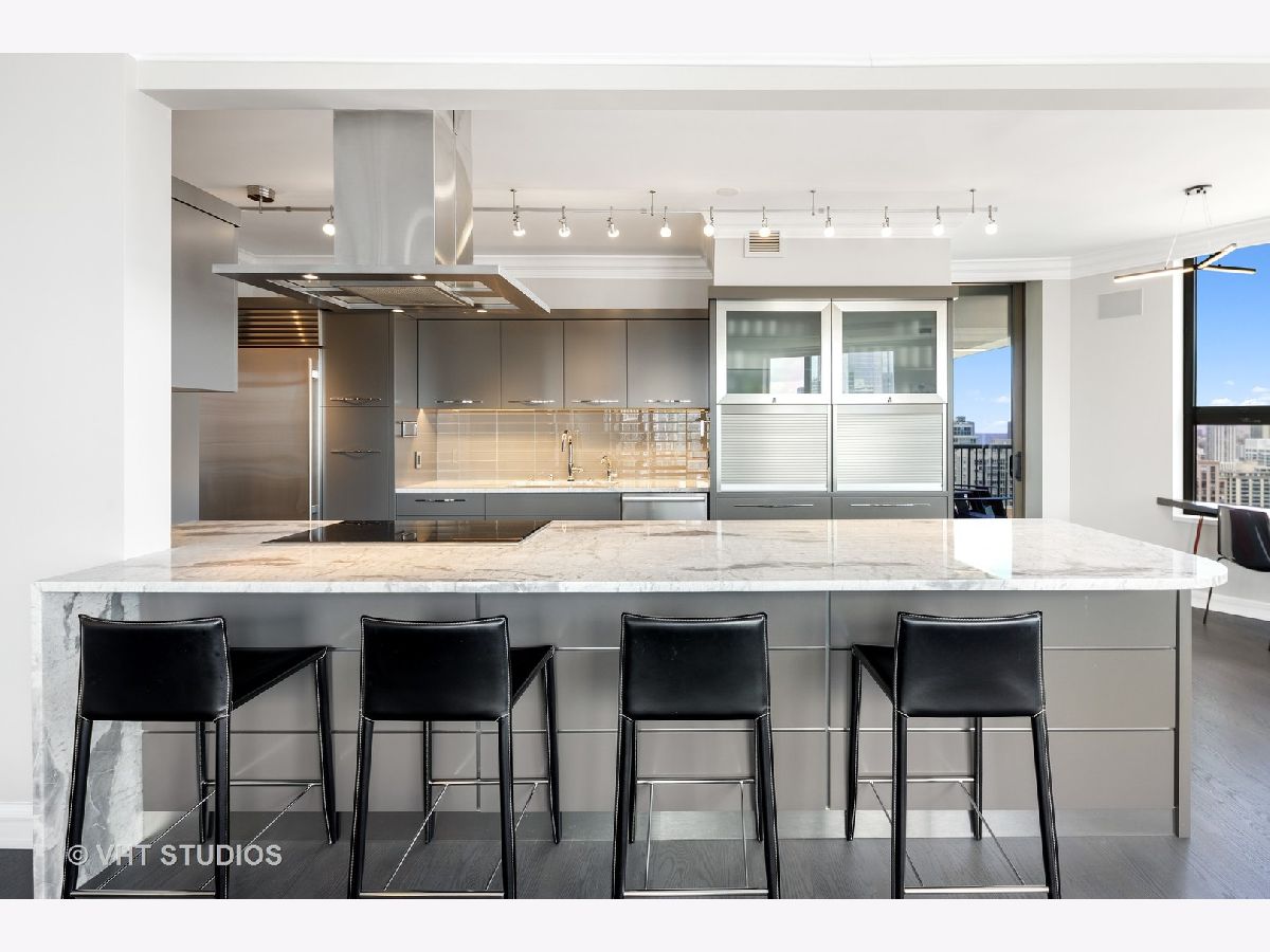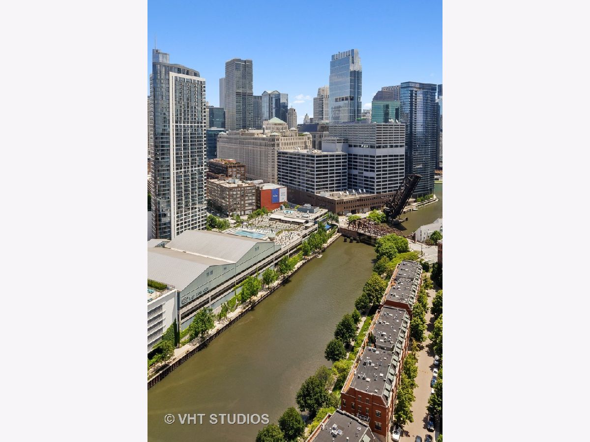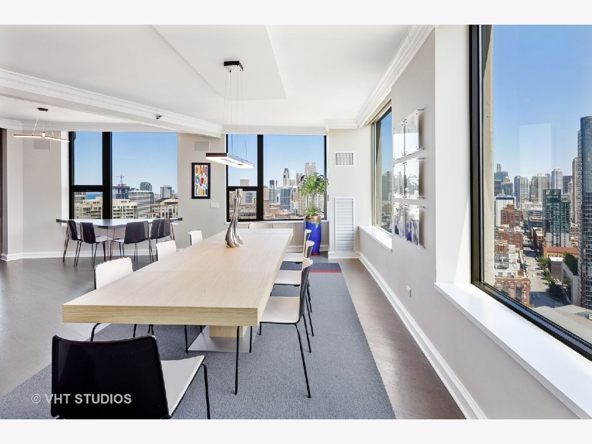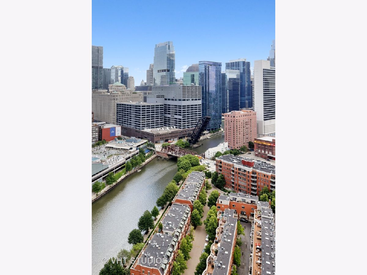 Amazing gut-rehab of the best floor plan at 501 North Clinton!! Welcome to unit 3003. This sprawling three-bedroom three-bath unit will simply take your breath away as it's totally unobstructed views east and south capture the majesty of Chicago from sunrise to sunset. Enter and be welcomed by a mind-blowing 43-foot-long wall of windows and equally long room encompassing a huge great room and dining room ~ perfect for entertaining. This total renovation includes oak hardwood flooring throughout, 7 inch two-stage crown molding, custom window treatments with Lutron automation and Control 4 home automation. The kitchen has been opened-up allowing for a seamless connection it to the entire living room and dining room area. Kitchen features Woodface brand custom cabinets Wolfe, Miele and Subzero appliances, stone counters, extensive custom cabinetry with multiple appliance garages and an array custom lighting. A custom-made table has been fabricated to create an awesome window-side eat-in area... that perfectly frames the John Hancock in your view. Retire to the main suite and again you will be amazed! This 23-foot-long room features a formal lounge area with plenty of room for couch and coffee table; also includes TV and in-wall speakers, custom blinds and enormous his and her closets with custom built-ins. The lavish main bath awaits you with Woodface custom cabinetry, 12" x 24" porcelain flooring and tub/shower surrounds, a jet bath tub with custom designed tub deck, and natural stone countertops with vessel sinks. The second bedroom features custom closets, mounted TV, and sliding door direct access to an east-facing deck. Its en-suite bathroom includes porcelain tile flooring and shower surround, custom cabinetry and natural stone countertops. Bedroom three features phenomenal southern views and custom-made furniture outfitting it perfectly as an office or bedroom. Other features of this home include custom lighting for featured wall art, solar blinds, black out blinds and draperies (in select rooms), generous entry closet and storage, linen closet, laundry room with high-end Maytag side-by-side washer and dryer. Round it all out with one-car garage parking (second space additional $40,000) and rarely available second storage room ($15,000). [Of note, the parking and storage units are all on the same level and just steps from each other] The Kinzie Park community offers 24 hour security gate and door staff, free guest parking, oversized pool deck, fully equipped fitness center, hospitality room, bike storage, dry cleaners, on-site management/maintenance, picturesque tree-lined grounds, private dog park, and access to the Riverwalk. In addition, this home is located steps to the hottest restaurants in town along famed Fulton and Randolph street, East Bank Club, 6-minute walk to the Loop, and easy access to all highways! This is quite possibly the perfect River North condo.