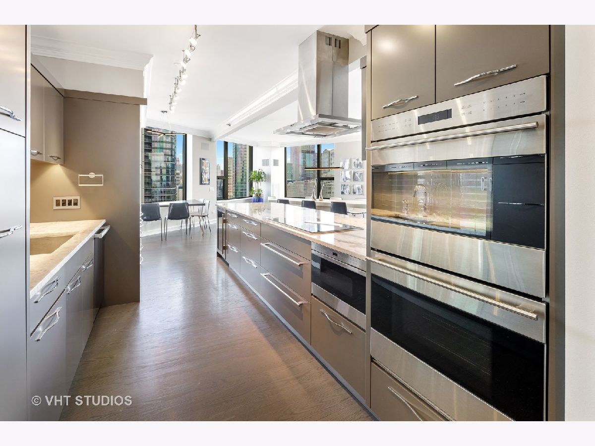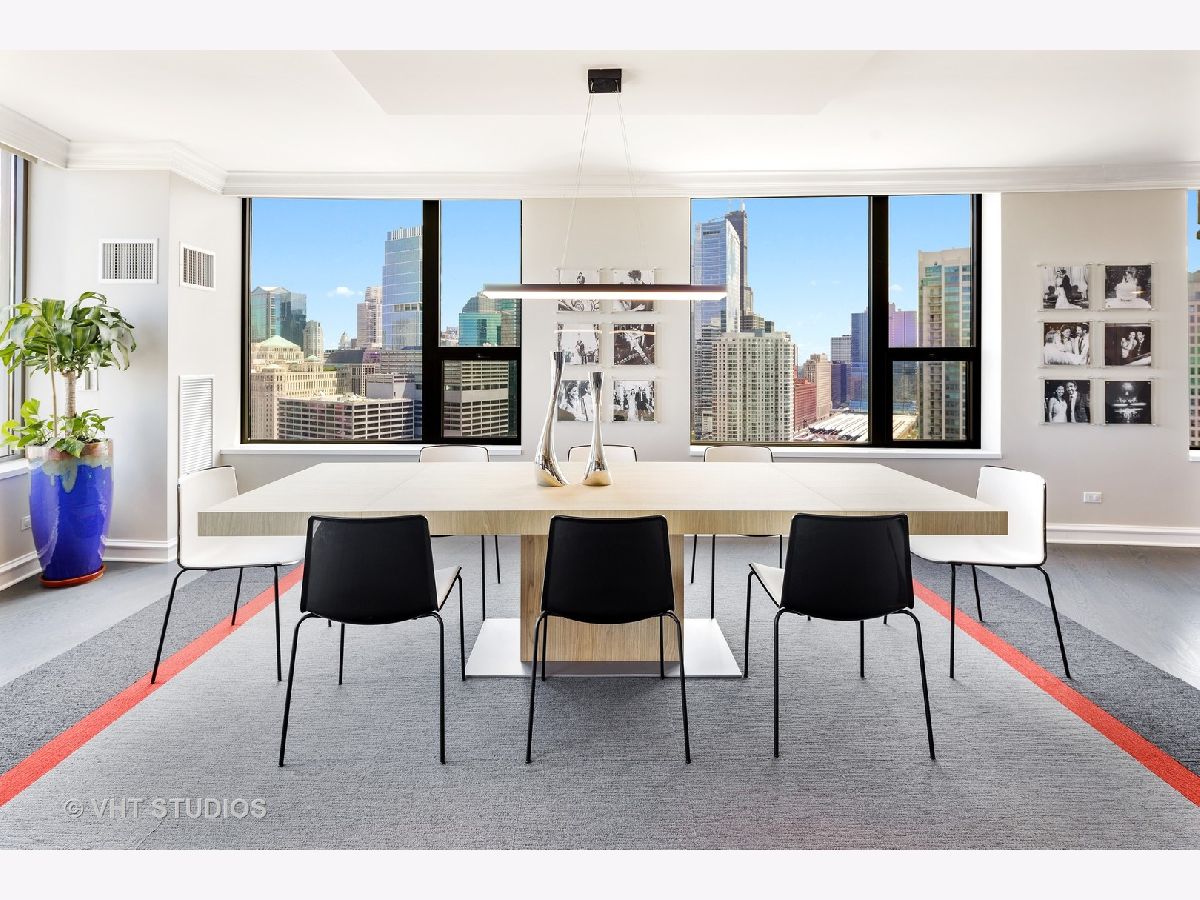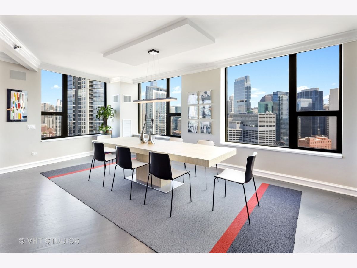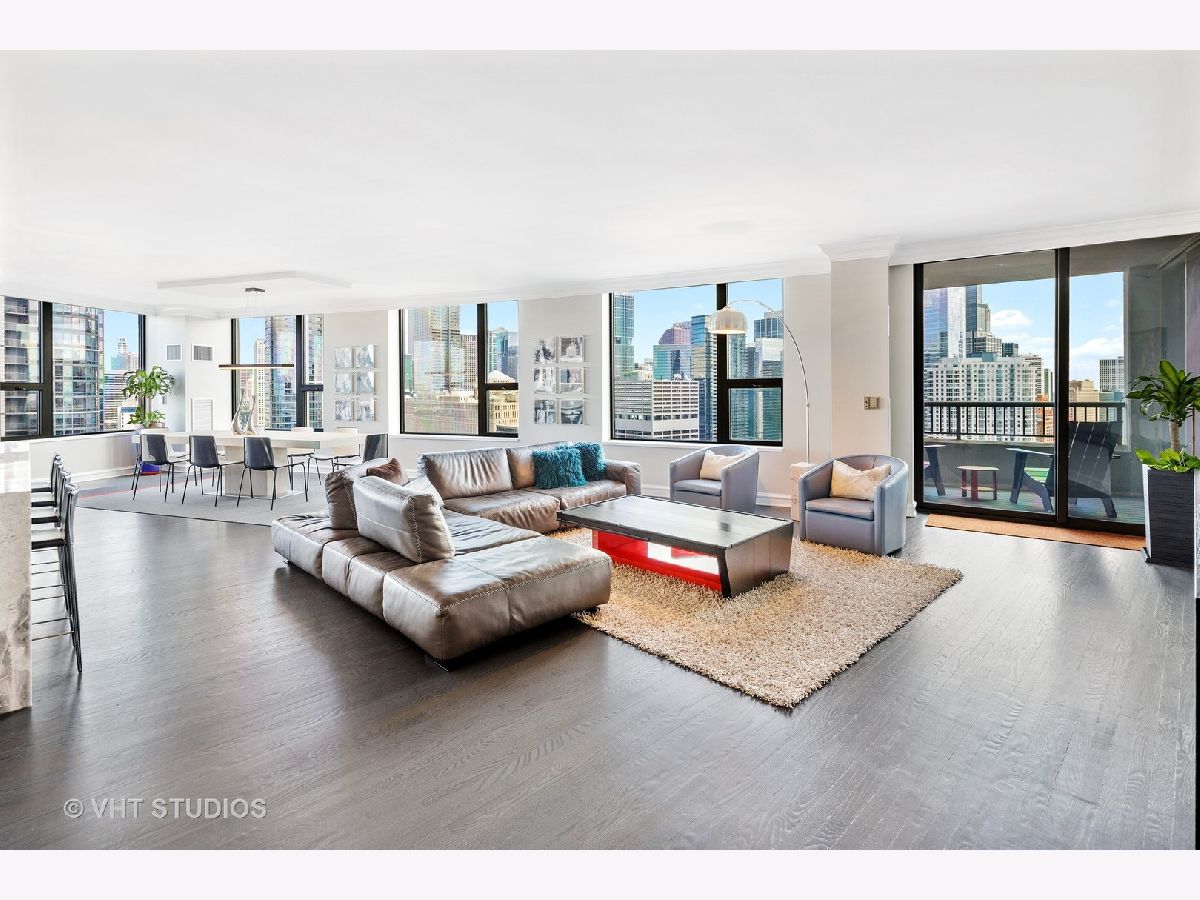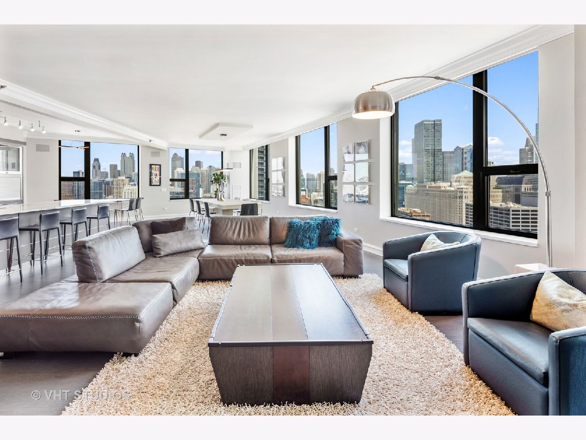 Amazing gut-rehab of the best floor plan at 501 North Clinton!! Welcome to unit 3003. This sprawling three-bedroom three-bath unit will simply take your breath away as it's totally unobstructed views east and south capture the majesty of Chicago from sunrise to sunset. Enter and be welcomed by a mind-blowing 43-foot-long wall of windows and equally long room encompassing a huge great room and dining room ~ perfect for entertaining. This total renovation includes oak hardwood flooring throughout, 7 inch two-stage crown molding, custom window treatments with Lutron automation and Control 4 home automation. The kitchen has been opened-up allowing for a seamless connection it to the entire living room and dining room area. Kitchen features Woodface brand custom cabinets Wolfe, Miele and Subzero appliances, stone counters, extensive custom cabinetry with multiple appliance garages and an array custom lighting. A custom-made table has been fabricated to create an awesome window-side eat-in area... that perfectly frames the John Hancock in your view. Retire to the main suite and again you will be amazed! This 23-foot-long room features a formal lounge area with plenty of room for couch and coffee table; also includes TV and in-wall speakers, custom blinds and enormous his and her closets with custom built-ins. The lavish main bath awaits you with Woodface custom cabinetry, 12" x 24" porcelain flooring and tub/shower surrounds, a jet bath tub with custom designed tub deck, and natural stone countertops with vessel sinks. The second bedroom features custom closets, mounted TV, and sliding door direct access to an east-facing deck. Its en-suite bathroom includes porcelain tile flooring and shower surround, custom cabinetry and natural stone countertops. Bedroom three features phenomenal southern views and custom-made furniture outfitting it perfectly as an office or bedroom. Other features of this home include custom lighting for featured wall art, solar blinds, black out blinds and draperies (in select rooms), generous entry closet and storage, linen closet, laundry room with high-end Maytag side-by-side washer and dryer. Round it all out with one-car garage parking (second space additional $40,000) and rarely available second storage room ($15,000). [Of note, the parking and storage units are all on the same level and just steps from each other] The Kinzie Park community offers 24 hour security gate and door staff, free guest parking, oversized pool deck, fully equipped fitness center, hospitality room, bike storage, dry cleaners, on-site management/maintenance, picturesque tree-lined grounds, private dog park, and access to the Riverwalk. In addition, this home is located steps to the hottest restaurants in town along famed Fulton and Randolph street, East Bank Club, 6-minute walk to the Loop, and easy access to all highways! This is quite possibly the perfect River North condo.