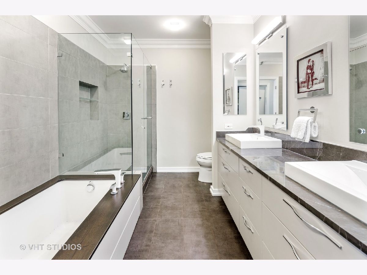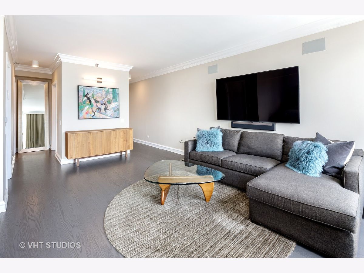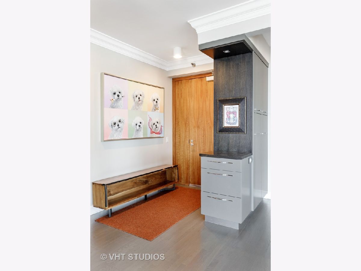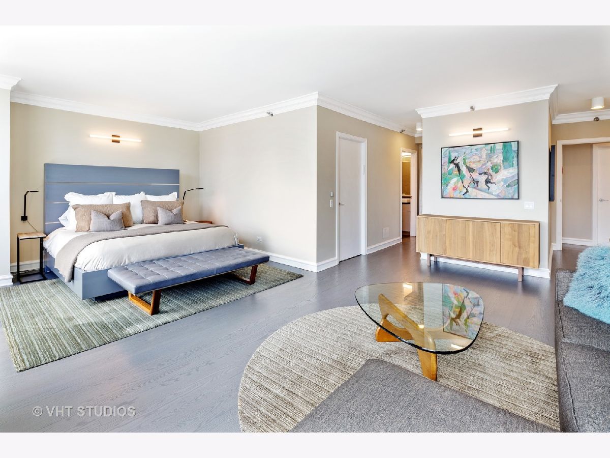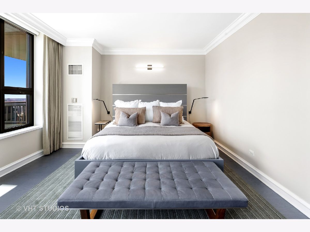 Amazing gut-rehab of the best floor plan at 501 North Clinton!! Welcome to unit 3003. This sprawling three-bedroom three-bath unit will simply take your breath away as it's totally unobstructed views east and south capture the majesty of Chicago from sunrise to sunset. Enter and be welcomed by a mind-blowing 43-foot-long wall of windows and equally long room encompassing a huge great room and dining room ~ perfect for entertaining. This total renovation includes oak hardwood flooring throughout, 7 inch two-stage crown molding, custom window treatments with Lutron automation and Control 4 home automation. The kitchen has been opened-up allowing for a seamless connection it to the entire living room and dining room area. Kitchen features Woodface brand custom cabinets Wolfe, Miele and Subzero appliances, stone counters, extensive custom cabinetry with multiple appliance garages and an array custom lighting. A custom-made table has been fabricated to create an awesome window-side eat-in area... that perfectly frames the John Hancock in your view. Retire to the main suite and again you will be amazed! This 23-foot-long room features a formal lounge area with plenty of room for couch and coffee table; also includes TV and in-wall speakers, custom blinds and enormous his and her closets with custom built-ins. The lavish main bath awaits you with Woodface custom cabinetry, 12" x 24" porcelain flooring and tub/shower surrounds, a jet bath tub with custom designed tub deck, and natural stone countertops with vessel sinks. The second bedroom features custom closets, mounted TV, and sliding door direct access to an east-facing deck. Its en-suite bathroom includes porcelain tile flooring and shower surround, custom cabinetry and natural stone countertops. Bedroom three features phenomenal southern views and custom-made furniture outfitting it perfectly as an office or bedroom. Other features of this home include custom lighting for featured wall art, solar blinds, black out blinds and draperies (in select rooms), generous entry closet and storage, linen closet, laundry room with high-end Maytag side-by-side washer and dryer. Round it all out with one-car garage parking (second space additional $40,000) and rarely available second storage room ($15,000). [Of note, the parking and storage units are all on the same level and just steps from each other] The Kinzie Park community offers 24 hour security gate and door staff, free guest parking, oversized pool deck, fully equipped fitness center, hospitality room, bike storage, dry cleaners, on-site management/maintenance, picturesque tree-lined grounds, private dog park, and access to the Riverwalk. In addition, this home is located steps to the hottest restaurants in town along famed Fulton and Randolph street, East Bank Club, 6-minute walk to the Loop, and easy access to all highways! This is quite possibly the perfect River North condo.