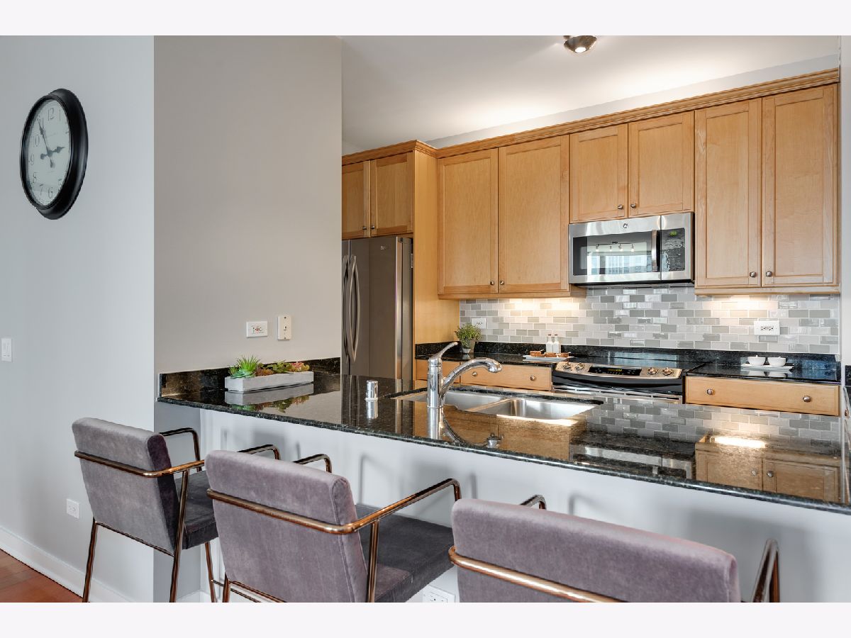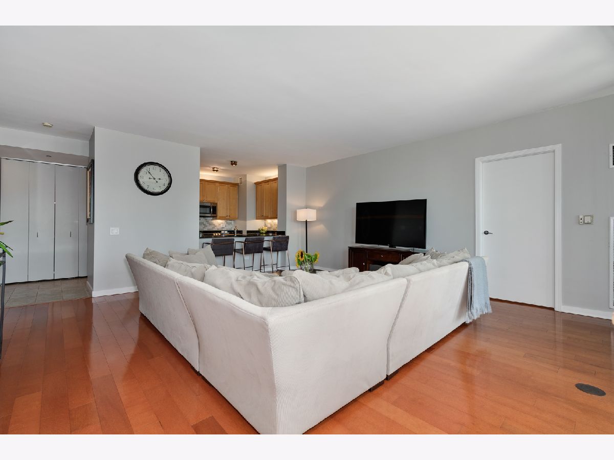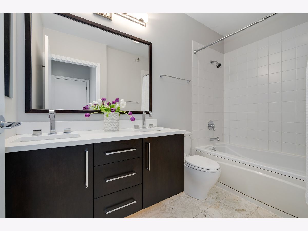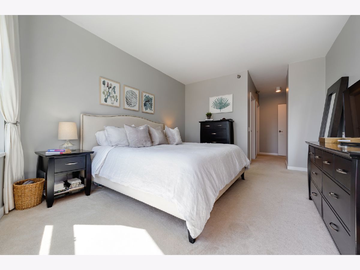 Southern skyline views from floor to ceiling windows allow for an abundance of natural light in this beautifully renovated 2 bedroom home in gated Kinzie Park Tower. The kitchen has been opened up, allowing for a seamless connection to the bright and open living and dining rooms with gorgeous hardwood floors. The kitchen features newer stainless steel appliances, abundant storage, and bar seating. A desired southern facing balcony off the living/dining area is perfect for grilling and al fresco dining while taking in the stunning views of the Loop and city skyline. The primary bedroom features a walk-in closet and remodeled ensuite bath with new double vanity. The graciously sized second bedroom also boasts southern exposure, and the second full bathroom has also been remodeled, including a new vanity. Additional improvements include a new washer/dryer, wallpaper in the entryway, and fresh paint. 1 storage unit is included (on the same level as garage and just steps from each other.) The Kinzie Park community offers 24 hour security gate and door staff, free guest parking, oversized pool deck, fully equipped fitness center, hospitality room, bike storage, dry cleaners, on-site management/maintenance, picturesque tree-lined grounds, private dog park, and access to the Riverwalk. In addition, this home is located steps to the hottest restaurants in town along famed Fulton and Randolph street, East Bank Club, 6-minute walk to the Loop, and easy access to all highways! 1 garage space available for additional $35K. ***Enter at 400 N Clinton to check in at security gate house and obtain a free guest parking pass.