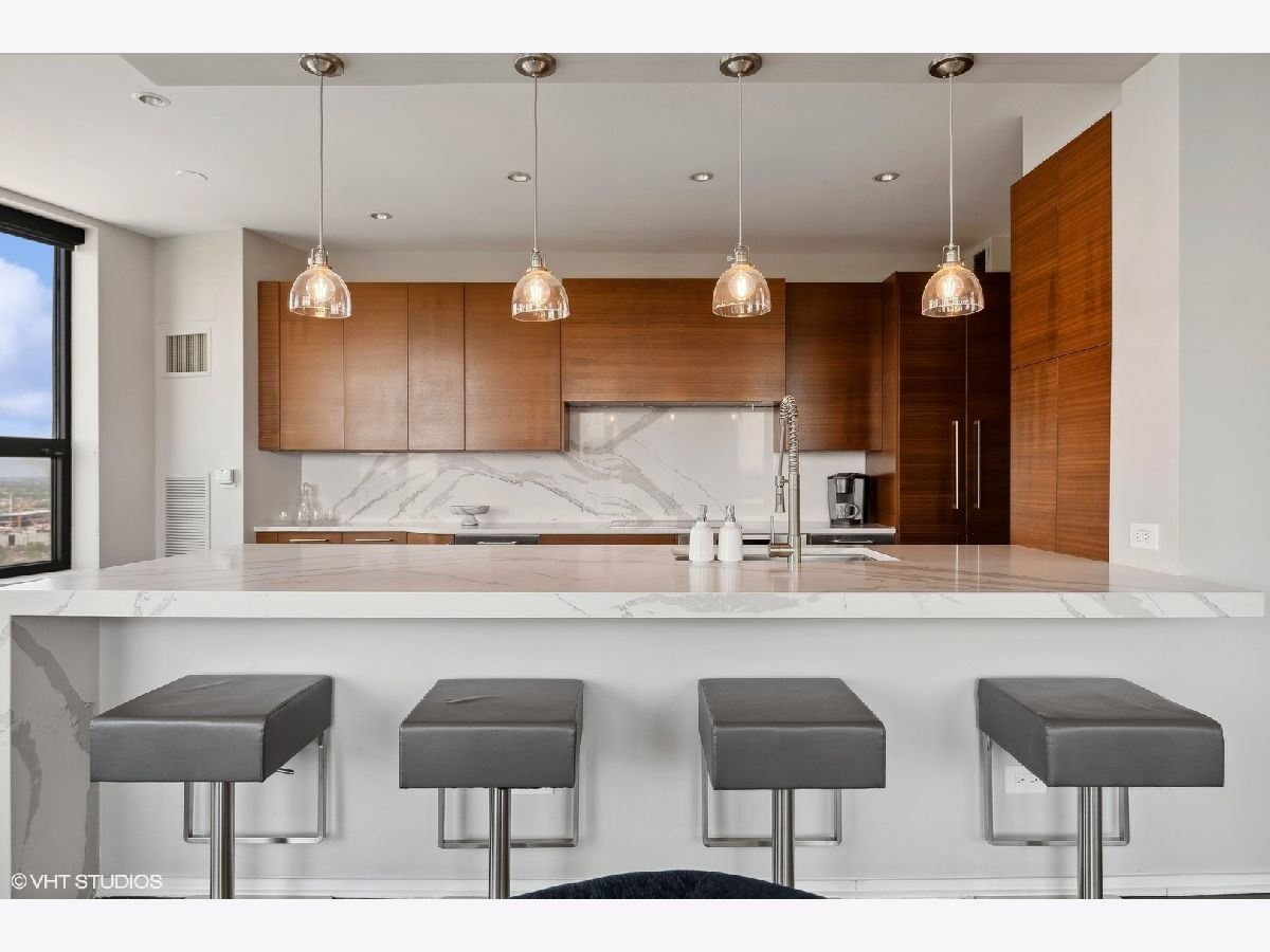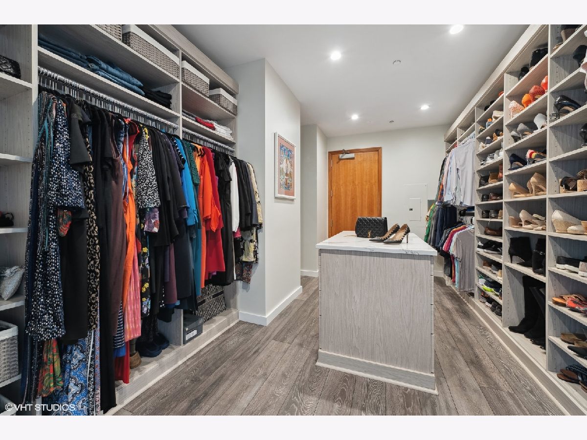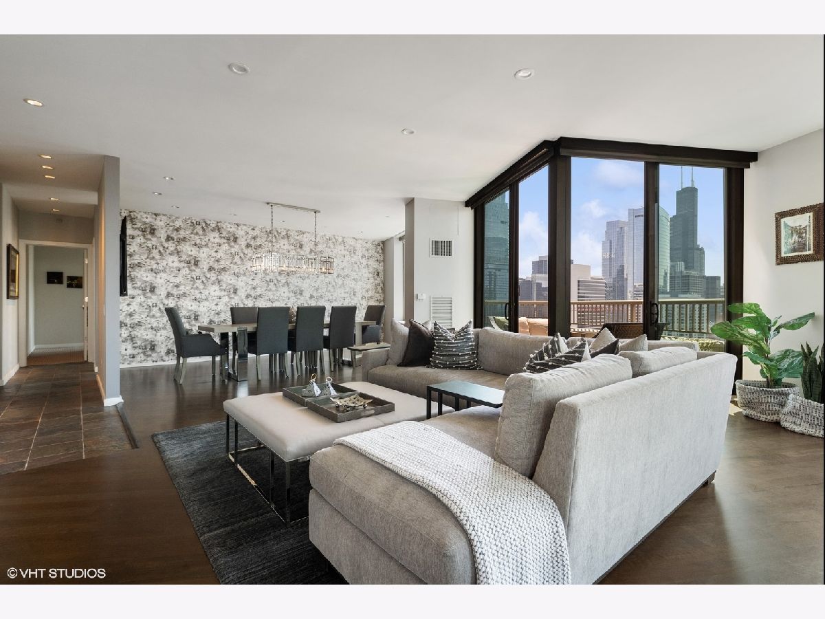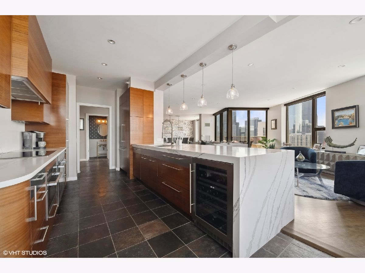 Welcome to the epitome of luxury living at 501 North Clinton in River North! This exceptional penthouse offers three-bedroom, three-bathroom condo has undergone a breathtaking gut-rehab, showcasing the best floor plan available. Prepare to be captivated by the exquisite renovations, including a stunning kitchen, hardwood flooring and smart lighting and window treatments with Lutron automation. This special home offers two generous sized balconies - one directly off the main living area and one off your primary suite. As you step inside, you'll be greeted by an abundance of natural light streaming through the expansive windows, offering panoramic views of Chicago from sunrise to sunset. The spacious great room and dining room create a seamless flow, making it an ideal space for entertaining guests. The kitchen has been thoughtfully opened and redesigned, providing unobstructed views and featuring custom cabinets, Gaggeneau, Miele, and Bosch appliances, stone waterfall counters, built-in under-counter wine center and pendant lighting. Retreat to the luxurious primary suite and be prepared to be amazed once again. Enjoy the private balcony in this 23-foot-long room that also boasts a cozy lounge area, perfect for relaxation, as well as a large professionally organized dream walk-in closet with center island. The ensuite main bath is a true sanctuary, complete with a double vanity, a soaking tub, and a separate shower. The second bedroom offers custom closets and a stylish en-suite bathroom with porcelain tile flooring, a custom cabinetry, and natural stone countertops. Meanwhile, the third bedroom delights with phenomenal southern views and ample closet space. This condo also offers additional features such as a generous entry closet, smartly redesigned laundry room with custom cabinetry and the convenience of an included two-car side-by-side garage parking and storage. Beyond the exceptional condo itself, Kinzie Park provides an unparalleled community experience in Chicago. With its high-rise and mid-rise towers, private streets with gated security, and a picturesque river walk, it is a true oasis. Residents enjoy a range of amenities, including 24-hour security gate and door staff, free guest parking, an oversized pool deck, a fully equipped fitness center, a hospitality room, bike storage, dry cleaners, on-site management/maintenance, lush tree-lined grounds, a private dog park, and direct access to the Riverwalk. The location of this home is unbeatable, being steps away from the hottest restaurants on famed Fulton and Randolph Streets, the renowned East Bank Club, a short 6-minute walk to the Loop, and easy access to all major highways. Indulge in the pinnacle of River North living with this exquisite condo at 501 North Clinton. It's an opportunity to embrace luxury, convenience, and an unparalleled lifestyle in the heart of Chicago.