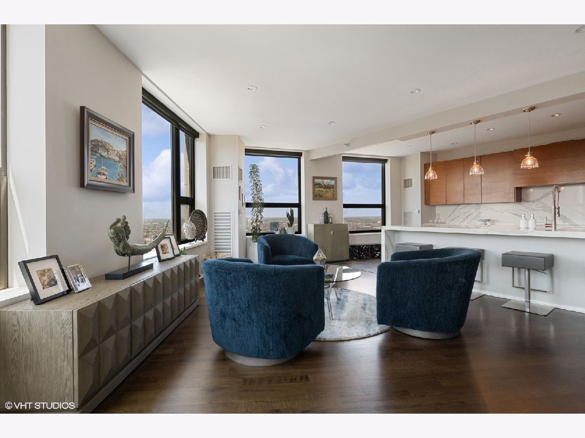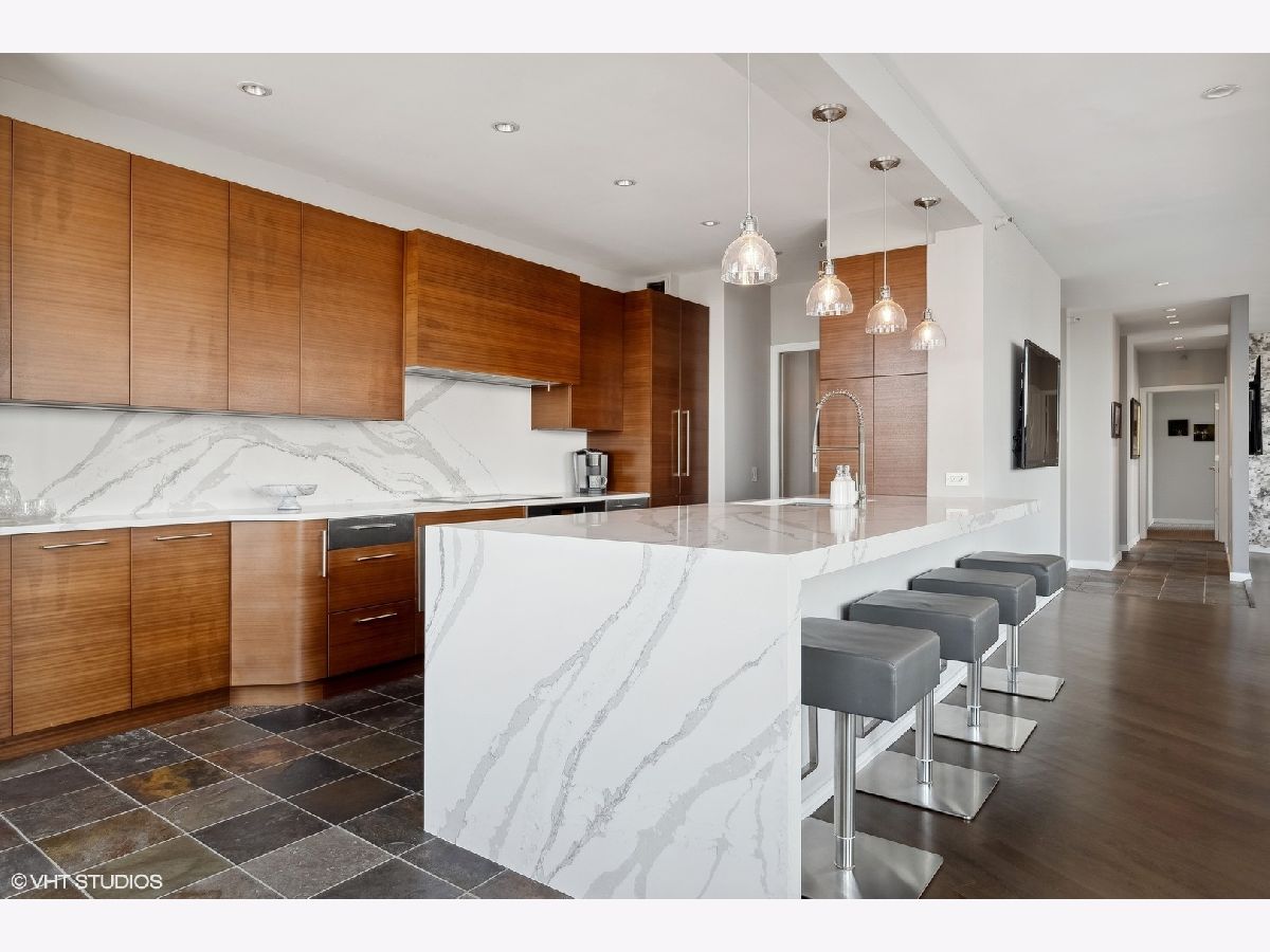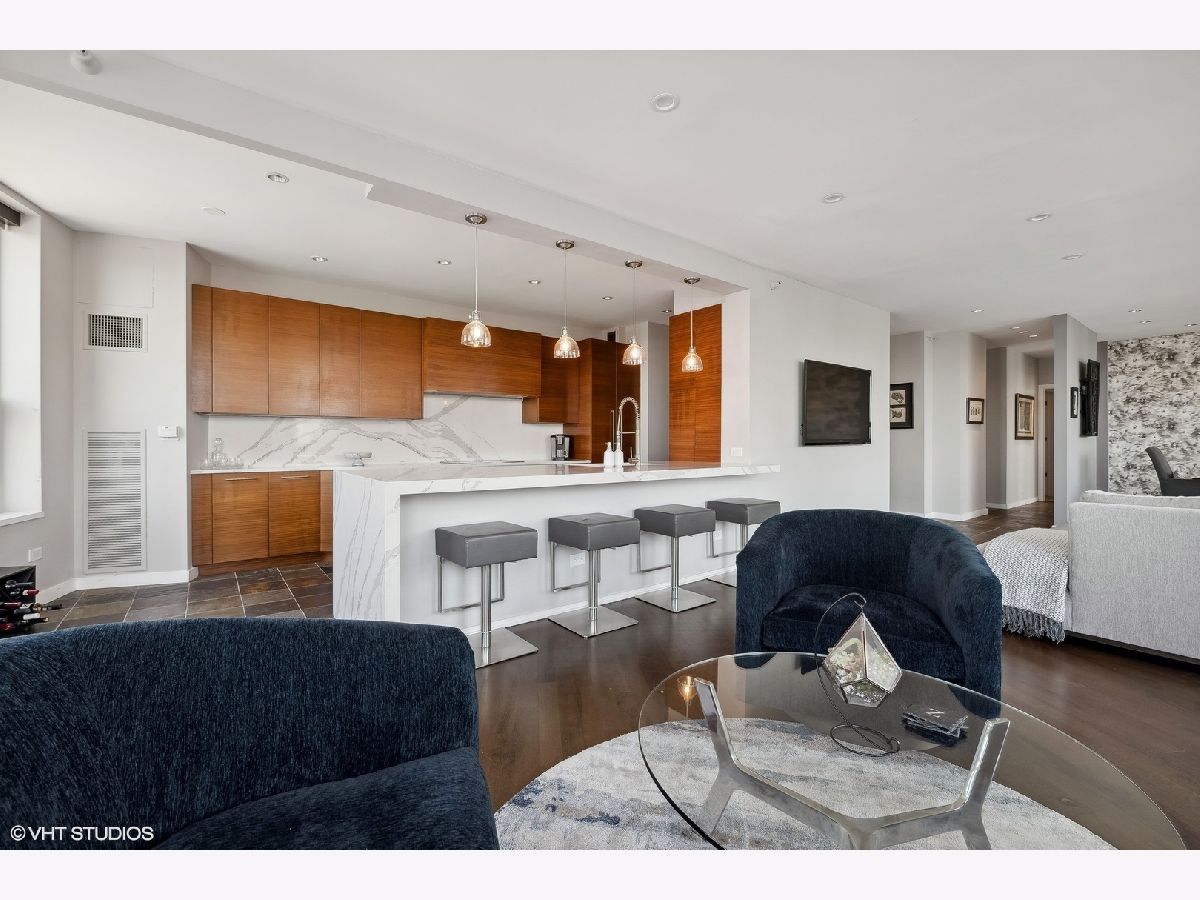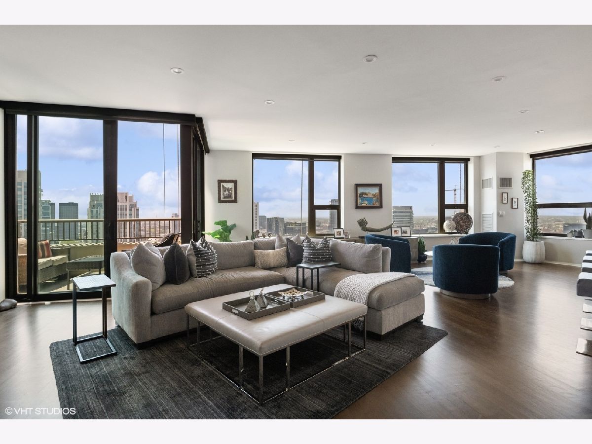 Welcome to the epitome of luxury living at 501 North Clinton in River North! This exceptional penthouse offers three-bedroom, three-bathroom condo has undergone a breathtaking gut-rehab, showcasing the best floor plan available. Prepare to be captivated by the exquisite renovations, including a stunning kitchen, hardwood flooring and smart lighting and window treatments with Lutron automation. This special home offers two generous sized balconies - one directly off the main living area and one off your primary suite. As you step inside, you'll be greeted by an abundance of natural light streaming through the expansive windows, offering panoramic views of Chicago from sunrise to sunset. The spacious great room and dining room create a seamless flow, making it an ideal space for entertaining guests. The kitchen has been thoughtfully opened and redesigned, providing unobstructed views and featuring custom cabinets, Gaggeneau, Miele, and Bosch appliances, stone waterfall counters, built-in under-counter wine center and pendant lighting. Retreat to the luxurious primary suite and be prepared to be amazed once again. Enjoy the private balcony in this 23-foot-long room that also boasts a cozy lounge area, perfect for relaxation, as well as a large professionally organized dream walk-in closet with center island. The ensuite main bath is a true sanctuary, complete with a double vanity, a soaking tub, and a separate shower. The second bedroom offers custom closets and a stylish en-suite bathroom with porcelain tile flooring, a custom cabinetry, and natural stone countertops. Meanwhile, the third bedroom delights with phenomenal southern views and ample closet space. This condo also offers additional features such as a generous entry closet, smartly redesigned laundry room with custom cabinetry and the convenience of an included two-car side-by-side garage parking and storage. Beyond the exceptional condo itself, Kinzie Park provides an unparalleled community experience in Chicago. With its high-rise and mid-rise towers, private streets with gated security, and a picturesque river walk, it is a true oasis. Residents enjoy a range of amenities, including 24-hour security gate and door staff, free guest parking, an oversized pool deck, a fully equipped fitness center, a hospitality room, bike storage, dry cleaners, on-site management/maintenance, lush tree-lined grounds, a private dog park, and direct access to the Riverwalk. The location of this home is unbeatable, being steps away from the hottest restaurants on famed Fulton and Randolph Streets, the renowned East Bank Club, a short 6-minute walk to the Loop, and easy access to all major highways. Indulge in the pinnacle of River North living with this exquisite condo at 501 North Clinton. It's an opportunity to embrace luxury, convenience, and an unparalleled lifestyle in the heart of Chicago.