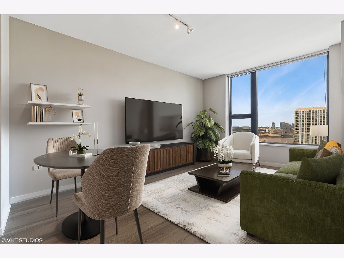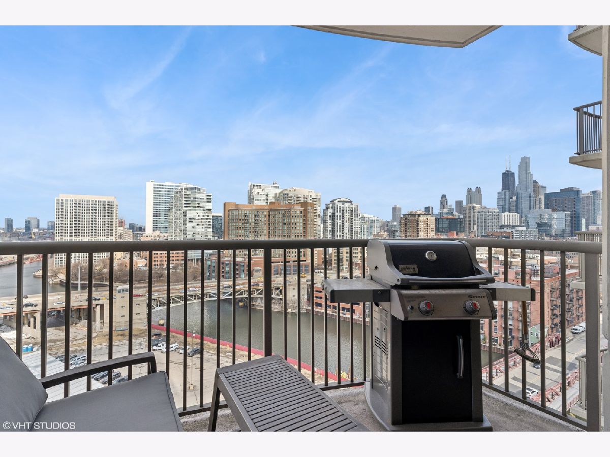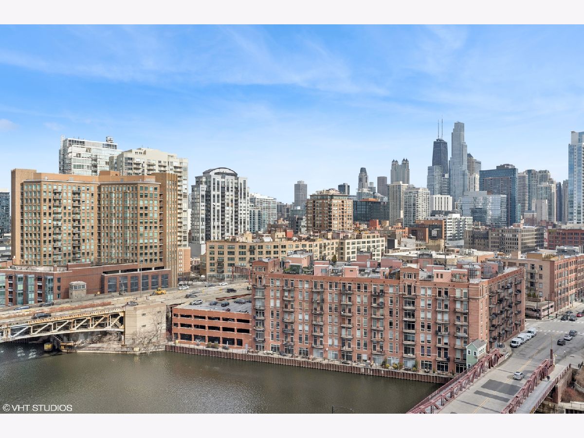 Welcome to this beautifully updated 1-bedroom home in the highly sought-after Kinzie Park Tower gated community, offering river views and an unbeatable location. Featuring newer luxury vinyl flooring throughout, you'll be greeted by a spacious foyer with ample hall storage, providing a warm and inviting first impression. The kitchen boasts 42 inch cabinetry, granite countertops, stainless steel appliances, and a large peninsula with a breakfast bar. The expansive living room boasts northeast views of the river, filling the space with natural light, and has ample room for a dining space. The bedroom is a generous soft loft space, with a massive walk-in closet, custom built out for optimal organization and storage. Step outside to your private balcony-ideal for grilling and enjoying the outdoors. In-unit laundry room with additional storage included. Kinzie Tower is a premier luxury building with unrivaled amenities including fitness center, outdoor pool and sundeck with grills, dry cleaners, 24 hr door staff, private river access, free guest parking and a lovely social room for hosting. Just steps from the Blue line, Jewel Osco, East Bank Club, restaurants and shopping in both River West and West Loop, the location can't be beat! Full size storage locker is included and a heated garage parking space available for 30k.
