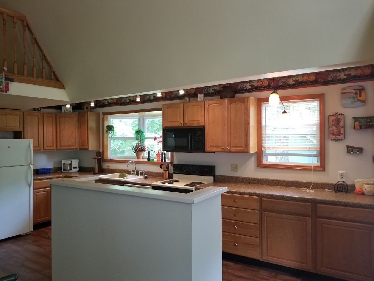 A wonderful customized home nestled in the woods with seasonal lake views. Three bedrooms, cozy loft, 2 baths, great room concept with newer kitchen, flooring, sliders to large front deck, smaller deck off master bedroom suite, wood burner in great room & 2 furnaces & 2 C/A for efficiency, newer vinyl tip out windows, vaulted ceilings, skylight, 20' x 13' enclosed porch, & oversized 2 car garage built in 2008. Appliances included. New roofs-Sept. 2017. Gorgeous Home!!!