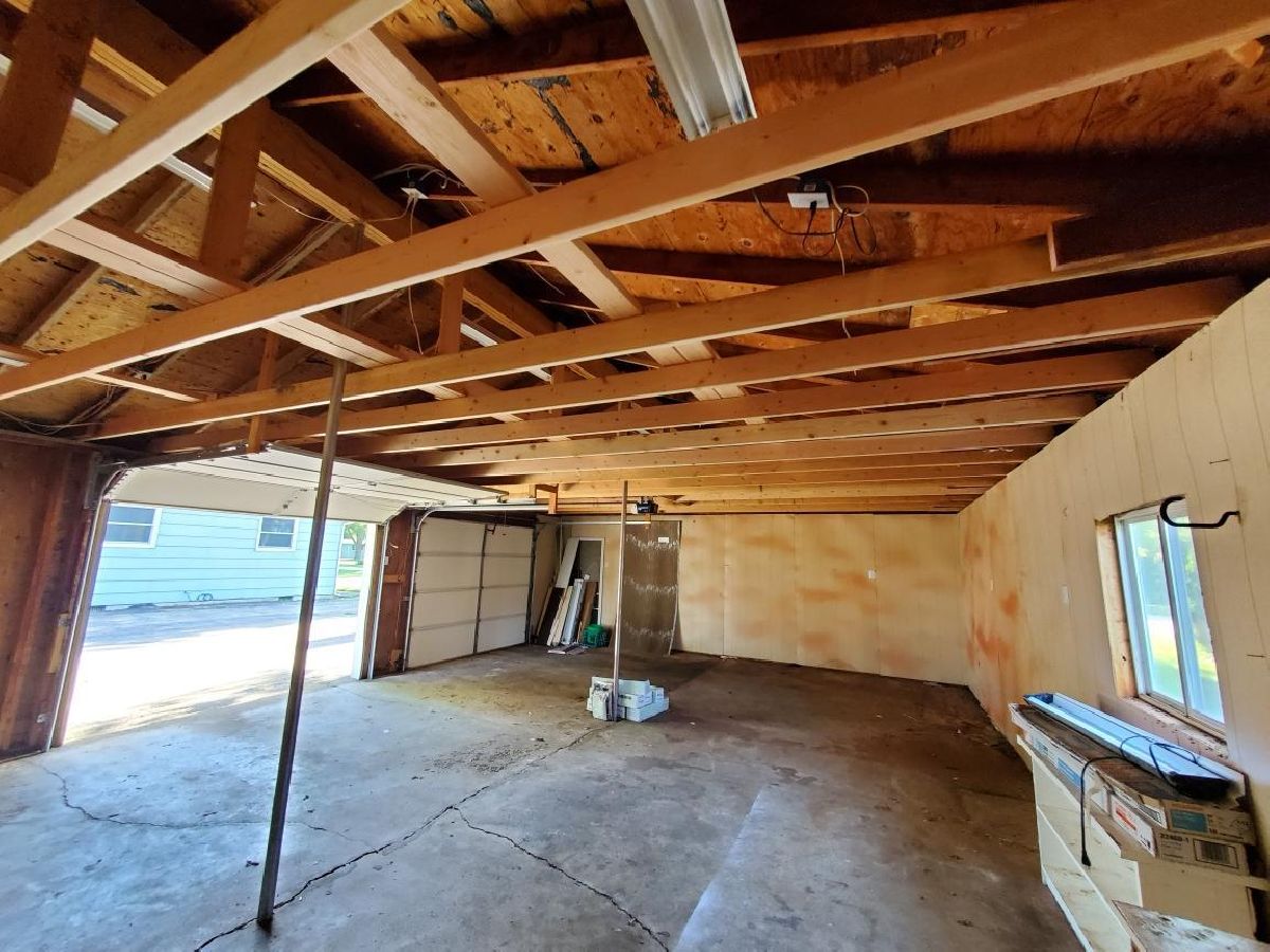 Updated 4 bedroom, 1.5 bath ranch home on double lot. Wonderful large living room with gas fireplace. Stainless steel appliances, purchased in 2016 stay, along with washer and dryer which were purchased in 2019. 1/2 bathroom renovated in 2020. Whole house fan. Ample closet and storage space. Screened in back porch. Above ground pool. 2.5 detached garage, with metal workbench that stays and new joists and all LED lighting. An additional 1 car detached heated garage is located near the pool and has a screen for the large door. Both garages have separate 220 electrical lines. Large fenced in backyard with firepit. Fence new in 2020. This is a great house with a great yard!