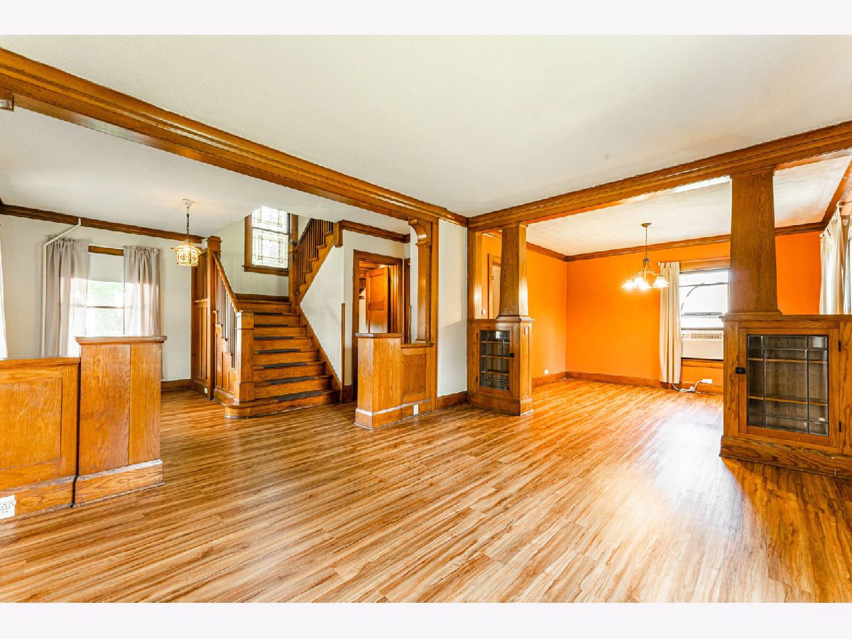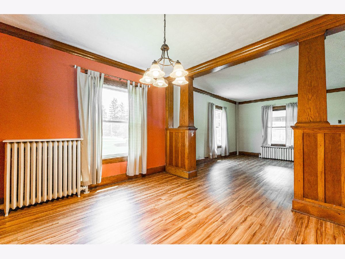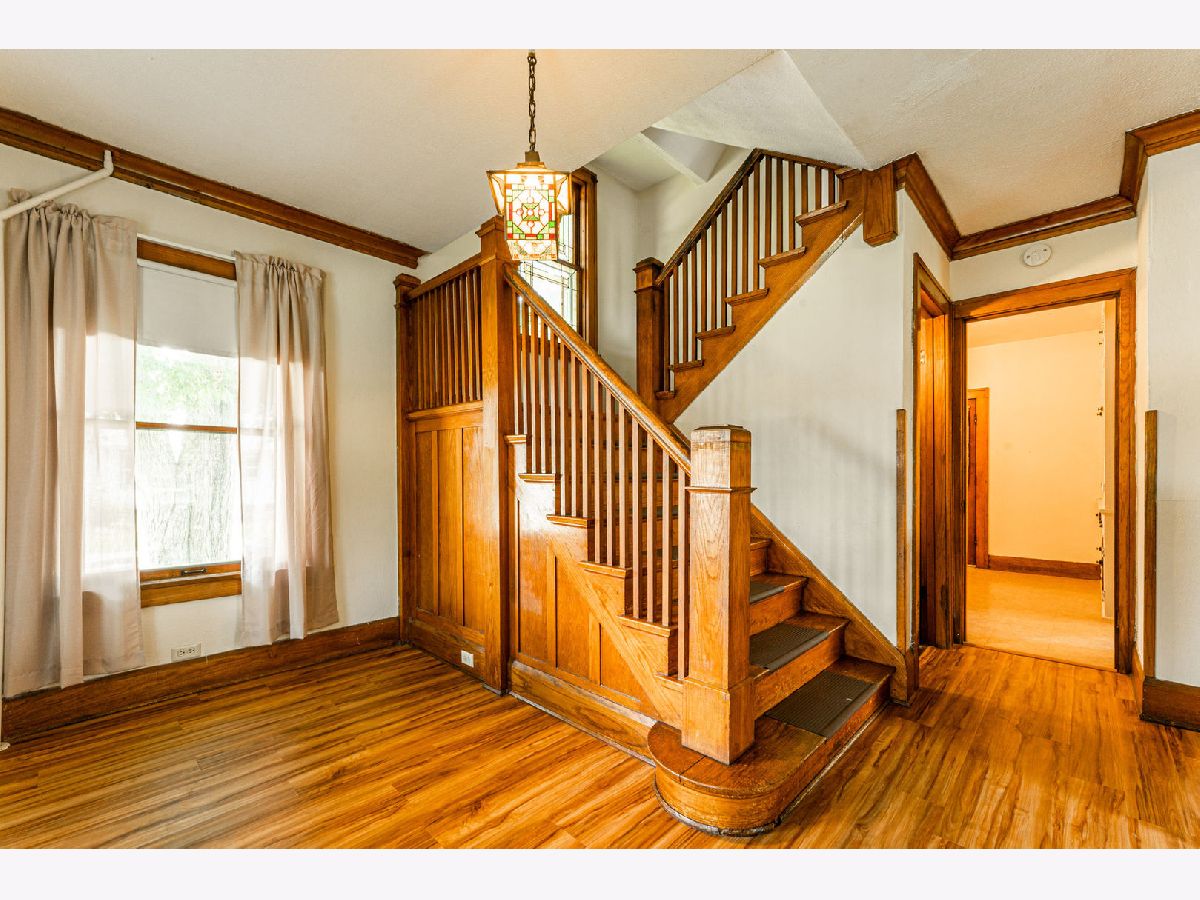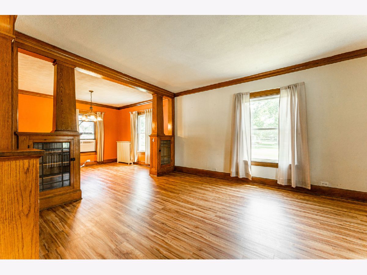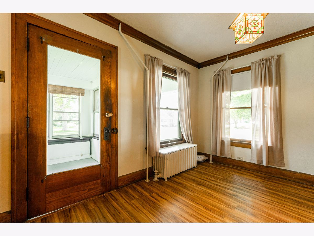 Come to Kirkland and enjoy small town living. You will appreciate the unique features of this older home. Foyer has open staircase and stained glass window. Living room and dining room separated by built-in cabinets with leaded glass doors. The kitchen includes appliances plus full wall built-in cabinets. Bedrooms, full bathroom and laundry are upstairs. Also an unfinished walk-up attic. Enjoy the theatre room in basement has built-in movie screen, built-in bar and 4 stools. This home also features enclosed three season porch and one car detached garage. Recent updates include gas boiler in 2000 with new motor in 2021 - hot water heater in 2019, 200 amp elec box with circuit breakers, newer sewer.