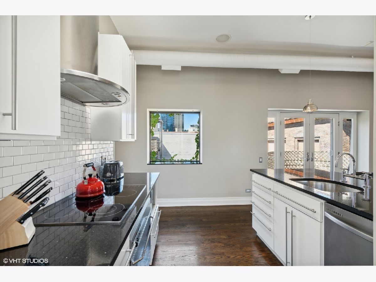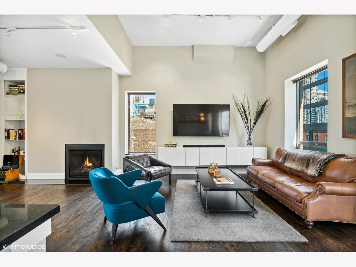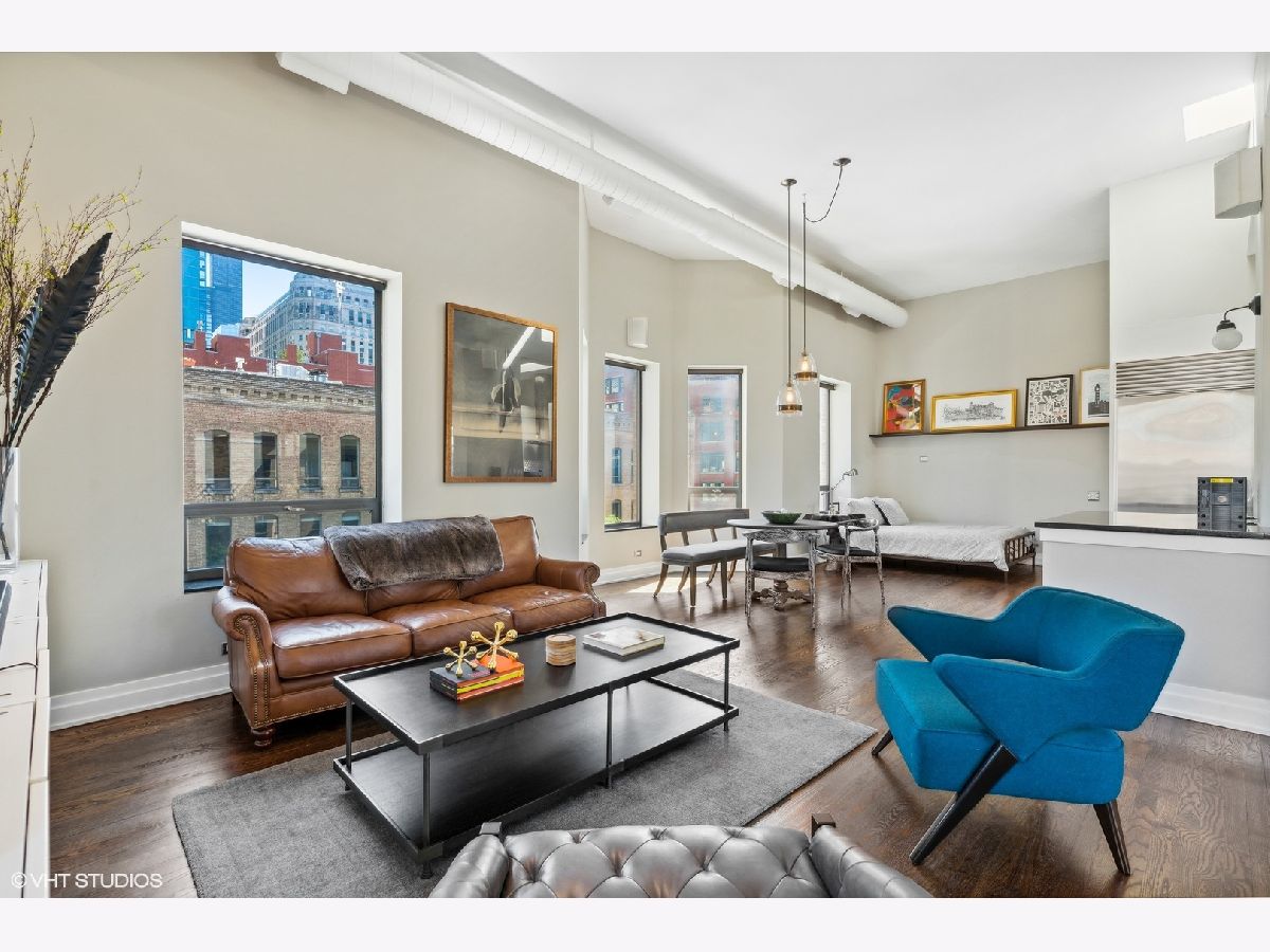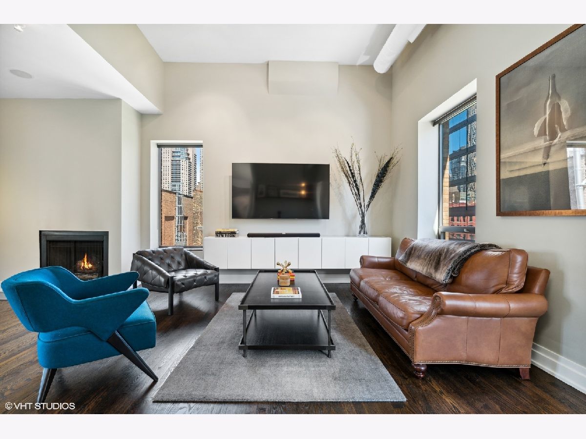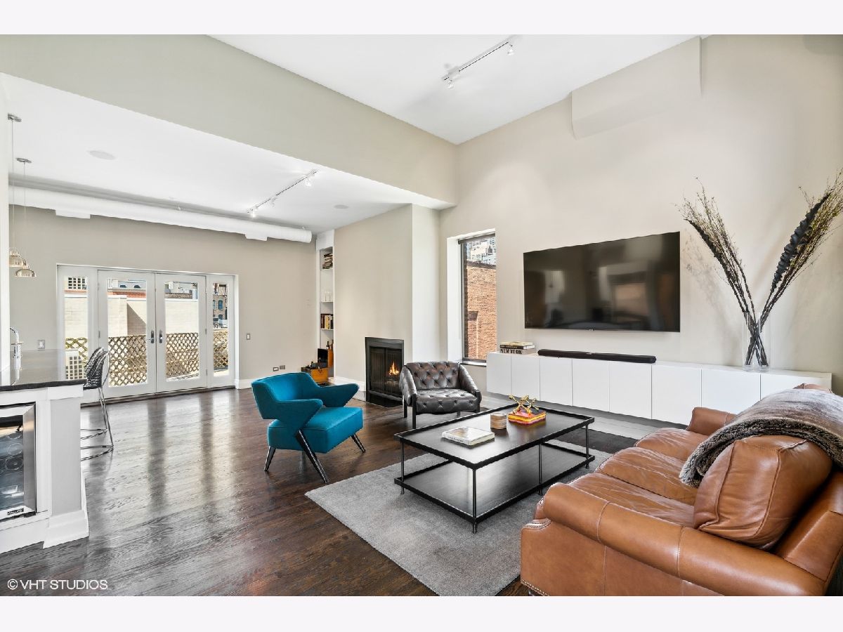 Sprawling walk-up penthouse in a boutique building in the heart of River North! Completely gutted and updated, this open floor plan, south facing loft has been re-envisioned for modern city living. The original 2 bedroom configuration was opened up to create a massive 1 bedroom/2 bathroom condo with multiple living/dining areas. Flooded with natural light from 11 oversized south/east/north facing windows, 13' ceilings and a kitchen skylight. Kitchen features include Sub-Zero/Miele/Bosch appliances, a NewAir wine fridge with a separate bar space, modern white cabinetry, granite countertops and a subway tile backsplash. Dark oak hardwood flooring through out, plus a fireplace flanked by built-in storage and shelving. Gutted master bathroom with European style tiling, a floating vanity and rain shower head. Professionally organized closets by California Closets, custom window treatments in the living area and Hunter Douglas black out shades in the master bedroom. 155 SF private patio off of the kitchen with gas line. Brand new washer & dryer in-unit. Building amenities include a common courtyard, bike storage and additional storage. Potential roof rights. There isn't a better location in River North. Walk to Foxtrot, Le Select, Bavette's, East Bank Club, The Riverwalk, The Loop and Lake Michigan. Parking available nearby. Don't miss this unique opportunity!