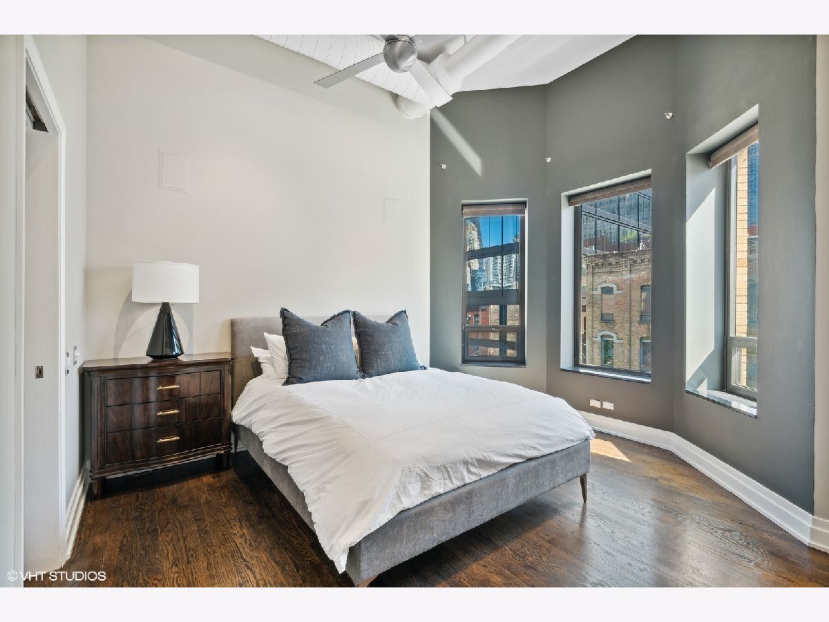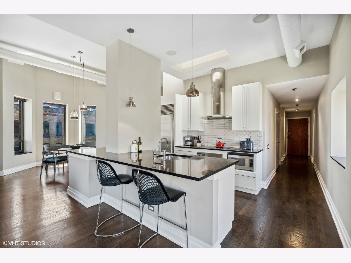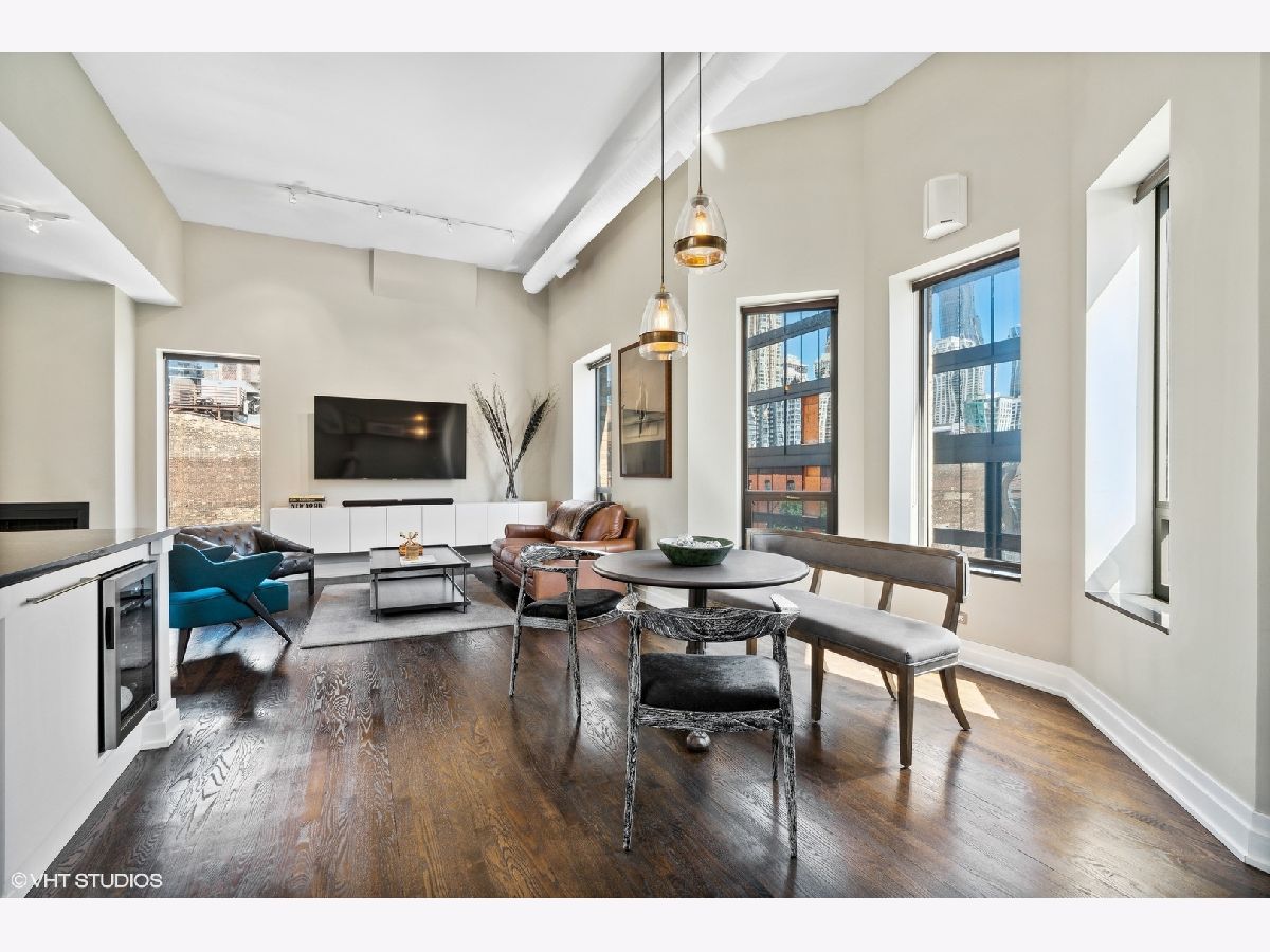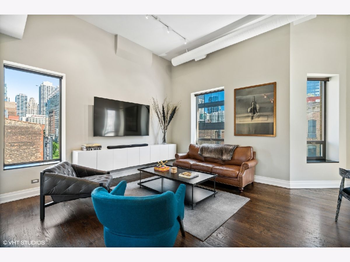 Sprawling walk-up penthouse in a boutique building in the heart of River North! Completely gutted and updated, this open floor plan, south facing loft has been re-envisioned for modern city living. The original 2 bedroom configuration was opened up to create a massive 1 bedroom/2 bathroom condo with multiple living/dining areas. Flooded with natural light from 11 oversized south/east/north facing windows, 13' ceilings and a kitchen skylight. Kitchen features include Sub-Zero/Miele/Bosch appliances, a NewAir wine fridge with a separate bar space, modern white cabinetry, granite countertops and a subway tile backsplash. Dark oak hardwood flooring through out, plus a fireplace flanked by built-in storage and shelving. Gutted master bathroom with European style tiling, a floating vanity and rain shower head. Professionally organized closets by California Closets, custom window treatments in the living area and Hunter Douglas black out shades in the master bedroom. 155 SF private patio off of the kitchen with gas line. Brand new washer & dryer in-unit. Building amenities include a common courtyard, bike storage and additional storage. Potential roof rights. There isn't a better location in River North. Walk to Foxtrot, Le Select, Bavette's, East Bank Club, The Riverwalk, The Loop and Lake Michigan. Parking available nearby. Don't miss this unique opportunity!
