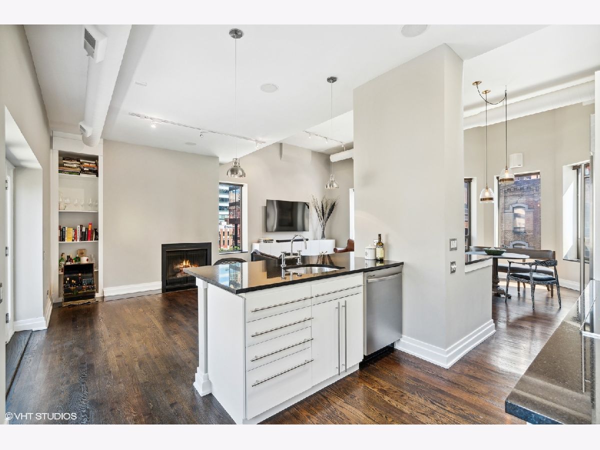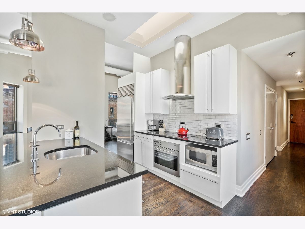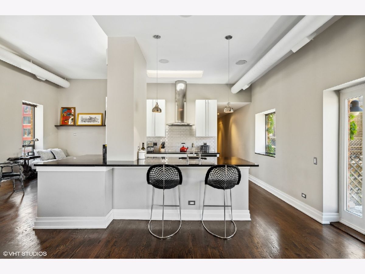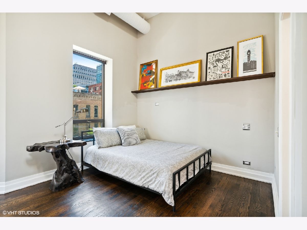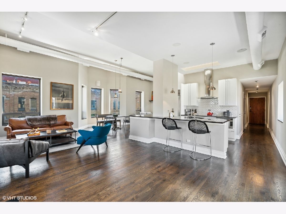 Sprawling walk-up penthouse in a boutique building in the heart of River North! Completely gutted and updated, this open floor plan, south facing loft has been re-envisioned for modern city living. The original 2 bedroom configuration was opened up to create a massive 1 bedroom/2 bathroom condo with multiple living/dining areas. Flooded with natural light from 11 oversized south/east/north facing windows, 13' ceilings and a kitchen skylight. Kitchen features include Sub-Zero/Miele/Bosch appliances, a NewAir wine fridge with a separate bar space, modern white cabinetry, granite countertops and a subway tile backsplash. Dark oak hardwood flooring through out, plus a fireplace flanked by built-in storage and shelving. Gutted master bathroom with European style tiling, a floating vanity and rain shower head. Professionally organized closets by California Closets, custom window treatments in the living area and Hunter Douglas black out shades in the master bedroom. 155 SF private patio off of the kitchen with gas line. Brand new washer & dryer in-unit. Building amenities include a common courtyard, bike storage and additional storage. Potential roof rights. There isn't a better location in River North. Walk to Foxtrot, Le Select, Bavette's, East Bank Club, The Riverwalk, The Loop and Lake Michigan. Parking available nearby. Don't miss this unique opportunity!
