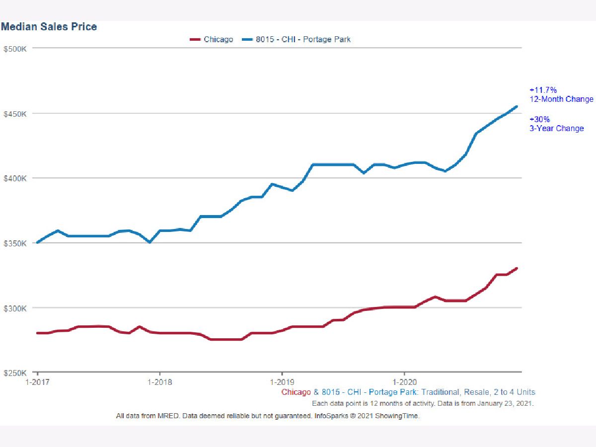 Price just reduced to sell quickly. Opportunity awaits with this truly turn-key, brick 2-flat in Portage Park. Be sure to check out the 3D Virtual Tour online. The neighborhood's small multi-family stock has appreciated 10% in the last 12-months, and by 30% in the last three years. This is a great starter investment for someone looking to offset their housing costs and build a portfolio. This low-risk, low-maintenance building was gut-rehabbed 3 years ago with new mechanical systems - separate furnaces and air-conditioning units, electrical panels and wiring, copper piping, and separate hot water tanks. New roofs were installed on both the building and garage. Unit 1 features 2-bedrooms and 1-bath, while Unit 2 features 3-bedrooms and 1-bath. These cozy units offer quality finishes throughout. Each upgraded kitchen is loaded with features to enjoy - shaker white cabinets, quartz countertops, stainless steel appliances, a dishwasher, a built-in microwave and a sink disposal. Flooring is a mix of hardwood floors in living rooms, bedrooms and hallways & tile in kitchens and bathrooms. The large, unfinished basement is currently being used for laundry and storage. Park your car in the 2-car garage. Gas and electric utilities are sub-metered and paid by each tenant. Taxes do not reflect any exemptions and will be lowered when applied. Building is now vacant. Portage Park is known for its vibrant mix of restaurants, bars, coffee shops, theaters and parks. Six Corners shopping district is just steps away and multiple new commercial developments are under construction at this time. Benefit from easy access to the Montrose and Irving Park Blue Line stations. I-90/94 is only 1-mile away and provides access to downtown and the suburbs. Public parks located in close proximity include the 30-acre Portage Park, Chopin Park, and Dickinson Park.