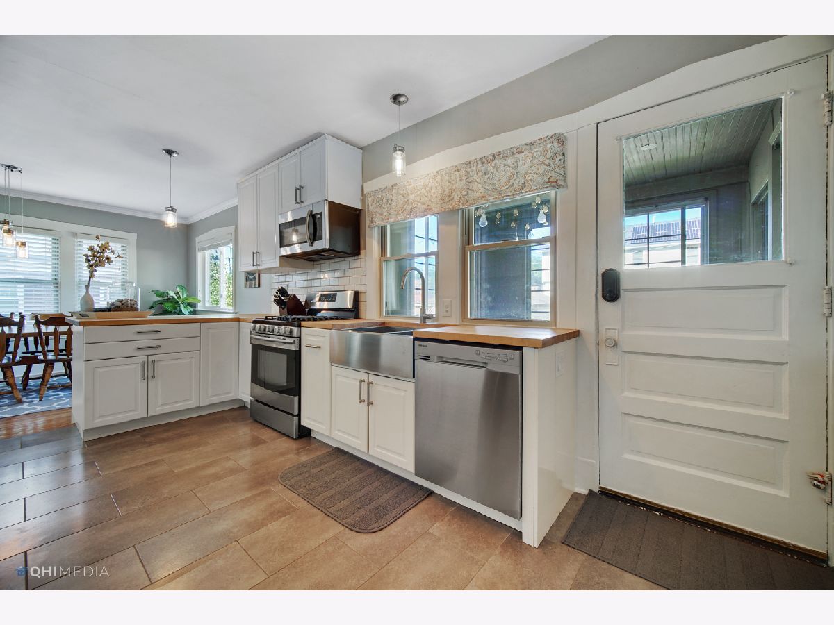 AMAZING CURB APPEAL! Enjoy sitting on your front porch as this adorable home has all the charming vintage touches you could want. New updated kitchen and fully renovated bathroom, new roof and gutters, gorgeous back yard with paver patio (2 year transferable warranty remaining), 2 car garage, hardwood floors, and formal dining room. Full basement w/wlk-out exit, loads of charm. Close to schools, shopping and major roadways yet set in a quiet neighborhood. Short half mile walk to the train.