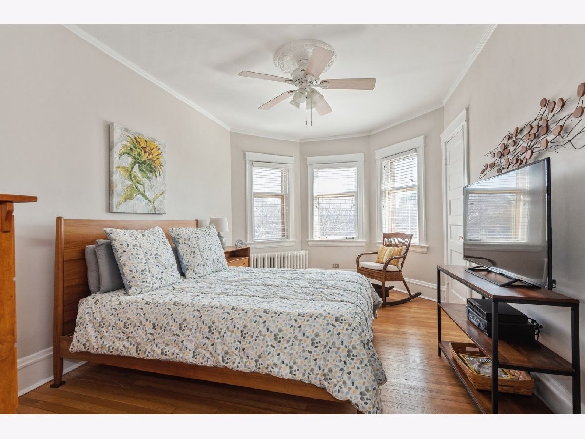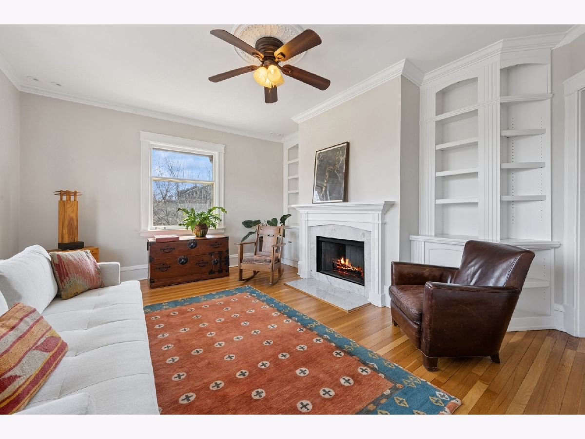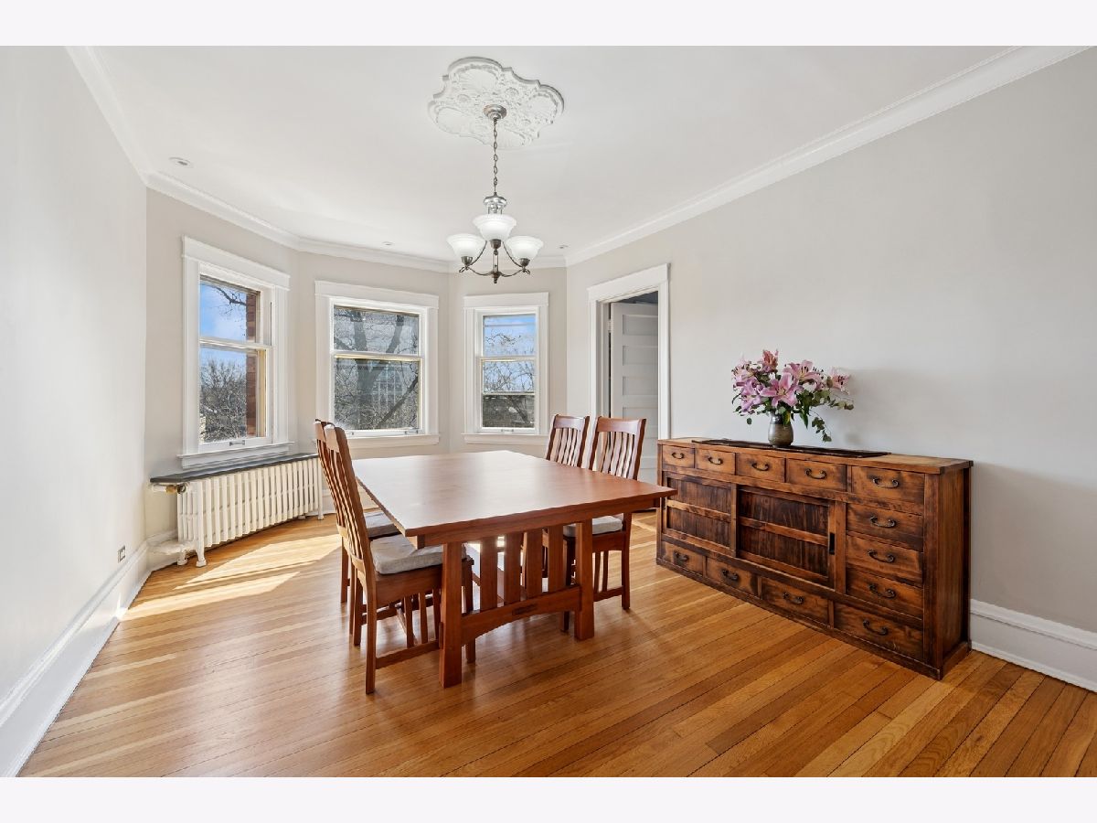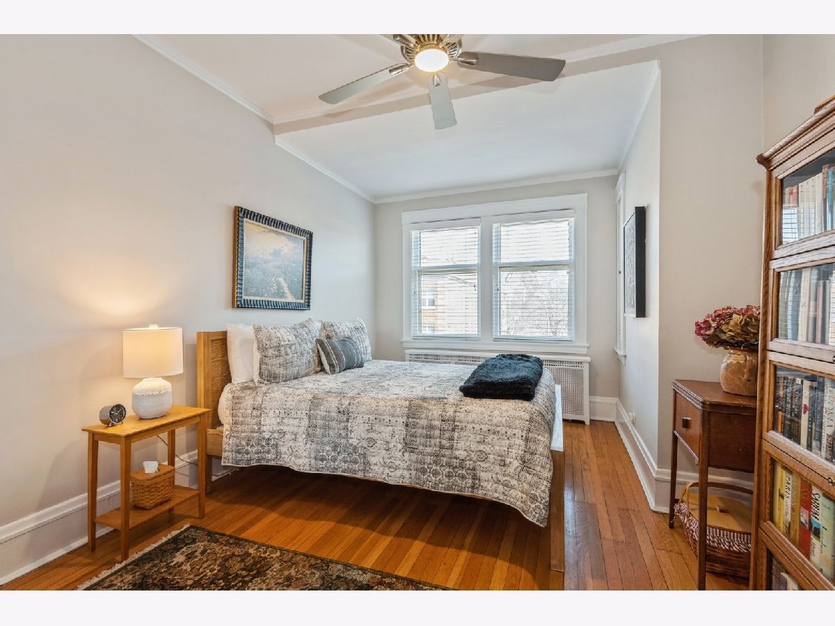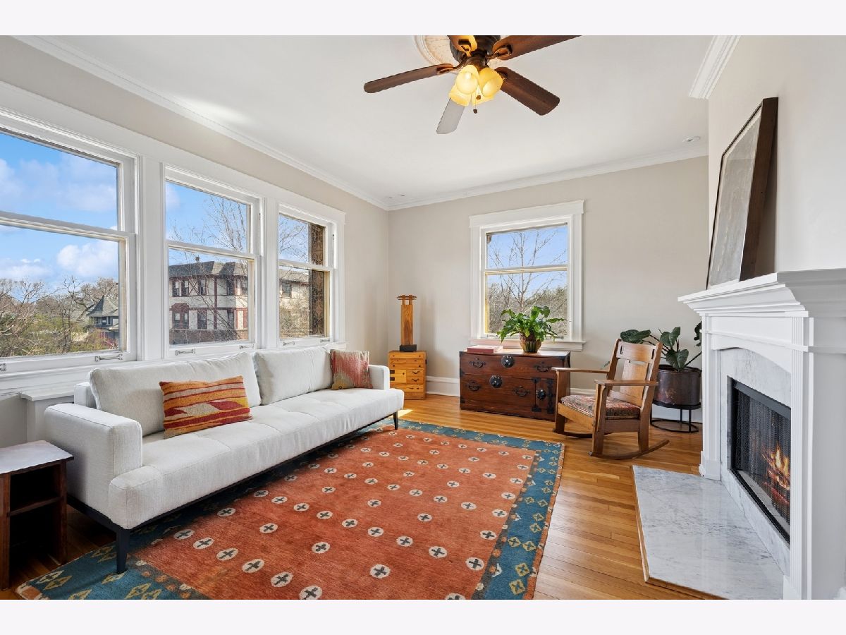 Rarely available 4-bedroom condo in an unbeatable Evanston location-just blocks from Lee Street Beach, Trader Joe's, coffee shops, restaurants, and the Main-Dempster Mile's unique local shops. This top-floor vintage walk-up offers tree-top views, abundant natural light, and a perfect blend of charm and modern updates. The beautifully remodeled 2024 kitchen features custom maple cabinets, granite countertops, a Blanco granite composite sink with under-sink water filter, and high-end appliances: Bosch induction cooktop and dishwasher, LG full-size oven, and Samsung refrigerator-freezer. The oak floors have been refinished, and central air conditioning was recently added. A new LG washer and dryer make in-unit laundry a breeze. The inviting living room includes a wood-burning fireplace flanked by built-in bookshelves, and the spacious dining room is anchored by a bright bay window. The fourth bedroom, with built-in cabinetry, makes an ideal home office or flex space. The primary bath was refreshed in October 2024 with a new vanity and faucet. Enjoy a shared outdoor area perfect for grilling, relaxing, or gardening, plus assigned parking located behind the building. With easy access to both the Metra and the "EL," this home is a commuter's dream. Truly move-in ready with timeless character and thoughtful upgrades throughout.
