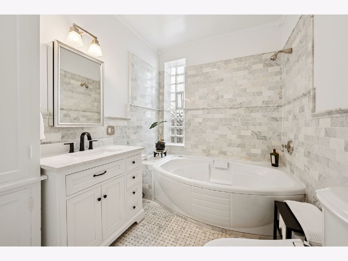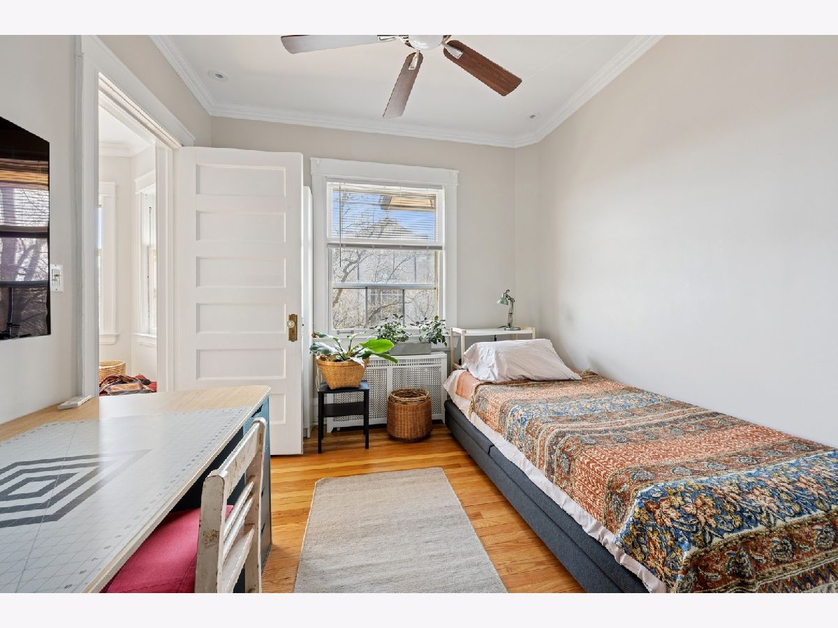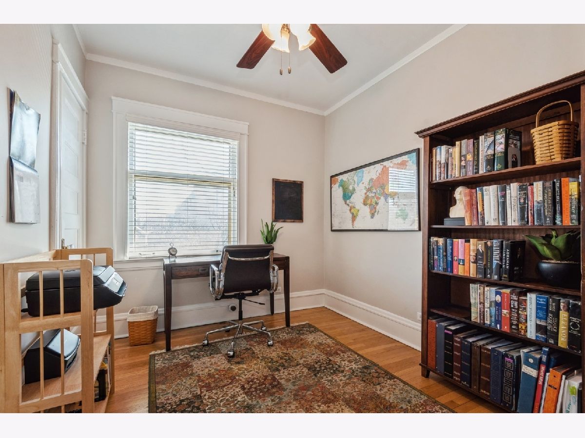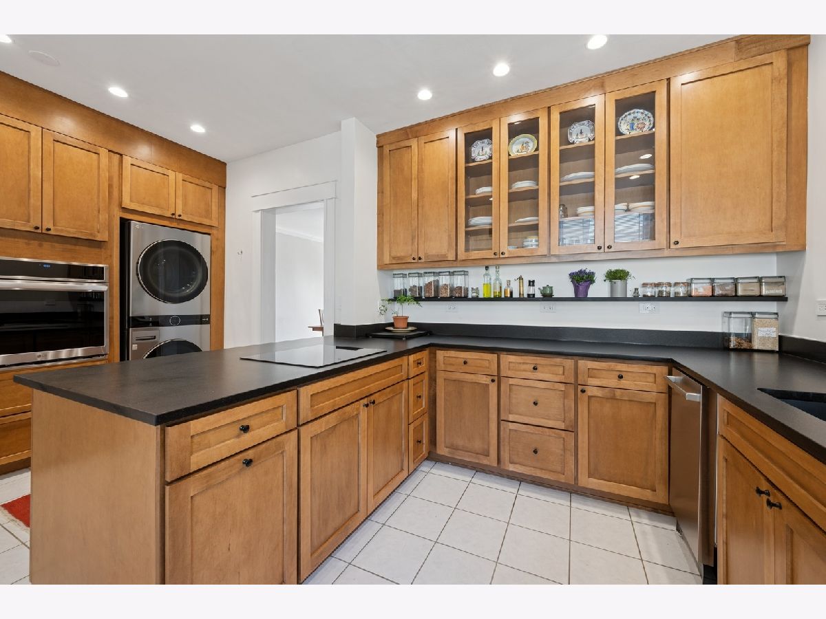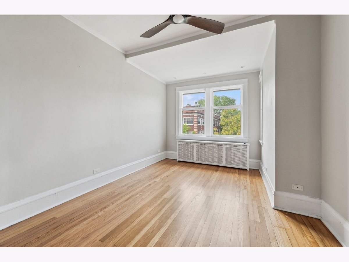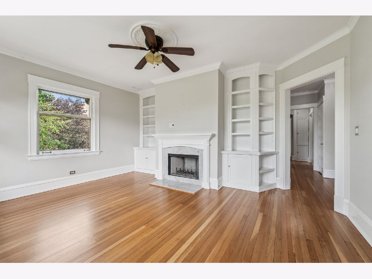 Rarely available 4-bedroom condo in an unbeatable Evanston location-just blocks from Lee Street Beach, Trader Joe's, coffee shops, restaurants, and the Main-Dempster Mile's unique local shops. This top-floor vintage walk-up offers tree-top views, abundant natural light, and a perfect blend of charm and modern updates. The beautifully remodeled 2024 kitchen features custom maple cabinets, granite countertops, a Blanco granite composite sink with under-sink water filter, and high-end appliances: Bosch induction cooktop and dishwasher, LG full-size oven, and Samsung refrigerator-freezer. The oak floors have been refinished, and central air conditioning was recently added. A new LG washer and dryer make in-unit laundry a breeze. The inviting living room includes a wood-burning fireplace flanked by built-in bookshelves, and the spacious dining room is anchored by a bright bay window. The fourth bedroom, with built-in cabinetry, makes an ideal home office or flex space. The primary bath was refreshed in October 2024 with a new vanity and faucet. Enjoy a shared outdoor area perfect for grilling, relaxing, or gardening, plus assigned parking located behind the building. With easy access to both the Metra and the "EL," this home is a commuter's dream. Truly move-in ready with timeless character and thoughtful upgrades throughout.