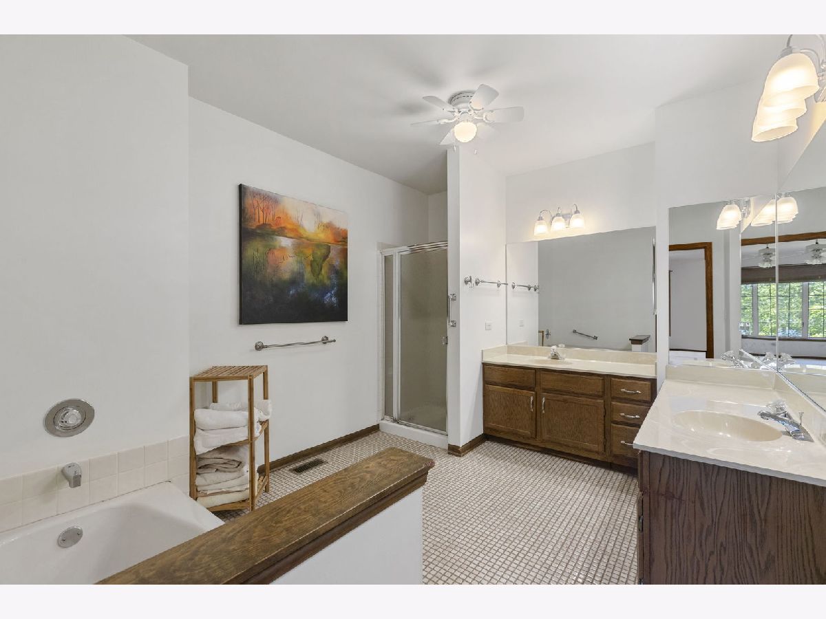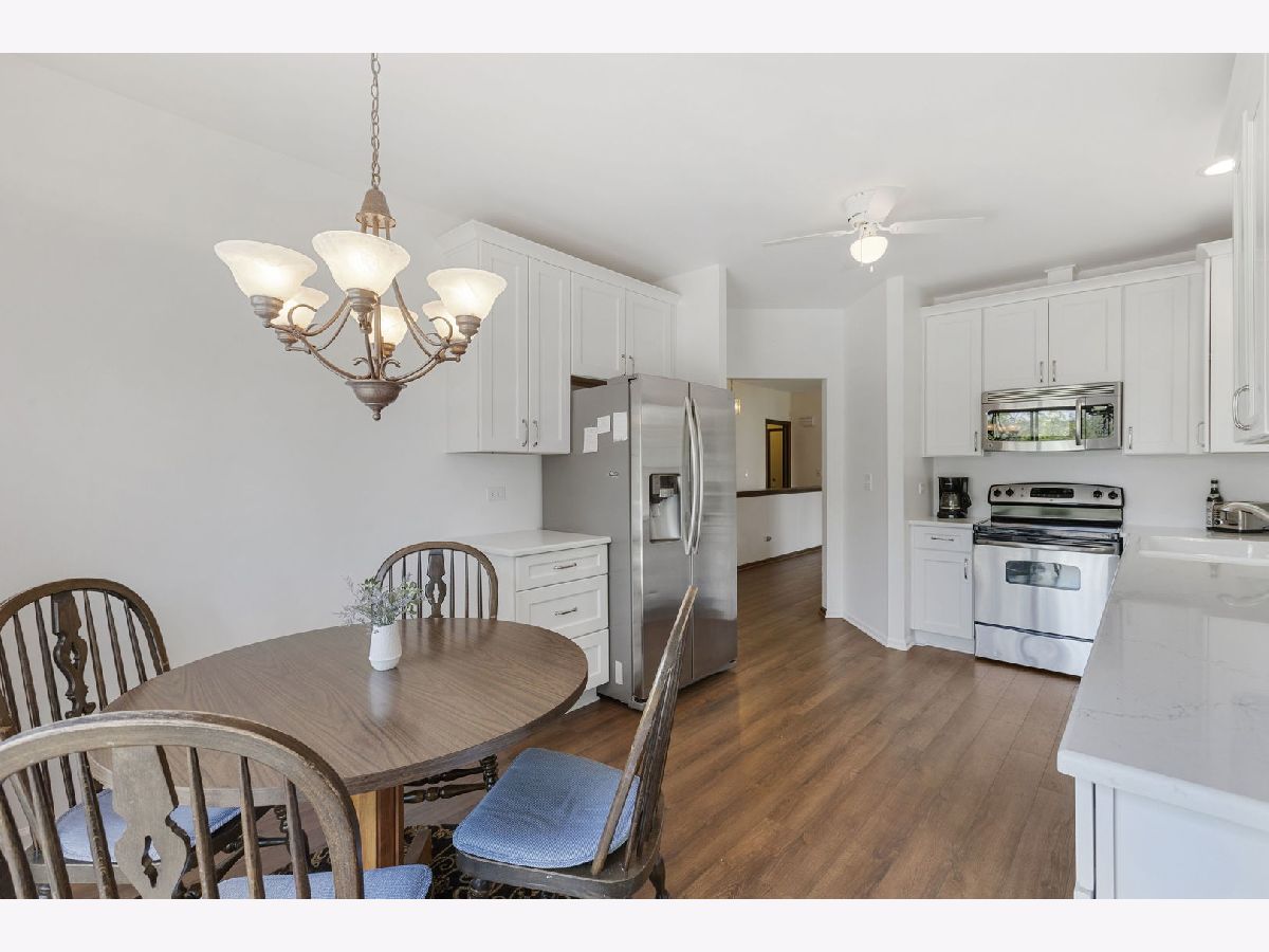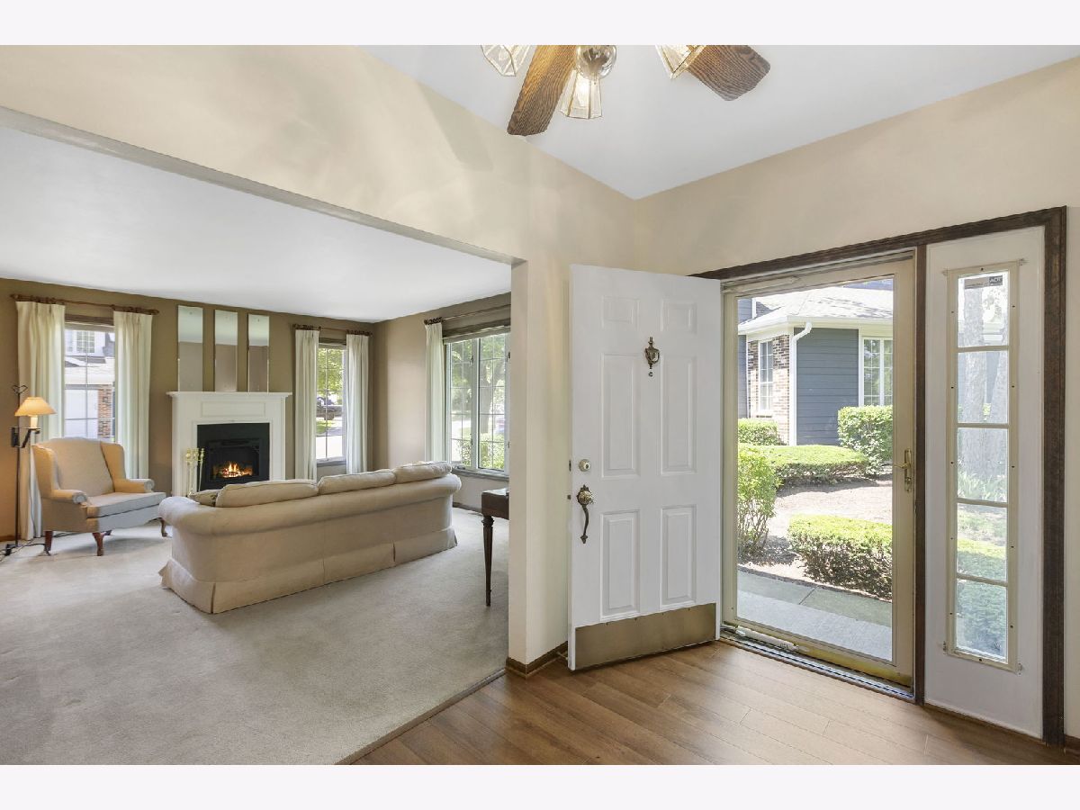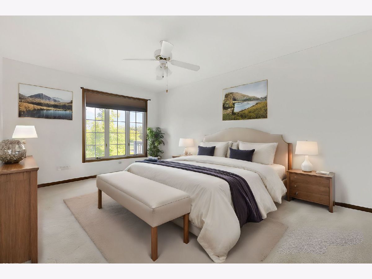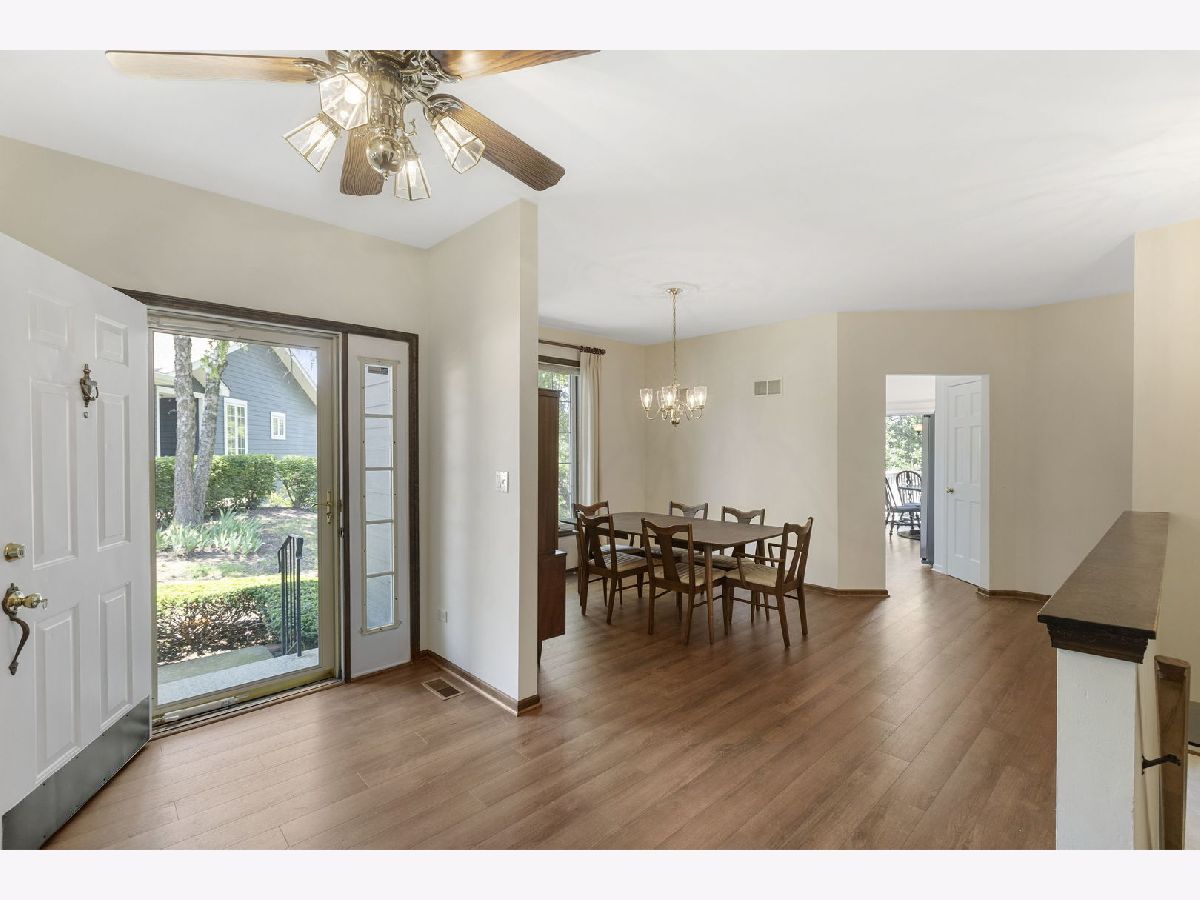 Parkside on the Green revolutionizes main floor living concepts with its unobstructed aerial view of Birchwood Park and its remarkable refinements throughout the brilliant design. An end unit with arguably the most desired location in all of the community finished with new Hardieboard siding complimented by brick accents. Guests are drawn in by the clean lines, wood laminate floors and open concept. The foyer introduces a phenomenal size family room with windows on each side of the fireplace and additional windows on the adjacent wall creating panoramic views. On the opposing side of the foyer is a formal dining room easily accommodating seating for 8 guests. Conveniently located off the dining room is a gorgeous new eat-in kitchen with 42" shaker cabinets, stainless steel appliances and sliding door access to a generous deck. Down the hallway is equally impressive with 2 spacious bedrooms each with views of the park and 2 full bathrooms. 1 of 2 bedrooms is the primary suite with sprawling windows across the back wall, large walk-in closet and direct access to the primary bathroom. The primary bathroom features a double vanity, separate soaking tub and an independent shower. The 2nd bedroom showcases a full bathroom across the hallway with a shower/tub combination and single vanity. The main floor also offers a fantastic mud room off the garage. Full finished walkout lower level with 2nd fireplace, recreation room, possible 3rd bedroom and half bath. Plenty of storage and a 2-car attached garage! Near Harper College, shopping, entertainment, restaurants and highway! New furnace and central humidifier in 2017, new hot water tank in 2023, new Acorn windows in bedrooms and kitchen, nylon carpet in 2023, new kitchen in 2023 and commercial grade vinyl flooring in 2023..