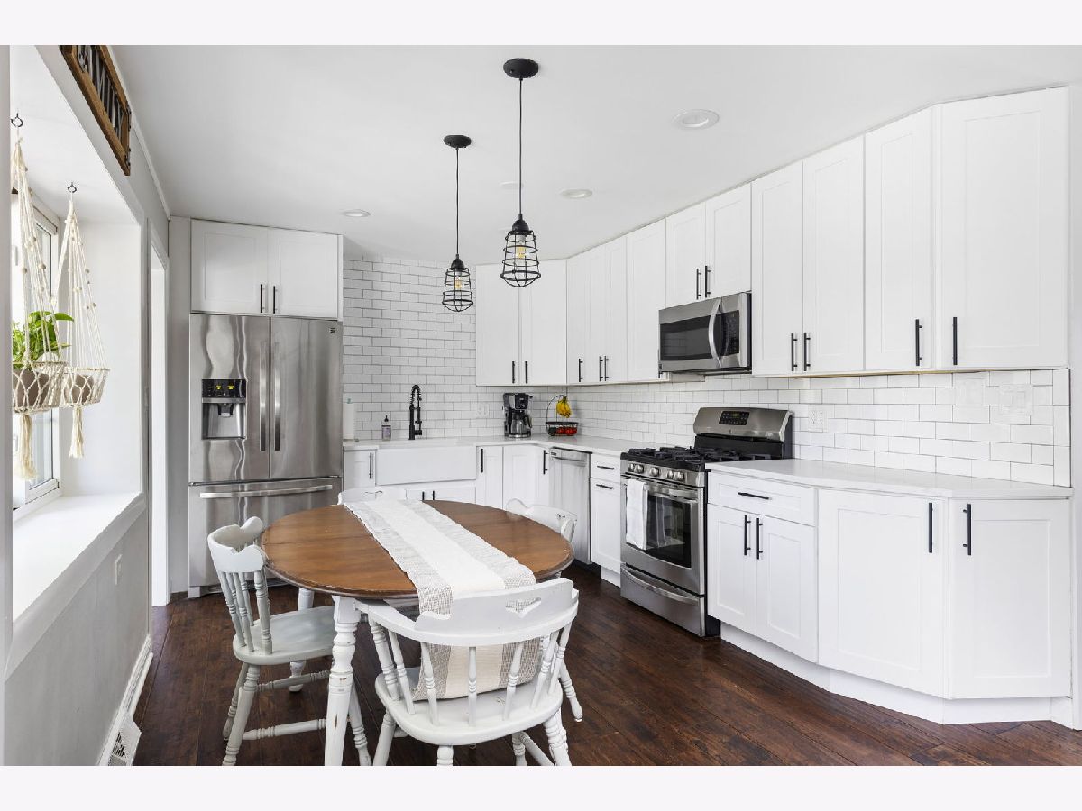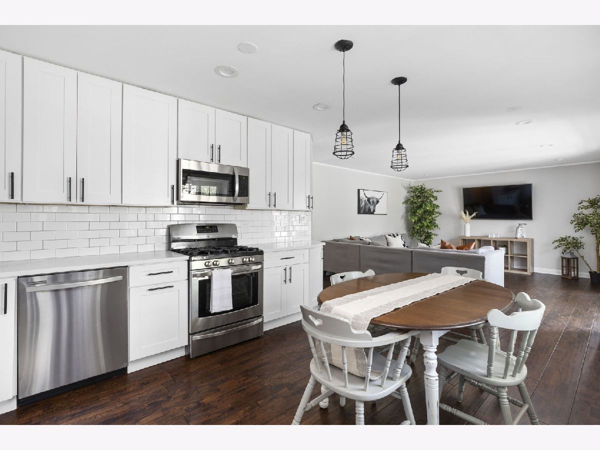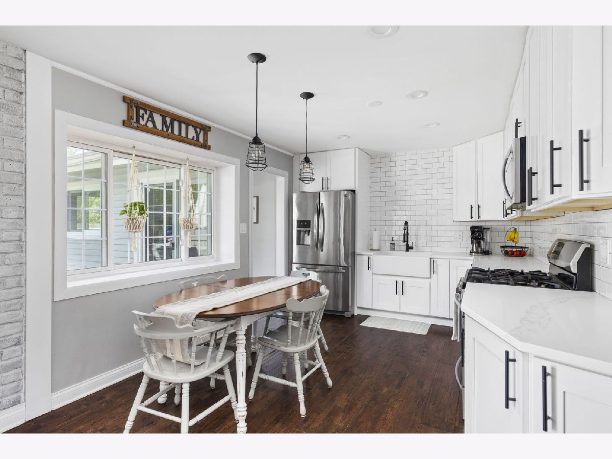 Nestled in the vibrant heart of Elk Grove Village, 502 Shadywood Ln promises a fusion of contemporary elegance and serene surroundings. As you step onto the property, the simplicity and grace of the facade greet you warmly. An absolutely beautiful Thunderchild tree stands as a centerpiece, adorned with clusters of fragrant, dark pink flowers, showing off stunning mid-spring blossoms. Classic red bricks and pristine white balustrades frame a charming veranda, inviting you to linger and soak in the tranquil ambiance. Inside, approximately 1,395 square feet of living space awaits. Sunlight streams through high-performance Larson windows, illuminating wide plank, red oak hardwood floors that exude warmth and character. The foyer leads seamlessly into an open-concept living area, designed for both style and comfort. Whether it's a cozy evening at home or entertaining guests, the layout fosters effortless connection and memorable moments. Sliding glass walls open onto a spacious Trex-laid terrace, blurring the lines between indoor and outdoor living. The terrace overlooks a lush north garden, offering a perfect retreat for relaxation and urban gardening. The kitchen is a chef's delight, featuring custom white Statured shaker cabinets, Calacatta Bella Quartz countertops, and top-of-the-line stainless appliances. A window bench offers a picturesque spot for breakfast with a view. Down the hall, three charming bedrooms await, each bathed in natural light and offering ample closet space. The first bathroom boasts Iceberg marble floors and a luxurious soaking tub, while the primary bedroom features a sizable closet and space for a king-size bed. Located in a coveted neighborhood, 502 Shadywood is mere moments from trendy eateries, shops, parks, and Busse Woods, offering residents the perfect blend of urban convenience and natural beauty. Welcome home to effortless elegance and timeless tranquility.