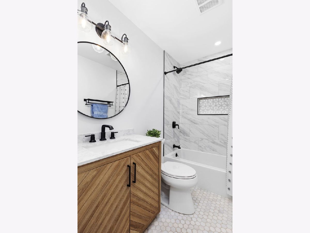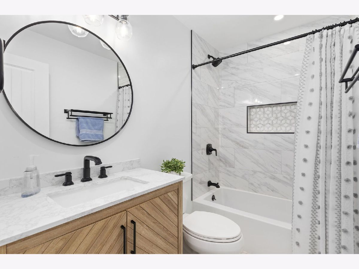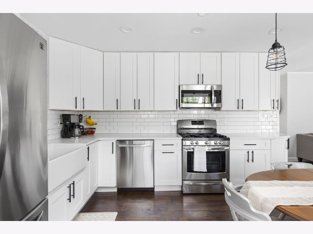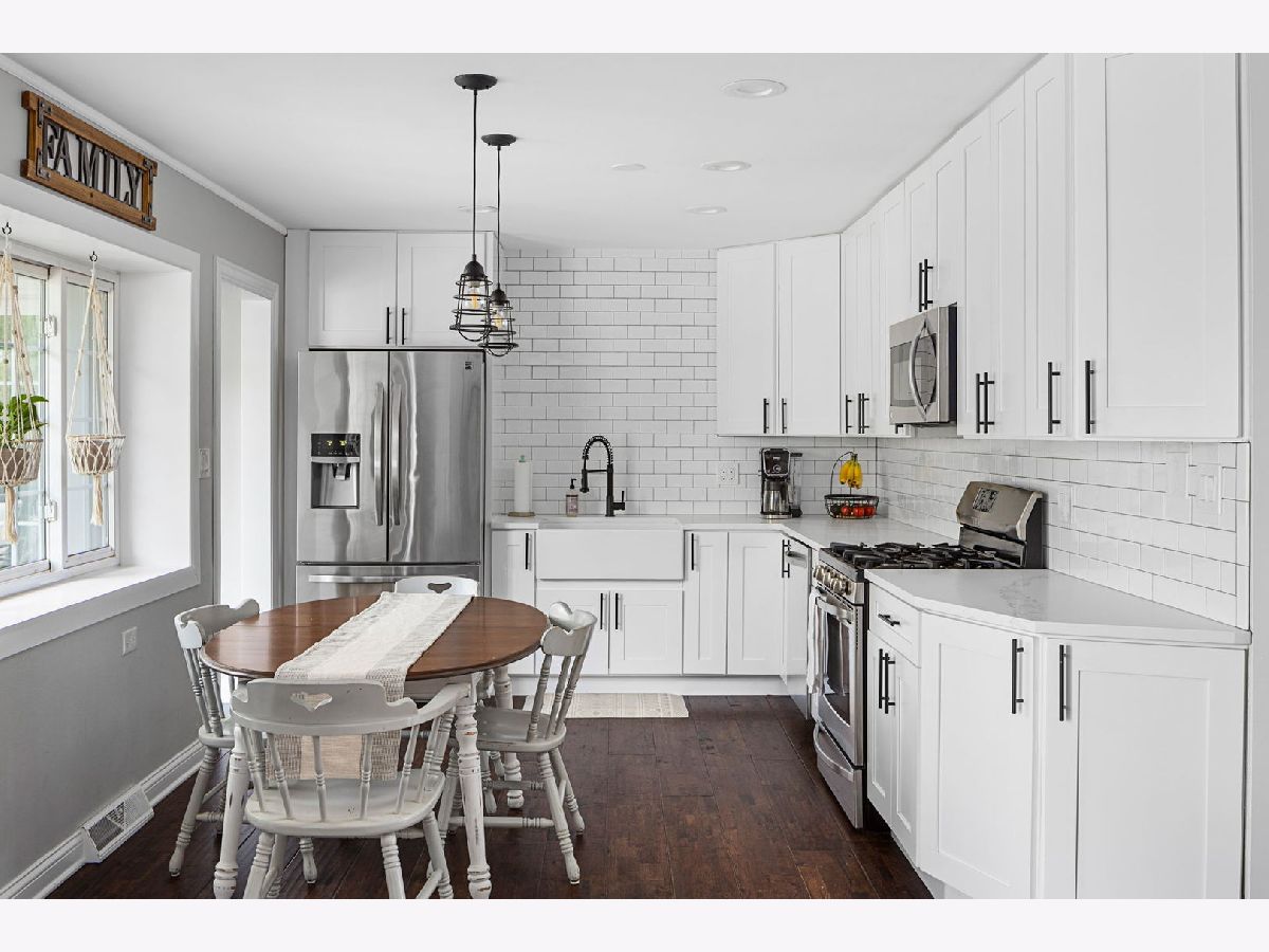 Nestled in the vibrant heart of Elk Grove Village, 502 Shadywood Ln promises a fusion of contemporary elegance and serene surroundings. As you step onto the property, the simplicity and grace of the facade greet you warmly. An absolutely beautiful Thunderchild tree stands as a centerpiece, adorned with clusters of fragrant, dark pink flowers, showing off stunning mid-spring blossoms. Classic red bricks and pristine white balustrades frame a charming veranda, inviting you to linger and soak in the tranquil ambiance. Inside, approximately 1,395 square feet of living space awaits. Sunlight streams through high-performance Larson windows, illuminating wide plank, red oak hardwood floors that exude warmth and character. The foyer leads seamlessly into an open-concept living area, designed for both style and comfort. Whether it's a cozy evening at home or entertaining guests, the layout fosters effortless connection and memorable moments. Sliding glass walls open onto a spacious Trex-laid terrace, blurring the lines between indoor and outdoor living. The terrace overlooks a lush north garden, offering a perfect retreat for relaxation and urban gardening. The kitchen is a chef's delight, featuring custom white Statured shaker cabinets, Calacatta Bella Quartz countertops, and top-of-the-line stainless appliances. A window bench offers a picturesque spot for breakfast with a view. Down the hall, three charming bedrooms await, each bathed in natural light and offering ample closet space. The first bathroom boasts Iceberg marble floors and a luxurious soaking tub, while the primary bedroom features a sizable closet and space for a king-size bed. Located in a coveted neighborhood, 502 Shadywood is mere moments from trendy eateries, shops, parks, and Busse Woods, offering residents the perfect blend of urban convenience and natural beauty. Welcome home to effortless elegance and timeless tranquility.
