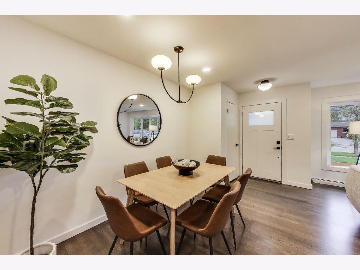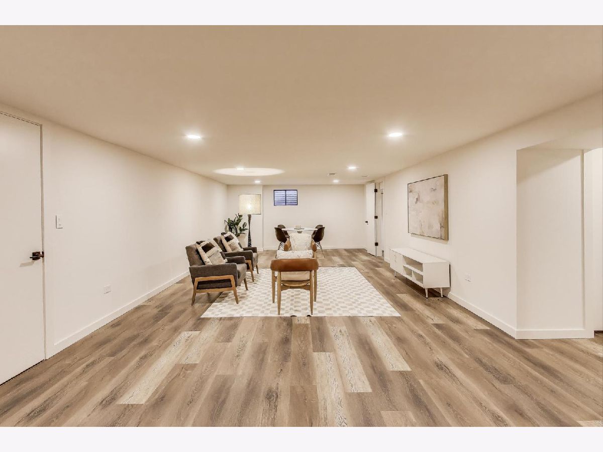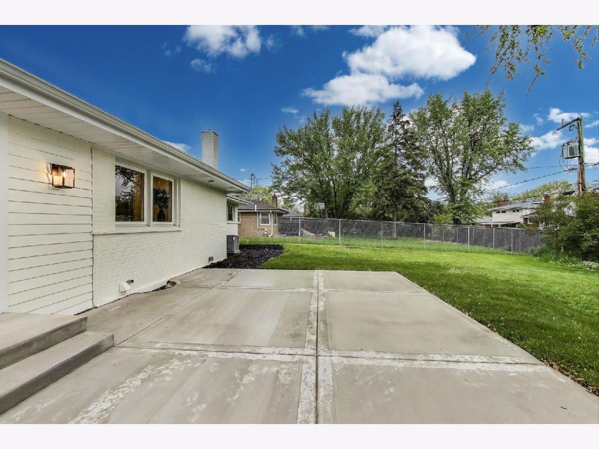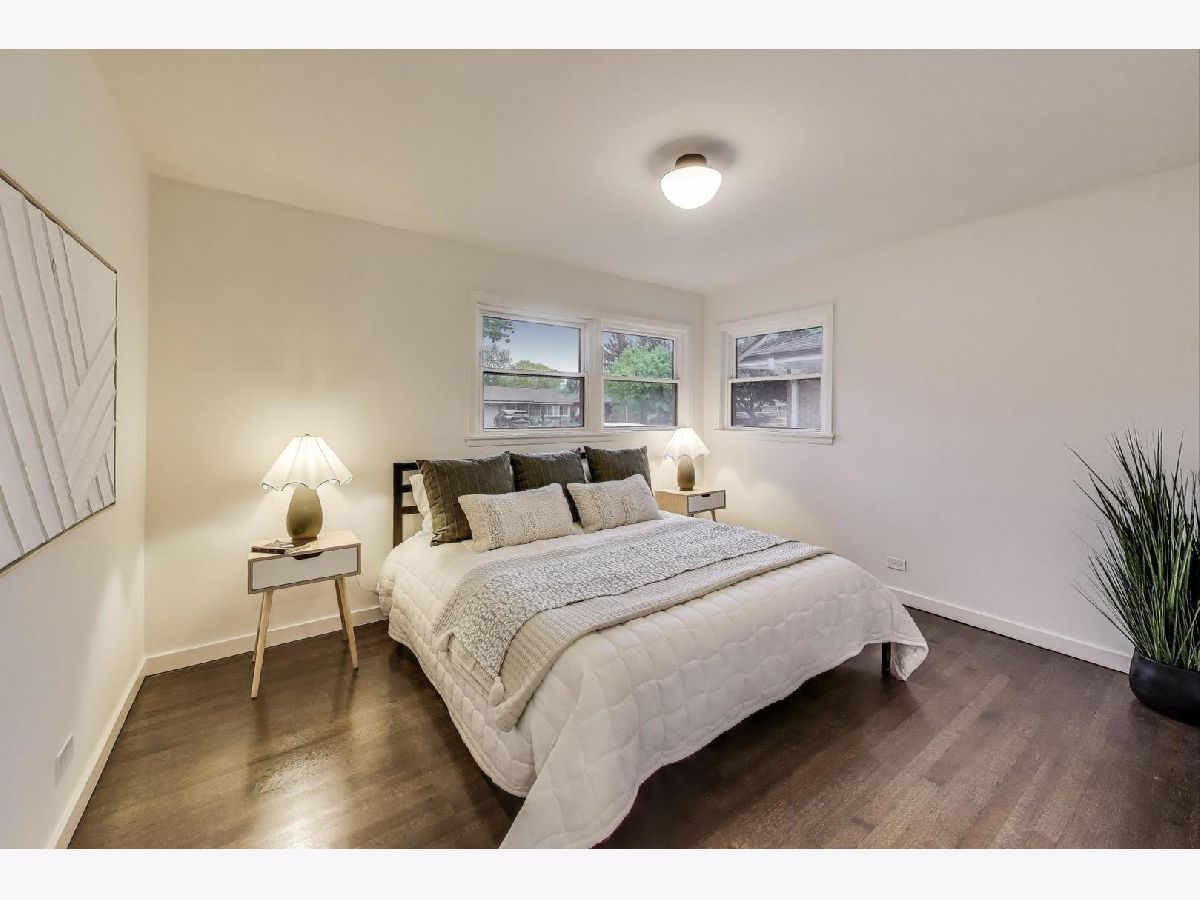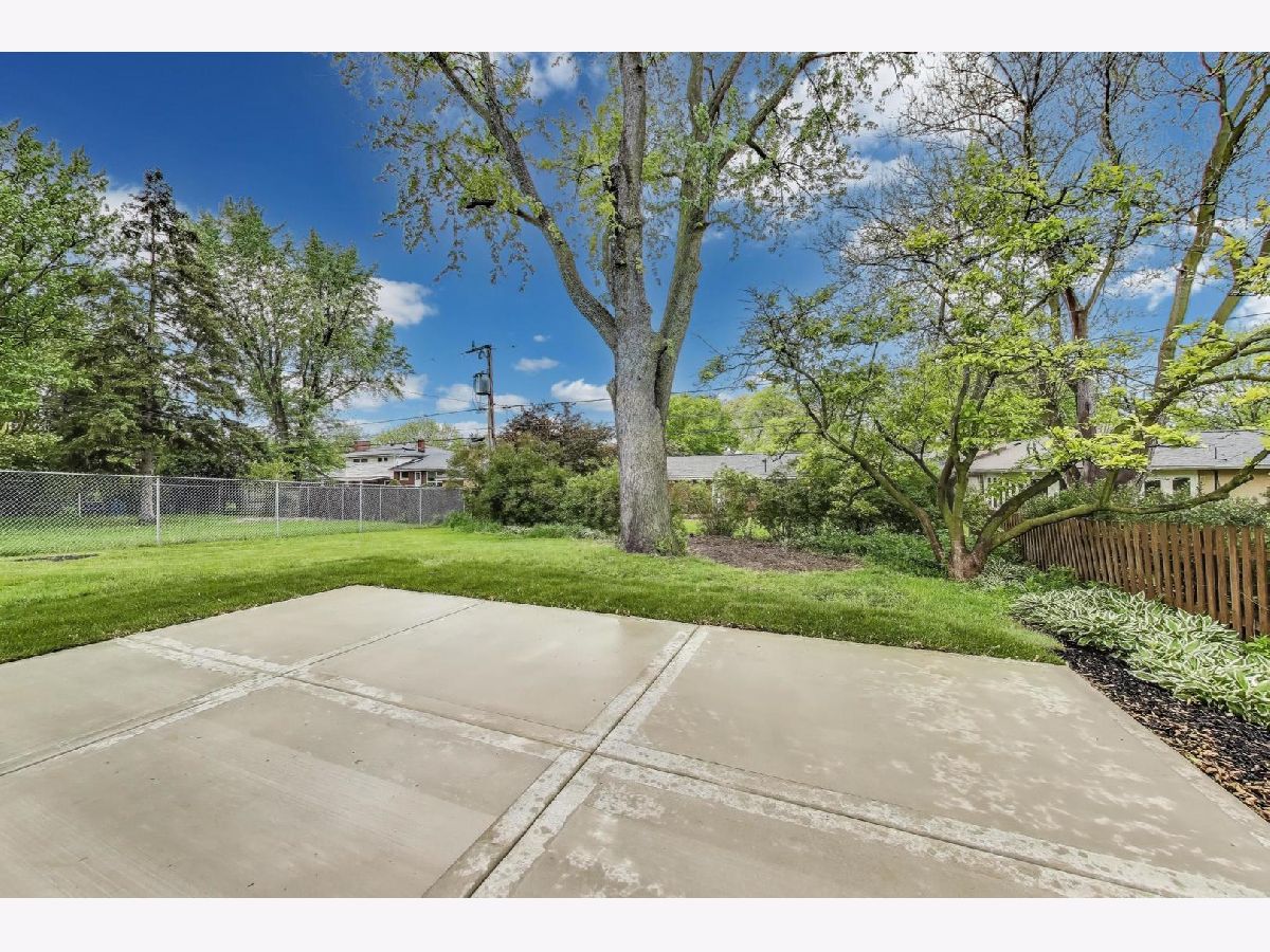 Welcome to this fully renovated and stylish 4-bedroom, 1.1-bathroom brick ranch, ideally located in one of Mount Prospect's most desirable neighborhoods. Situated within the top-rated District 57 school system and just steps from the soon-to-be revitalized Lions Park (2025-2027), this home offers both modern elegance and unbeatable convenience. Step inside to discover a bright and spacious open-concept living and dining area-perfect for entertaining. Rich walnut-stained hardwood floors span the main level and stairway to the lower level, complemented by fresh custom paint by Benjamin Moore throughout. The stunning kitchen features 42" shaker-style cabinets with abundant storage, a pantry, honed soapstone countertops, and premium KitchenAid Professional Series stainless steel appliances. A 3-person counter sits beside expansive west-facing windows that flood the space with natural light and overlook the new concrete patio and large, landscaped backyard. A versatile family room or home office, located on the main floor, adjacent to the kitchen, opens directly to the patio through sliding glass doors-ideal for indoor/outdoor living. Three generous main-floor bedrooms offer ample closet space. The beautifully remodeled full bathroom showcases oversized green ceramic tiled shower walls, marble hexagon flooring, a stylish walnut double vanity with quartz countertops, and matte black lighting/mirror and plumbing fixtures. The powder room, adjacent to the kitchen, is equally refined with black marble hexagon tile flooring, a chic vanity with honed soapstone countertop, and bold, color-saturated walls, ceiling, and trim. A newly added mudroom includes a built-in bench with cubbies above and below, a large coat closet, and direct access to the attached one-car garage with excellent storage options. Downstairs, you'll find an expansive finished basement that includes oversized marble-look tiled laundry room with high-efficiency side-by-side washer/dryer, quartz folding counter, stainless steel utility sink, and ample cabinetry; a massive recreation room, ideal for media, games, or a home gym; a spacious fourth bedroom; a large storage area and separate utility/HVAC room with potential to add a second full bathroom (then would be two full bath, one 1/2 bath). Step outside through the rear sliding doors to enjoy the newly poured concrete patio, mature trees, and perennial plantings that enhance the private backyard retreat. Gorgeous matte black lighting fixtures throughout. Additional updates include: all-new electrical wiring, new water supply and drain lines, new PVC sewer line from the house to the city main, newer roof, newer windows, and gutter guards, new furnace, new a/c and new water heater. Newly Landscaped front beds with boxwoods and black mulch. Located in a quiet neighborhood close to schools, parks, public pools, shopping centers, and dining options, this home combines modern upgrades with timeless comfort. Don't miss the opportunity to make this beautifully upgraded home your own-schedule your private showing today!
