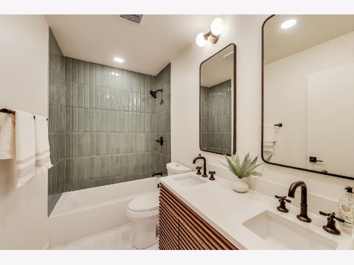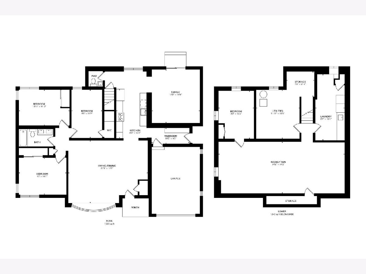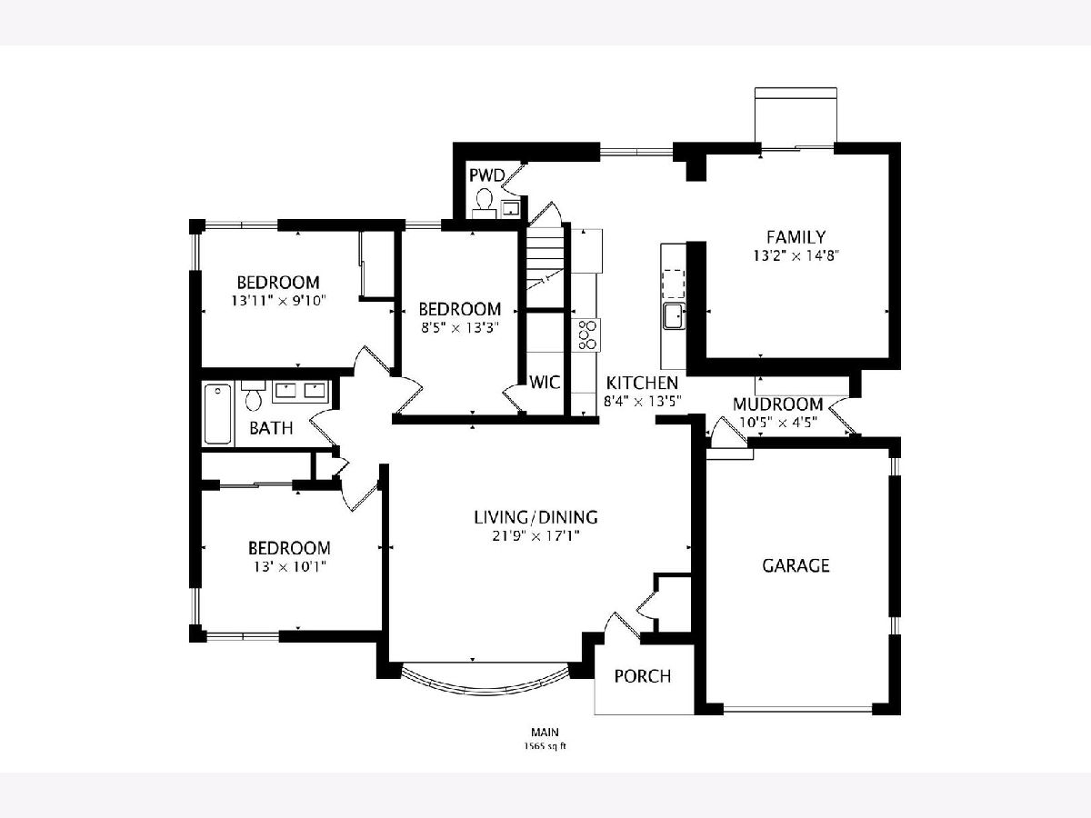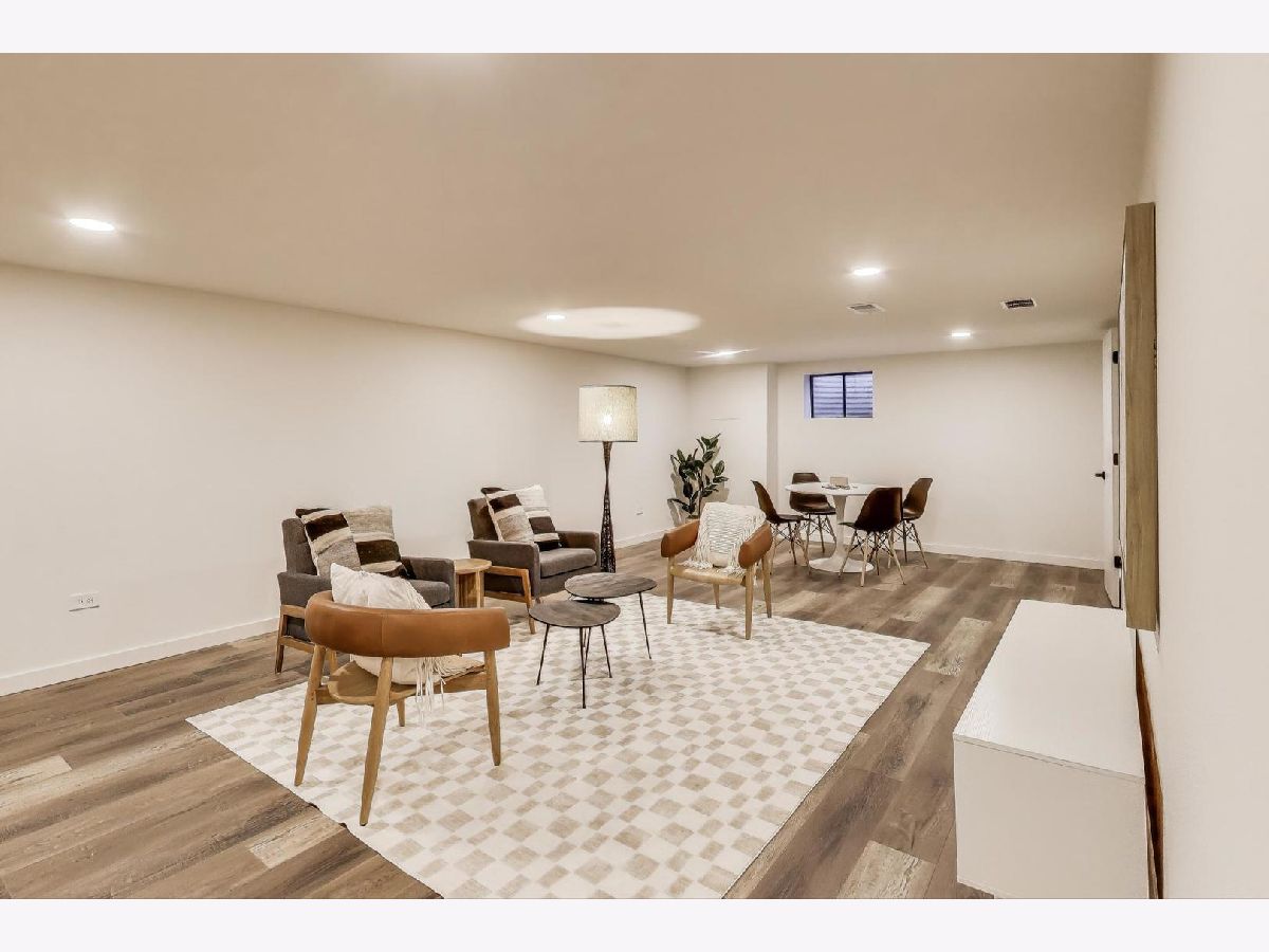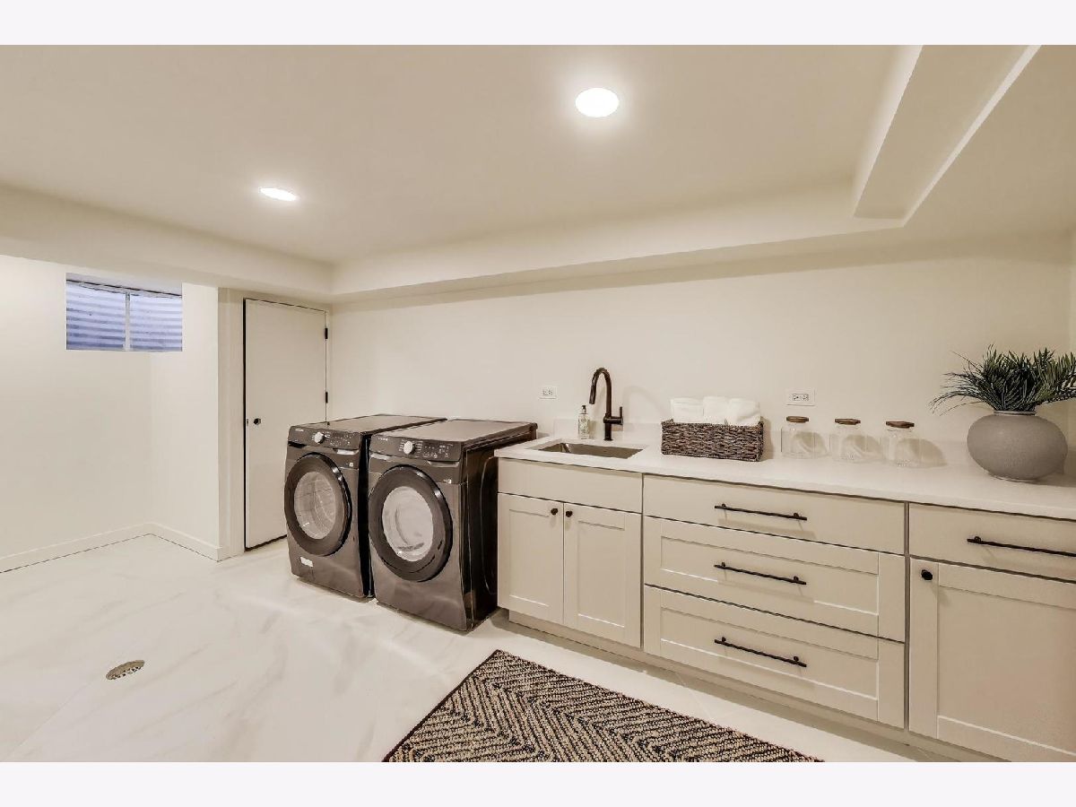 Welcome to this fully renovated and stylish 4-bedroom, 1.1-bathroom brick ranch, ideally located in one of Mount Prospect's most desirable neighborhoods. Situated within the top-rated District 57 school system and just steps from the soon-to-be revitalized Lions Park (2025-2027), this home offers both modern elegance and unbeatable convenience. Step inside to discover a bright and spacious open-concept living and dining area-perfect for entertaining. Rich walnut-stained hardwood floors span the main level and stairway to the lower level, complemented by fresh custom paint by Benjamin Moore throughout. The stunning kitchen features 42" shaker-style cabinets with abundant storage, a pantry, honed soapstone countertops, and premium KitchenAid Professional Series stainless steel appliances. A 3-person counter sits beside expansive west-facing windows that flood the space with natural light and overlook the new concrete patio and large, landscaped backyard. A versatile family room or home office, located on the main floor, adjacent to the kitchen, opens directly to the patio through sliding glass doors-ideal for indoor/outdoor living. Three generous main-floor bedrooms offer ample closet space. The beautifully remodeled full bathroom showcases oversized green ceramic tiled shower walls, marble hexagon flooring, a stylish walnut double vanity with quartz countertops, and matte black lighting/mirror and plumbing fixtures. The powder room, adjacent to the kitchen, is equally refined with black marble hexagon tile flooring, a chic vanity with honed soapstone countertop, and bold, color-saturated walls, ceiling, and trim. A newly added mudroom includes a built-in bench with cubbies above and below, a large coat closet, and direct access to the attached one-car garage with excellent storage options. Downstairs, you'll find an expansive finished basement that includes oversized marble-look tiled laundry room with high-efficiency side-by-side washer/dryer, quartz folding counter, stainless steel utility sink, and ample cabinetry; a massive recreation room, ideal for media, games, or a home gym; a spacious fourth bedroom; a large storage area and separate utility/HVAC room with potential to add a second full bathroom (then would be two full bath, one 1/2 bath). Step outside through the rear sliding doors to enjoy the newly poured concrete patio, mature trees, and perennial plantings that enhance the private backyard retreat. Gorgeous matte black lighting fixtures throughout. Additional updates include: all-new electrical wiring, new water supply and drain lines, new PVC sewer line from the house to the city main, newer roof, newer windows, and gutter guards, new furnace, new a/c and new water heater. Newly Landscaped front beds with boxwoods and black mulch. Located in a quiet neighborhood close to schools, parks, public pools, shopping centers, and dining options, this home combines modern upgrades with timeless comfort. Don't miss the opportunity to make this beautifully upgraded home your own-schedule your private showing today!