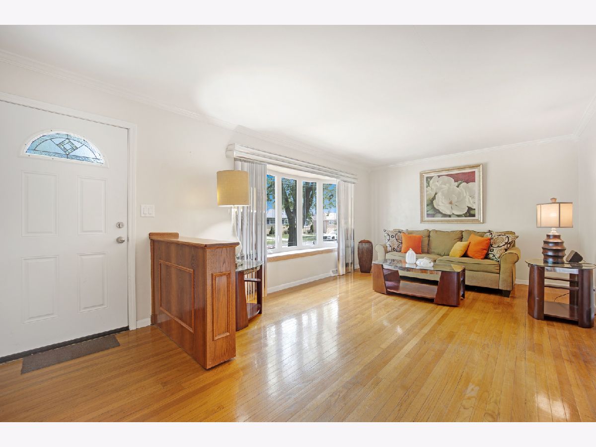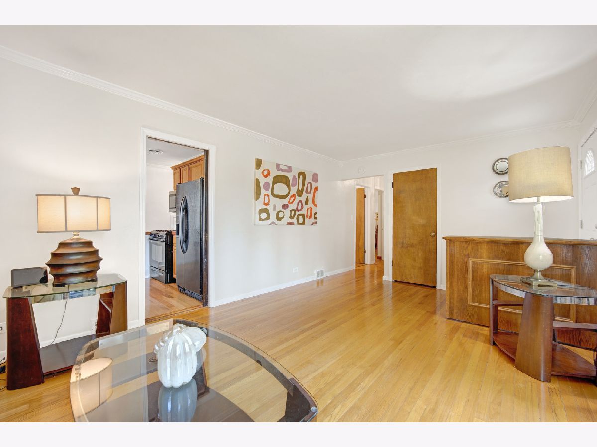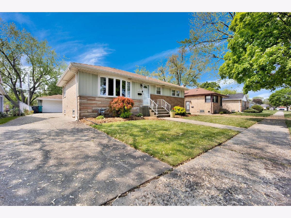 This charming brick bungalow boasts 3 bedrooms, 1 bathroom, and a detached two-car garage located on a tranquil tree-lined street. The residence offers a private, large deep yard perfect for outdoor entertainment and relaxation. The spacious living room is seamlessly connected to the eat-in kitchen, creating an inviting open space. The home features beautiful hardwood floors throughout, highlighting its timeless appeal. The property's large open basement is perfect for hosting events and features a convenient bar area. Additionally, there is a separate laundry room located in the basement for added convenience. This home is a rare gem, offering spacious living with plenty of room to entertain and relax in comfort. Perfectly situated in a serene neighborhood, this property is a must-see and represents an excellent opportunity to own a lovely home in a desirable location near expressway, shopping and restaurants. Being sold As-Is. LOCATION, LOCATION, LOCATION.