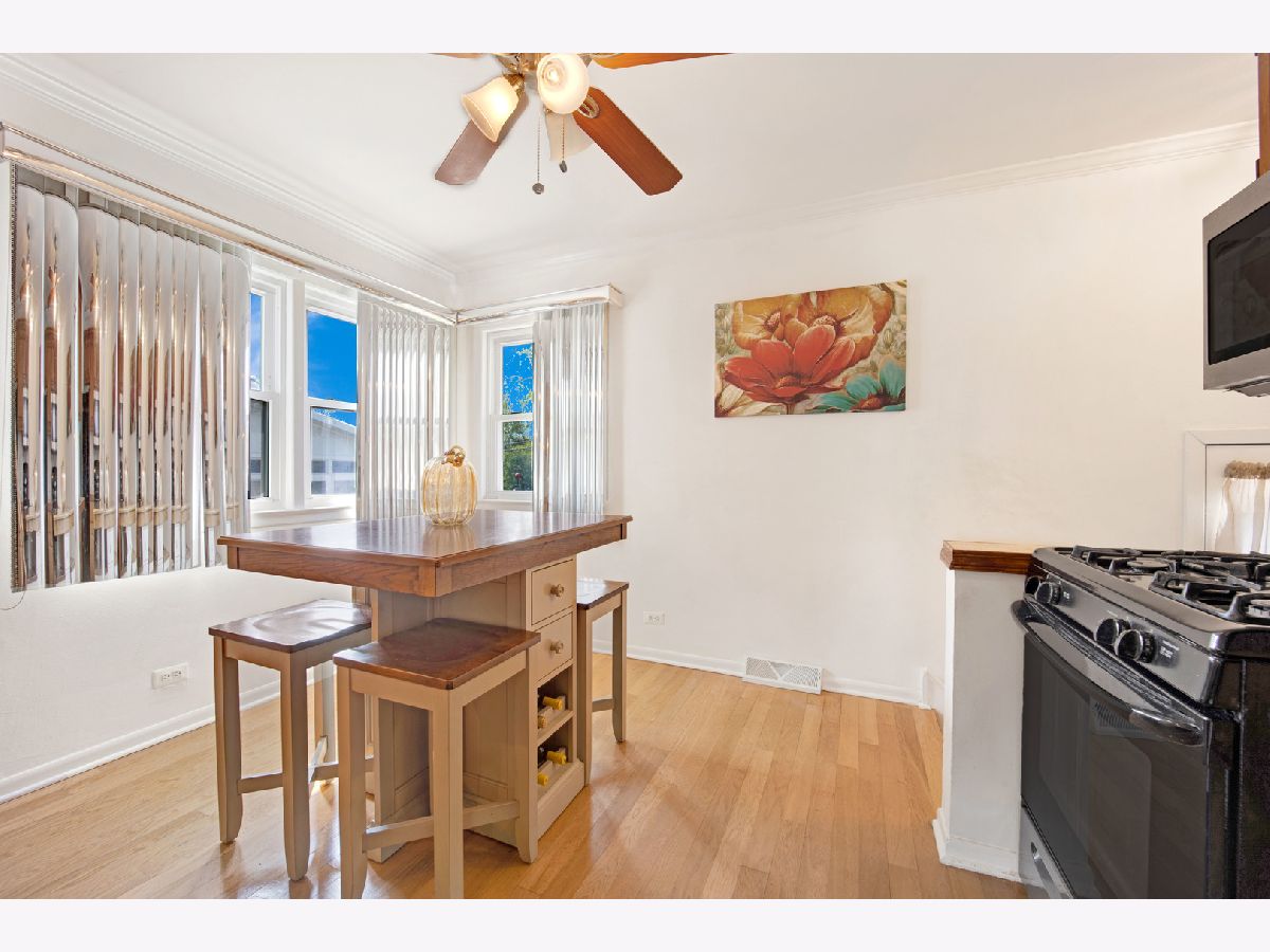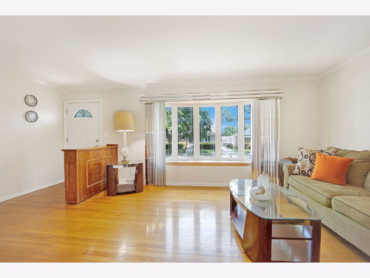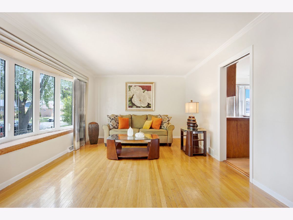 This charming brick bungalow boasts 3 bedrooms, 1 bathroom, and a detached two-car garage located on a tranquil tree-lined street. The residence offers a private, large deep yard perfect for outdoor entertainment and relaxation. The spacious living room is seamlessly connected to the eat-in kitchen, creating an inviting open space. The home features beautiful hardwood floors throughout, highlighting its timeless appeal. The property's large open basement is perfect for hosting events and features a convenient bar area. Additionally, there is a separate laundry room located in the basement for added convenience. This home is a rare gem, offering spacious living with plenty of room to entertain and relax in comfort. Perfectly situated in a serene neighborhood, this property is a must-see and represents an excellent opportunity to own a lovely home in a desirable location near expressway, shopping and restaurants. Being sold As-Is. LOCATION, LOCATION, LOCATION.