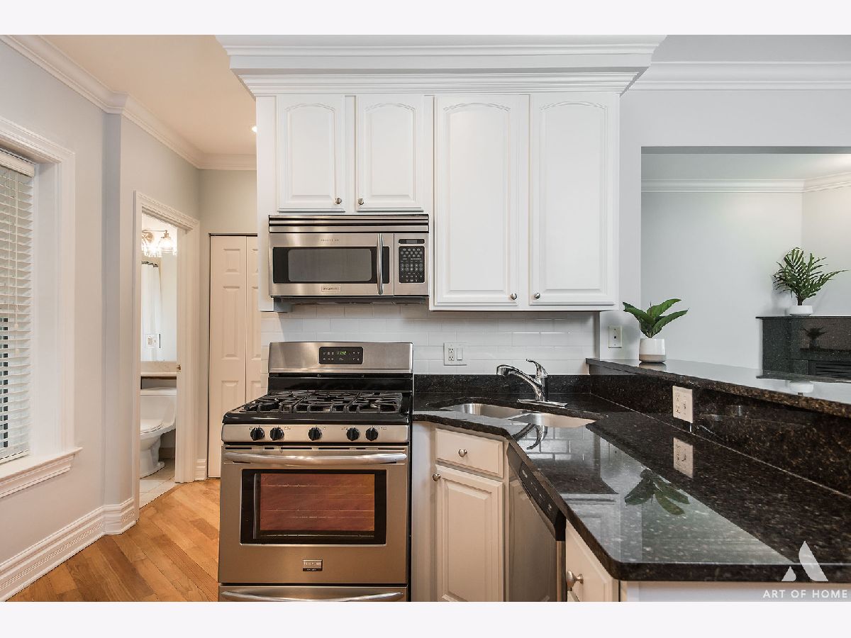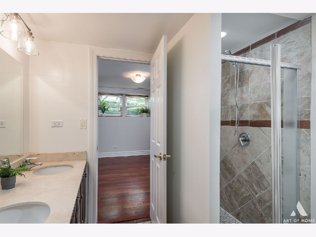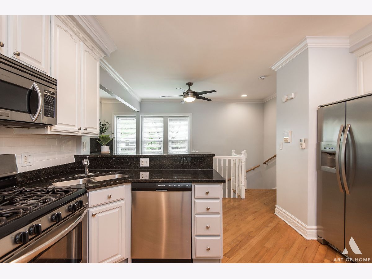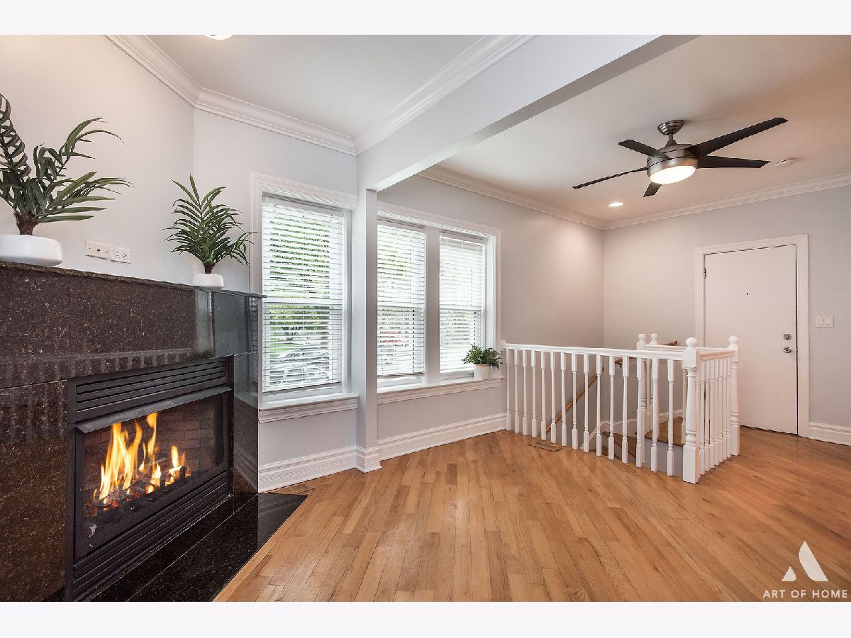 Welcome home to this freshly updated duplex down on a quaint and beautiful tree-lined street in the North Park neighborhood. Enjoy open concept living with hardwood floors throughout and a spacious kitchen featuring freshly painted cabinets, stainless steel appliances, and a plethora of beautiful granite countertops for prepping meals, eating at the bar, or entertaining. Tons of cabinet space for storage and a trendy white subway tile backsplash. Relax in the living room beside a gas start, a wood-burning fireplace with stone surround, and large windows streaming in natural light. The first floor also features a full bathroom, in-unit washer/dryer, and access to the large common deck perfectly situated off of the kitchen for grilling and dining. Head downstairs to the two generous bedrooms and large 2nd full bathroom with dual vanity, separate standing shower, and jetted soaking tub. The unit has many updates, including fresh paint throughout, a new dishwasher and garbage disposal-newer windows, washer, dryer, hot water tank, stove, and A/C unit. Conveniently located a few blocks from the Brown Line and local expressways. Great area with many restaurants, parks, and shopping nearby. One Parking space is available for an additional $15K. There is also ample street parking. Turn the key and move in!