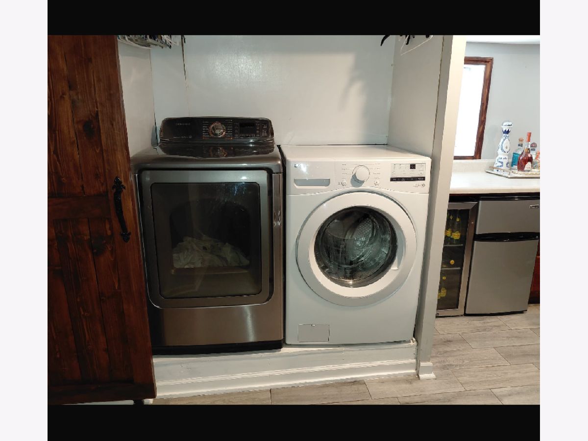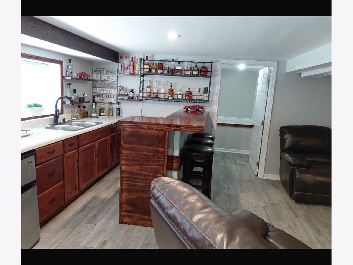 Charming 1.5-Story Frame Home with Full Finished Basement & Outdoor Oasis! Welcome to this beautifully maintained 1.5-story frame home offering a blend of character and modern convenience. Step into the inviting foyer that leads to a warm and spacious main level featuring an integrated fireplace and a built-in wall bar, perfect for entertaining. The rear mud room adds convenience and extra storage. Enjoy a full finished basement complete with a wet bar or summer kitchen, ideal for gatherings or extended living space. All stainless steel appliances stay, including the refrigerator, stove, microwave, washer, and dryer. Outdoors, the home boasts a new 2.5-car garage and a fully fenced yard with a patio, barbecue grill (included) - ready for summer fun and relaxation. This move-in-ready home is perfect for those seeking comfort, space, and style. A must-see!
